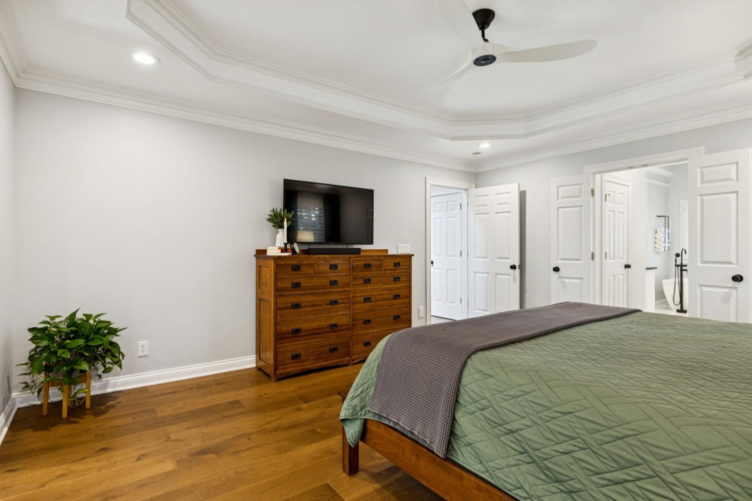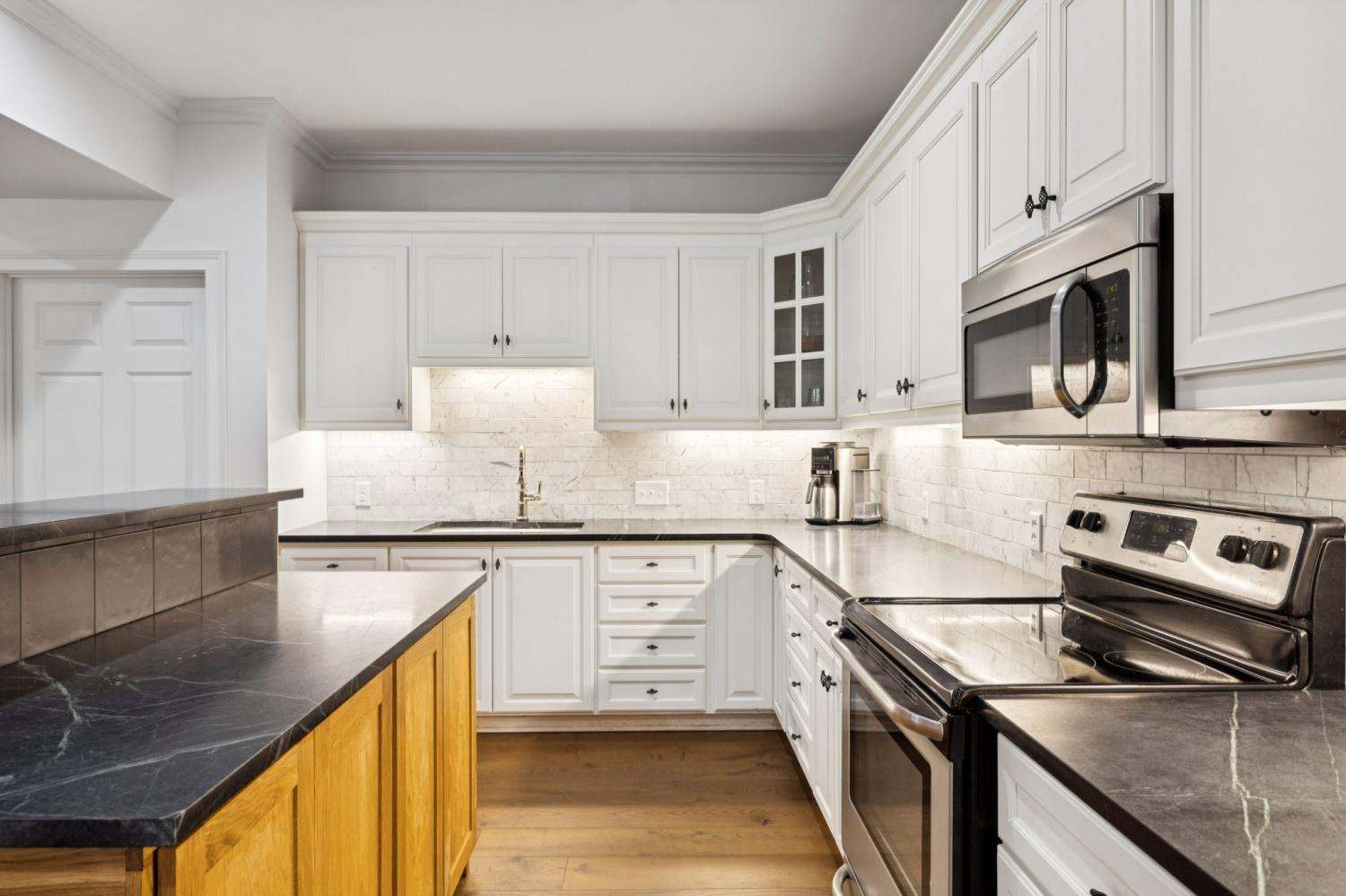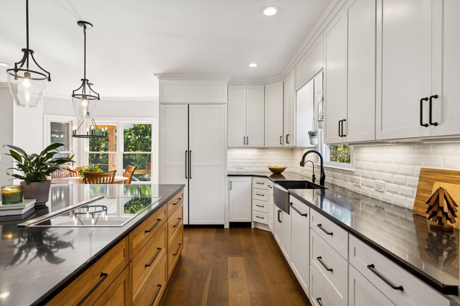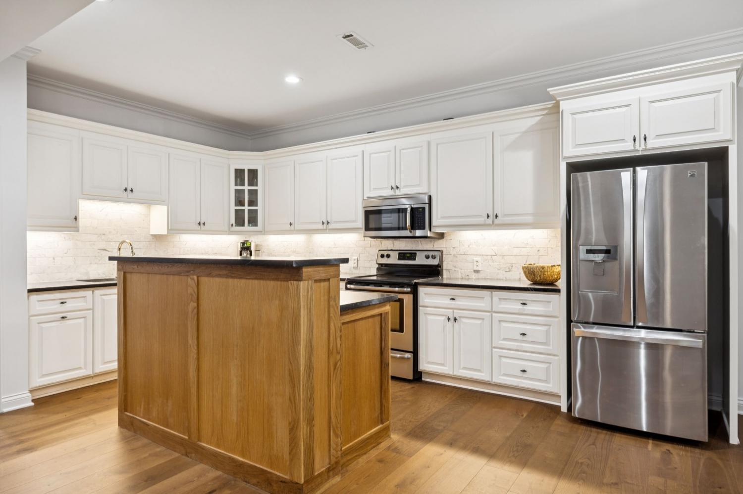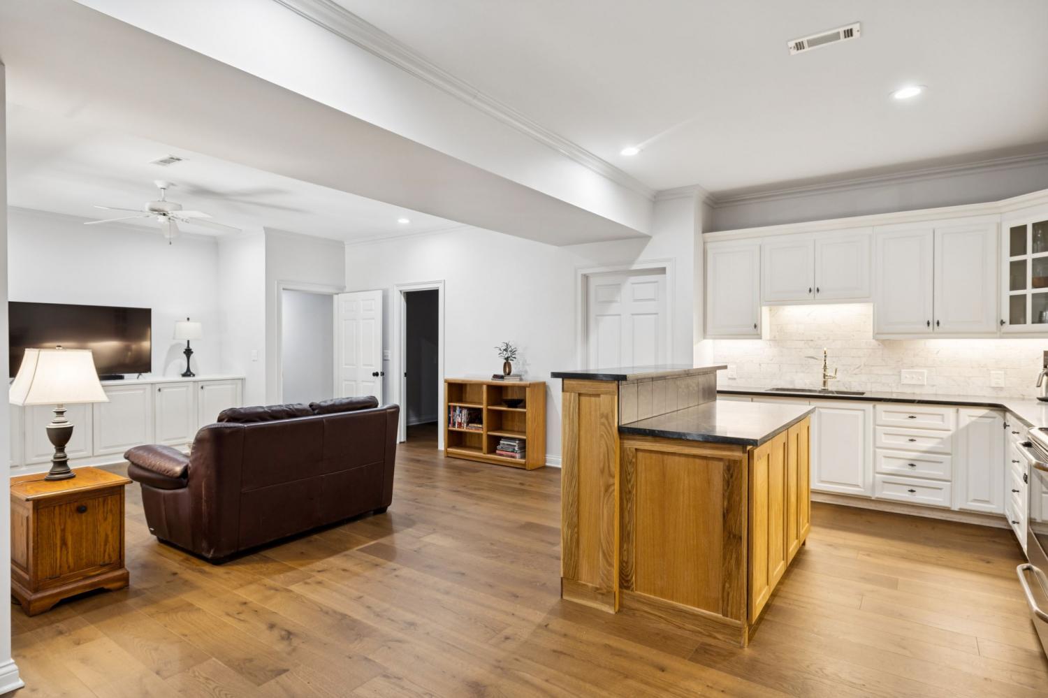Welcome to your dream home, a masterpiece of modern luxury and versatile living! This beautifully updated residence offers exceptional features, perfectly suited for multi-generational living or effortlessly hosting guests. Step inside to discover extensive renovations that blend style and functionality seamlessly throughout the house. Premium white oak hardwood floors create a warm, inviting atmosphere that unifies the space with elegance. The heart of the home is the fully renovated kitchen, a chef's delight adorned with an Induction cooktop, built-in oven, beautiful custom cabinets, a cabinet-front refrigerator, dishwasher, and Scotsman ice maker. Reverse osmosis filtration system for pure, fresh water in the kitchen. This is truly a culinary haven. The standout feature is the in-law studio suite, complete with its own private entrance, kitchen, flex room, private bath with/heated tile floor, private patio, and separate laundry facilities. This space offers privacy and independence; it's a true sanctuary for family members or guests. The thoughtfully updated home also offers a renovated laundry room, a family room with a new vented gas fireplace, cleverly designed secret closets, and cedar shelves in multiple closets. Sophisticated iron balusters highlight the staircase, while fresh paint enhances the contemporary aesthetic throughout. Step outside to a private yard, a serene retreat for relaxation or outdoor activities, complemented by a refurbished screened deck with cedar-wrapped posts and fenced yard. Additional features, such as a whole-house filtration system, whole yard irrigation system, and an extended driveway that offers ample parking spaces for multiple vehicles to ensure convenience and comfort for all residents. Experience the perfect blend of stylish renovations and thoughtful design in this exceptional home. Don’t miss this unique opportunity to own a residence that truly has it all, designed to meet your every need with ease and elegance.