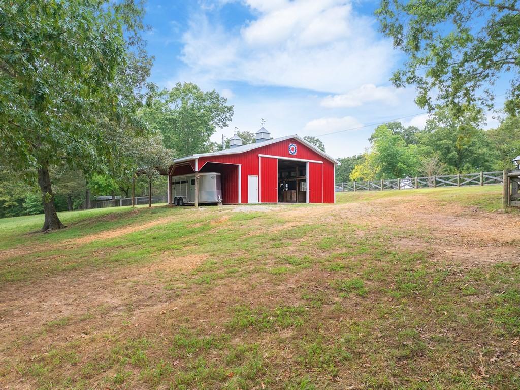 Horse Lover’s Dream on 92+/- Acres near beautiful KY Lake. Spacious well-kept 4BR/2FB brick home sits on a ridge with scenic views of the stocked pond and rolling pastures. Inside you will find a formal dining room, living room, eat-in kitchen and den with wood-burning fireplace. A roomy utility area connects to a 2-car attached garage. The full poured-concrete basement offers both garage door and passage door for easy access, plus abundant storage and workshop space. Upstairs enjoy a spacious 16x24 bedroom with full bath and a 16x27 recreation room. Amish-Built 36x40 fully insulated barn features hot and cold water, tack room, wash stall, 6 stalls with fans and flexible grid flooring. 30x40 Equipment barn has water, electricity and two attached stalls. Property has 2 ponds, 60 acres of timber with abundant whitetail deer and turkey for hunting with trails for horses and hiking. Balance of acreage is rotatable fenced pasture. Spectrum High Speed Internet. Natural gas available.