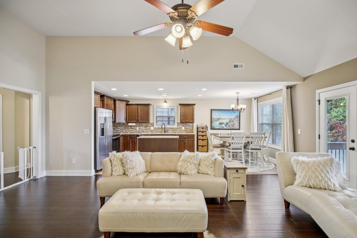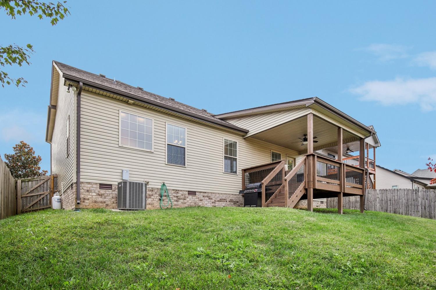 Welcome to 1579 Cobra Lane, a charming and spacious retreat nestled in the highly desired Fields of Northmeade subdivision in Clarksville, TN. This delightful home offers 3 bedrooms and 2 bathrooms, boasting an impressive 2,529 square feet of living space. With a total lot size of 7,405 square feet, you'll find plenty of room to create your ideal living environment. Step inside to discover a welcoming foyer that leads to an open concept living area featuring high ceilings and a cozy fireplace. The kitchen is a chef's dream, complete with granite countertops and modern stainless steel appliances like a cooktop, microwave, and dishwasher, complemented by an island and ample countertop space. The bedrooms are generously sized, with the primary suite offering a luxurious spa like retreat with soaking tub, all tile shower, double vanities and walk in closet. Enjoy the comfort of central AC and heating throughout the home, and appreciate the blend of beautiful engineered hardwood floors and cozy carpet that adds to the home's warmth and style. A highlight of this property is the private outdoor space with fenced in yard, perfect for entertaining on the covered back deck or simply enjoying a quiet moment. The attached two car garage and additional storage options, including a large bonus room with walk in closet, add to the home's functionality. Whether you're relaxing inside or enjoying the outdoors, 1579 Cobra Lane offers a perfect blend of comfort and style in one of Clarksville's most sought-after communities with the added bonus of no HOA fees. Reach out today to explore this exceptional home and make it your own.