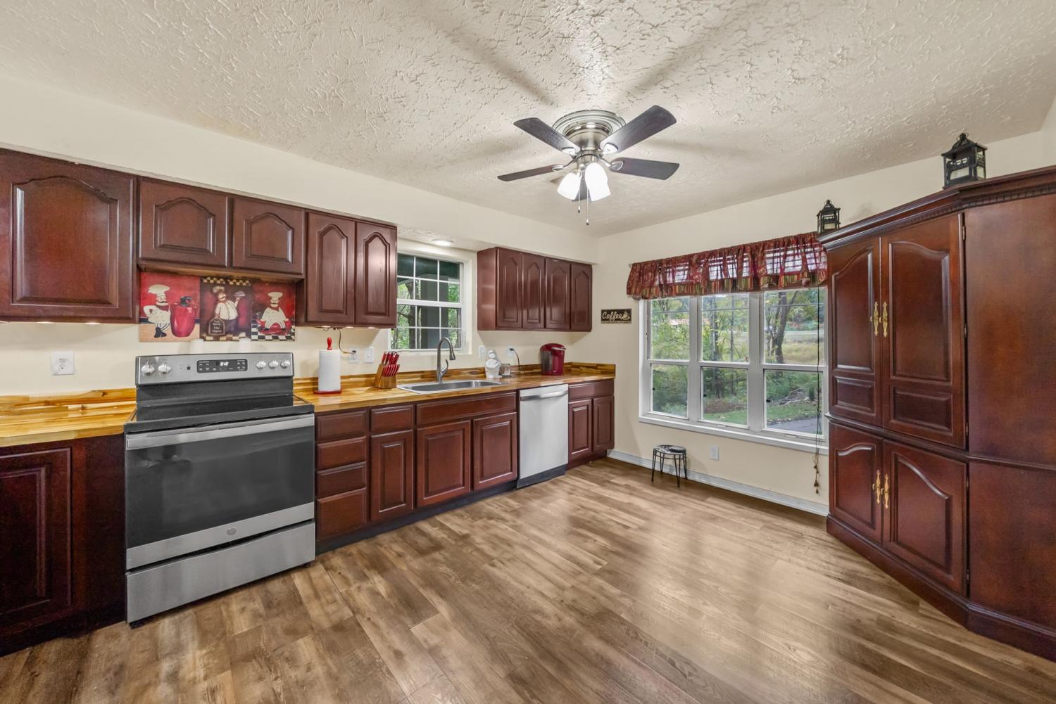 Nestled on a serene and secluded 3.4-acre wooded lot, this lovingly maintained one-story home offers the perfect blend of privacy, charm, and convenience. Built in 1997 and owned by the same family since, this property is move-in ready! Inside you will walk into tall ceilings in the open concept living and dining room, a warm and inviting kitchen featuring rich cherry wood cabinets and gorgeous butcher block countertops, and a primary bedroom with a spacious closet. Outside is a cozy patio, freshly stained back deck perfect for listening to the crickets, personal storage building, and a cleared trail through the woods! Major updates include the roof around 7 years old, HVAC/ductwork around 5 years old, and water heater/washer/dryer around 3 years old! All TV's convey as well! This home is a rare find for those seeking peace, space, and value! Motivated seller is offering buyer concessions – don’t miss this opportunity! Schedule your private showing today and experience all this home has to offer!