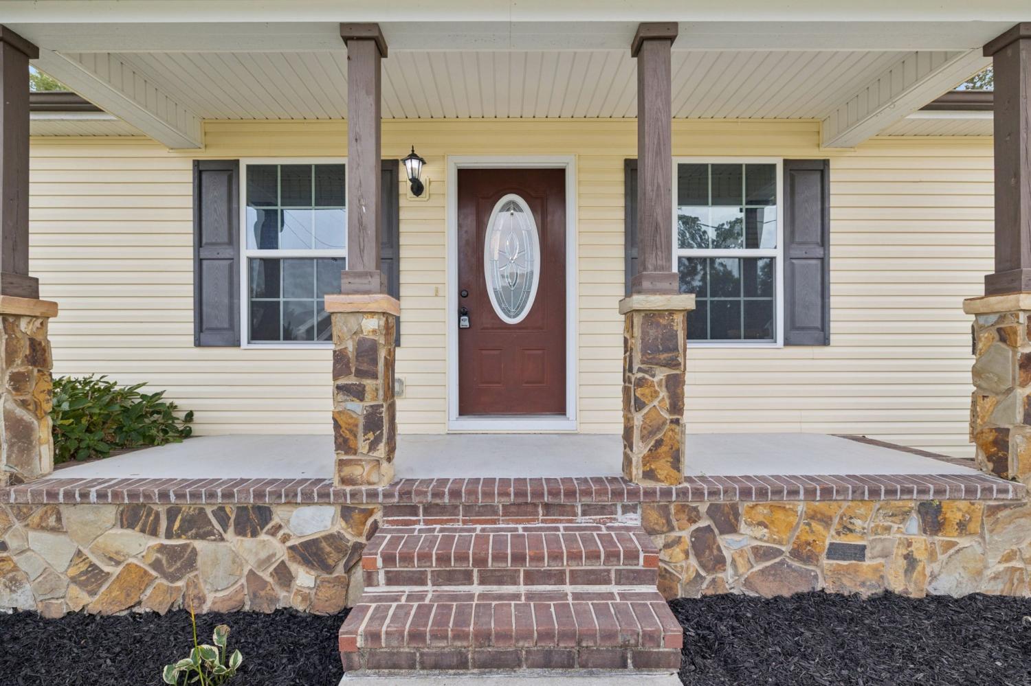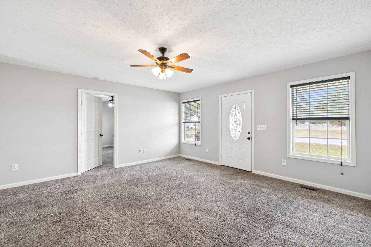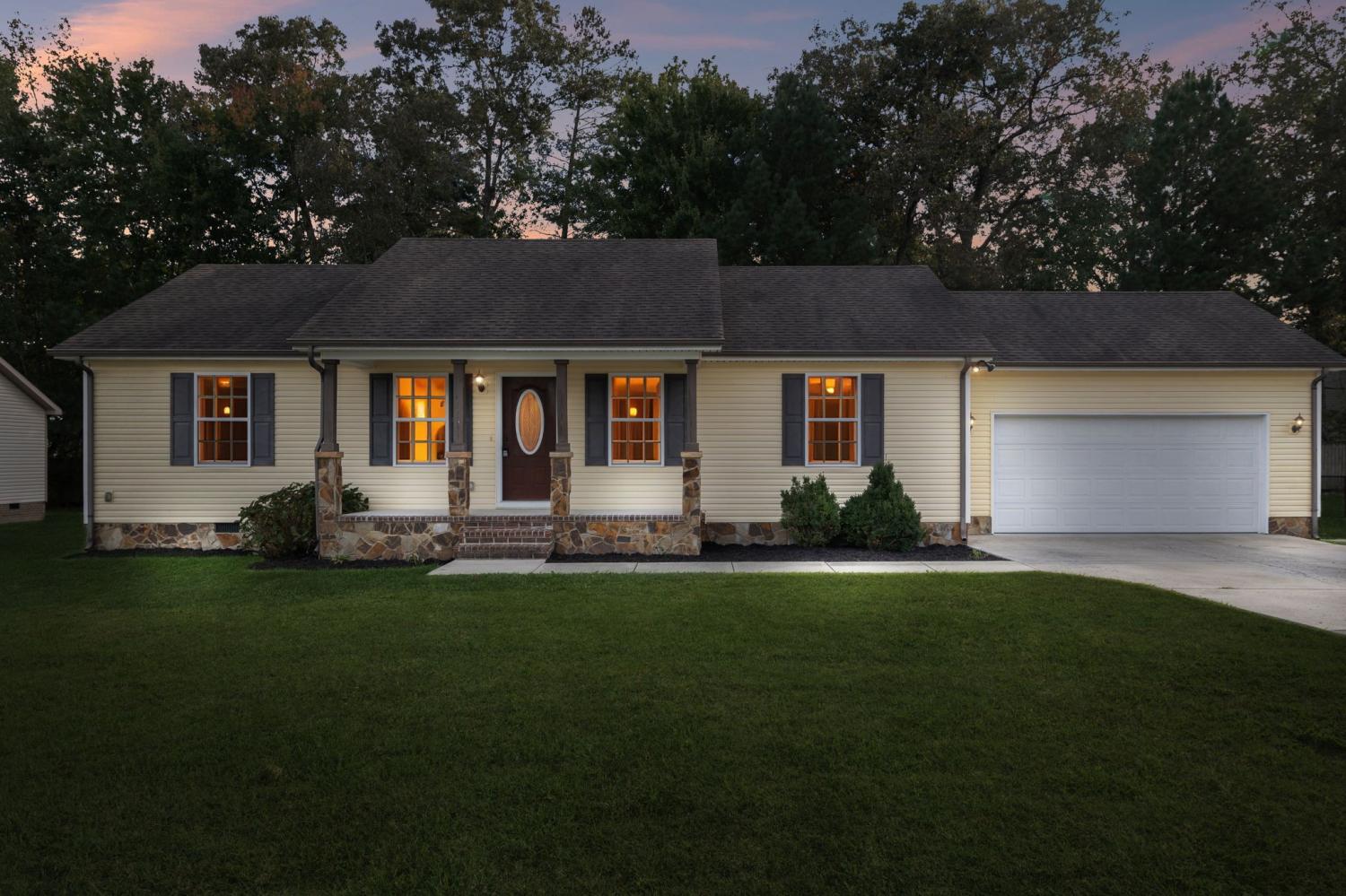 Located in the Indian Springs subdivision just west of downtown Manchester, this move-in-ready ranch offers convenient access to I-24 and sits nearly halfway between Nashville and Chattanooga. 538 Indian Springs Circle combines comfort, practicality, and freedom—with no HOA restrictions. A concrete drive leads to a two-car garage and landscaped front yard. The home’s exterior blends light yellow siding with stacked-stone accents and dark shutters. Inside, an open-concept living and dining area features fresh paint, neutral gray walls, and plush carpet. The galley-style kitchen offers off-white cabinets, a double sink overlooking the backyard, and a full suite of stainless appliances. Three bedrooms provide ample closet space and natural light, while two full baths include updated fixtures and tile accents. The laundry/mud room adds convenience with built-in cabinetry and shelving. Out back, enjoy a large yard with a deck and circular stone fire pit surrounded by mature trees. Situated on a quiet street near parks, restaurants, and shopping, this home delivers easy access to Manchester amenities and quick commutes via Exit 111 on I-24.