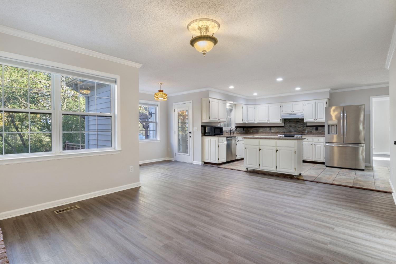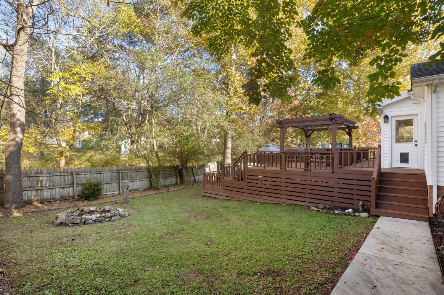 Welcome to your spacious and secure new home! This refreshed 4-5 bedrooms, 3 full bath property sits on a generously sized, fenced .63-acre corner lot with lovely mature trees and professional landscaping and tree-lined creek behind back fence. Home has new carpet and lvp as well as fresh paint. The spacious two-story design is perfect for a large household, multi-generational living, or those who frequently host guests. Main floor office could be a guest room and is located near 1st floor bath with shower. Principal suite with double closets is on second floor as are additional 3 bedrooms. All bedrooms are generously sized. Abundant inside and outside spaces for hosting family and friends in the formal living and dining rooms, or the cozy den with a fireplace located conveniently off large eat-in kitchen. Kitchen features island on wheels, quartz countertops, and 2 pantries. The bright, airy sunroom extends your living space and connects seamlessly to the multi-level decks. The fenced tree shrouded backyard also features a cozy stone fire pit area. There are 2 garden patches with deer fencing, compost bins and a storage shed. Enjoy peace of mind with a dedicated tornado safe room, Ring doorbell, outside lights, and security cameras. All this just minutes to AEDC and convenient access to I24 to reach Murfreesboro or Chattanooga.