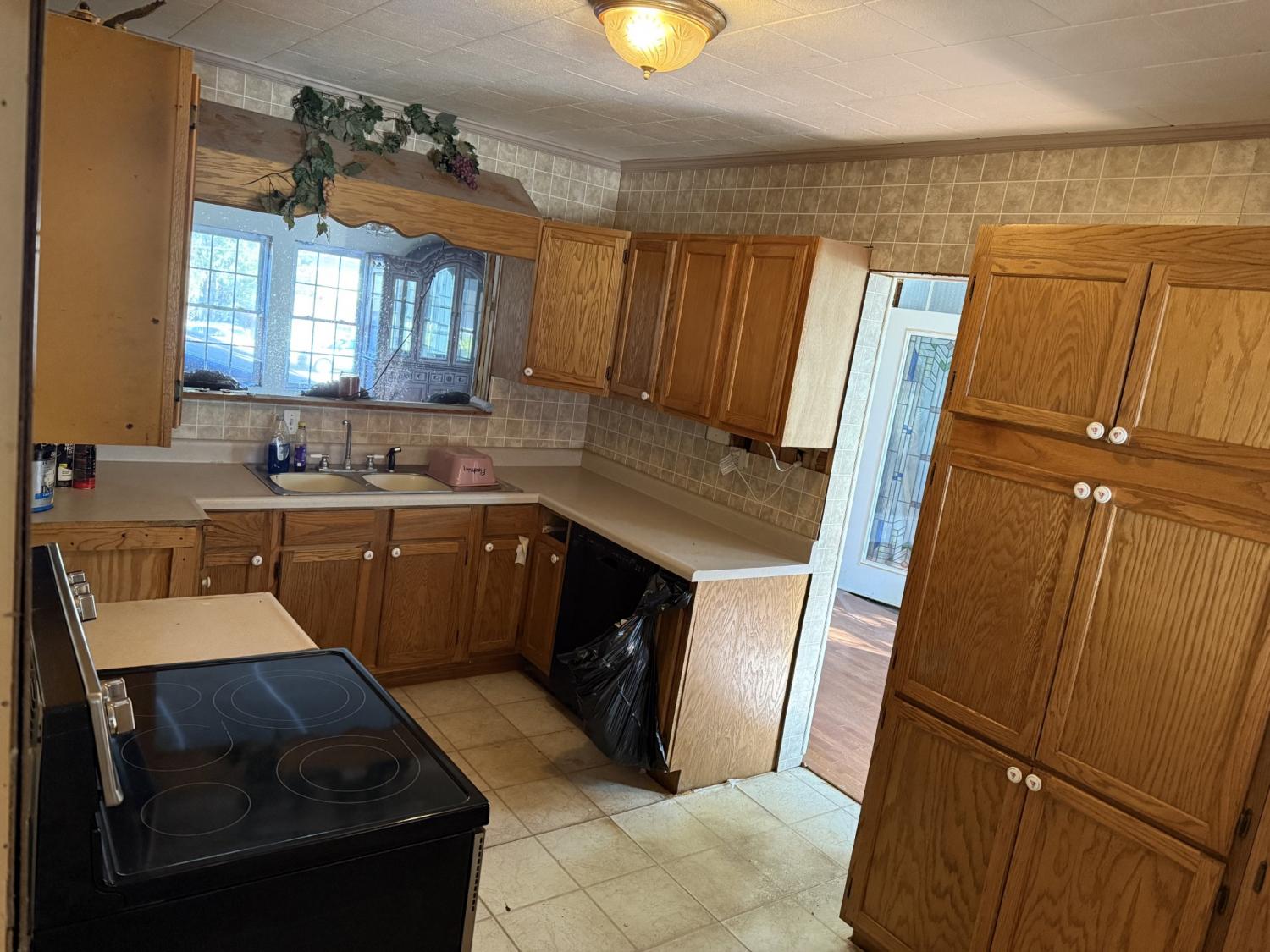 Two-story brick home in the heart of town with great future potential. This property features four bedrooms plus a versatile spare room, two bathrooms, and gas fireplace provisions.Includes new refrigerator and electric stove. An unfinished basement offers plenty of storage and expansion possibilities, with a detached double carport that provides ample parking and workshop space. A solid fixer-upper in a prime location, ready for your personal touches and updates.Buyers or buyer's agent to verify any and all pertinent information.