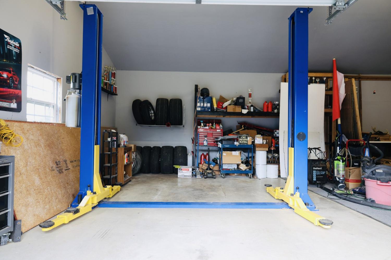 Step inside this move-in ready home and be greeted by a bright, open floor plan perfect for modern living. The heart of the home features a cozy and elegant electric fireplace, providing warmth and ambiance at the touch of a button. A huge bonus room is ready for all your recreation needs, currently housing a pool table that is negotiable with the sale—making this the perfect entertainment hub! A dedicated dog washing sink is thoughtfully installed in the half bath, making cleanup a breeze for your furry friends. Never worry about clutter! This home boasts massive storage options, ensuring every item has its place. The exterior amenities are what truly set this property apart, offering incredible value and utility. One of the two detached garages is equipped with a professional-grade hydraulic car lift, perfect for the car enthusiast, mechanic, or serious DIYer. This is an amenity that pays for itself! Enjoy endless summer fun with the above-ground swimming pool, complete with a huge deck built around it, offering ample space for lounging, sunbathing, and entertaining guest.