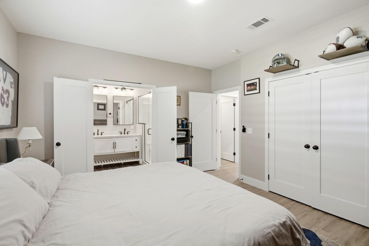 Like new and exceptionally well maintained, this 4-bedroom, 3.5-bath home in the Radnor/Woodbine neighborhood—just south of downtown Nashville—combines thoughtful design with modern convenience throughout. The open floor plan showcases luxury vinyl plank flooring, quartz countertops, and stainless steel appliances, with abundant natural light enhanced by custom plantation shutters on the main level and blackout roller shades in the secondary bedrooms. Upstairs, a second primary suite offers a walk-in closet and double vanities, alongside a bonus room ideal for a home office and/or flex space. Every closet features custom built-ins, and there’s ample storage throughout—making the home feel even larger than its footprint. Additional highlights include architectural shingles, gutter guards, a tankless water heater, a utility sink in the mudroom/laundry area, and an extra-large parking pad with plenty of off-street parking. Out back, enjoy the patio with pergola, privacy fencing, and level lot, complete with a large site-built Tuff Shed featuring a full-length workbench and metal ramps (a $10,000 value). Conveniently located just minutes from zoned schools and I-440, I-65, and I-24, this home offers quick access to everything Nashville has to offer.