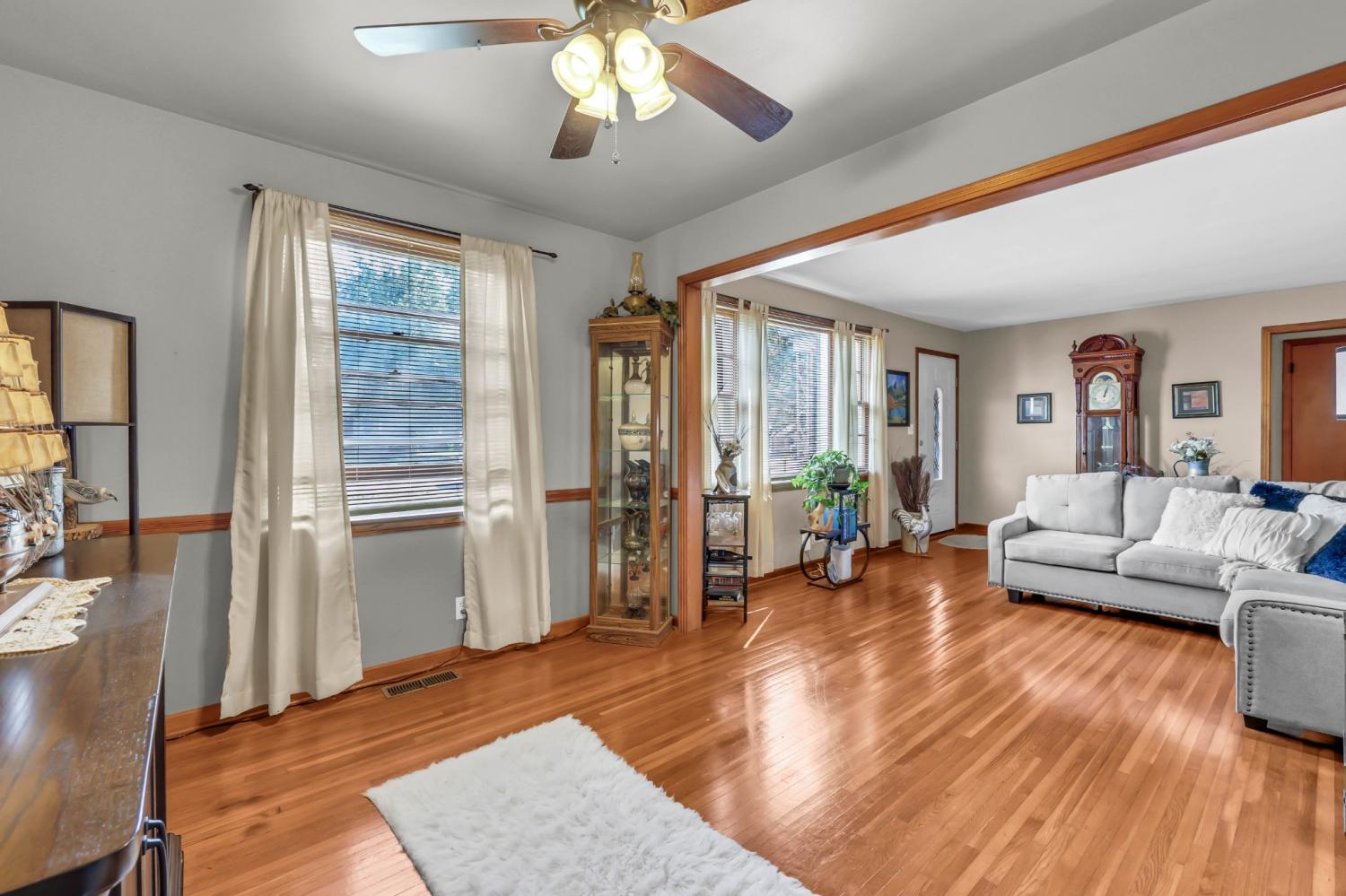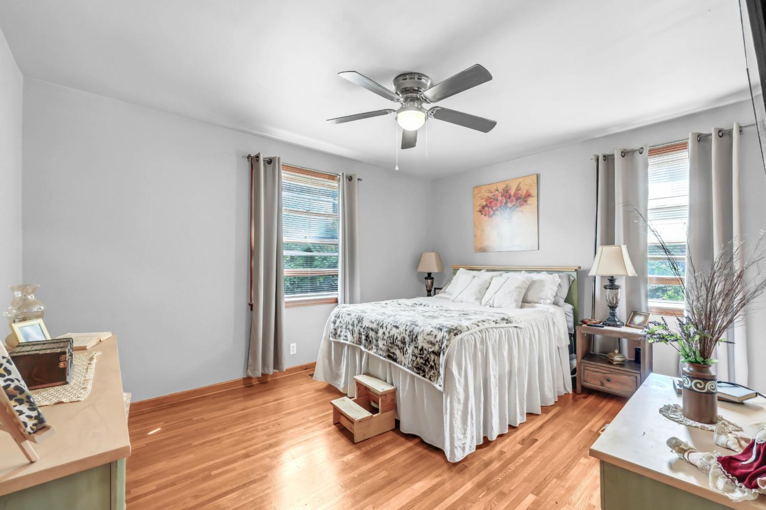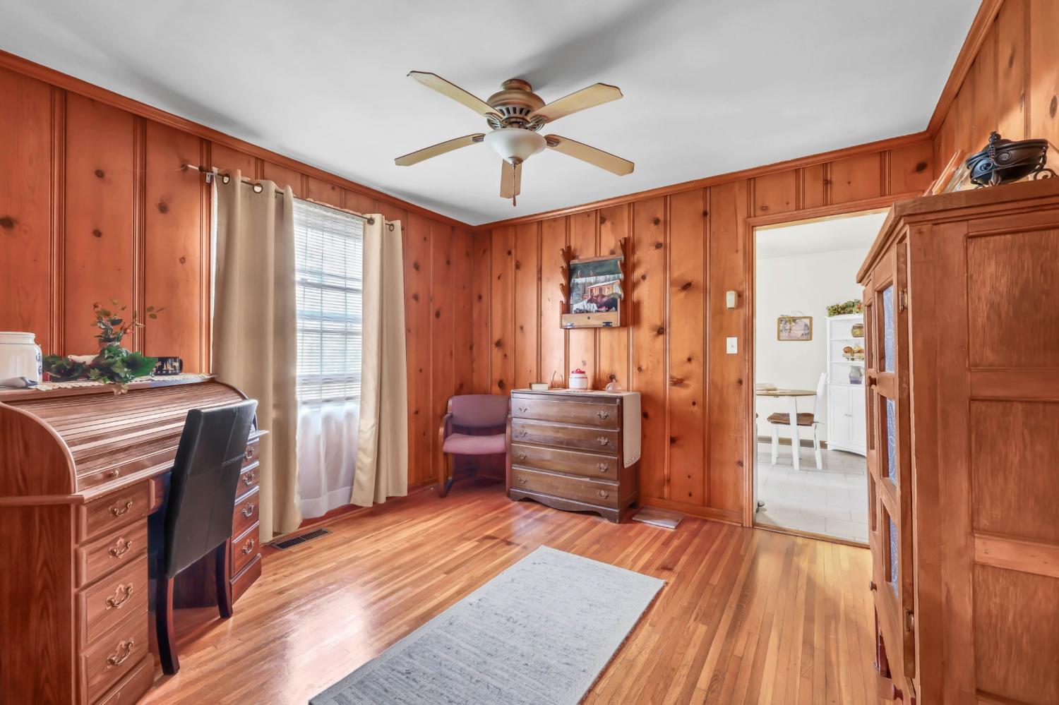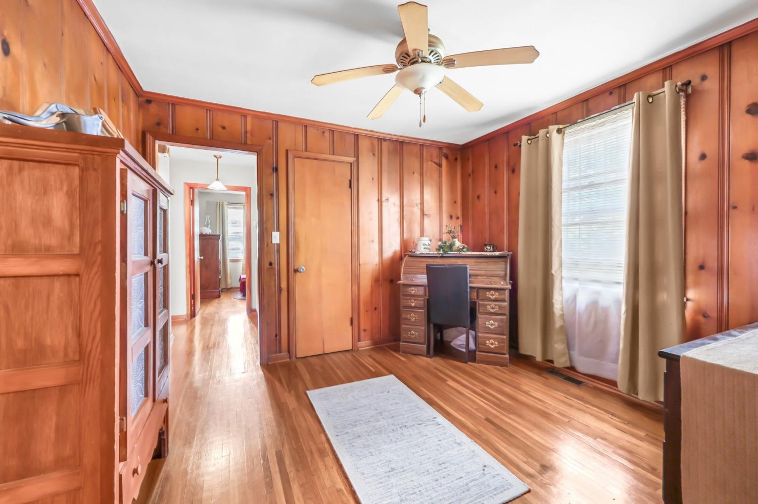 This beautifully maintained all-brick residence offers both convenience and comfort, situated close to local shopping and post. The home’s classic appeal is highlighted by beautiful original hardwood floors, which extend throughout the entire space, providing a warm and inviting atmosphere. The eat-in kitchen features updated appliances, creating a welcoming environment. This home includes three spacious bedrooms. Currently, one of the bedrooms is being utilized as an open den or office area, offering versatility to suit your needs. If desired, doors already available on the property can be installed to restore privacy and convert it back into a traditional bedroom. Outside, you'll find an enormous backyard that provides exceptional privacy. The yard also includes a storage building, offering ample space for tools, equipment, or seasonal items. This charming home is ready for you to move right in!