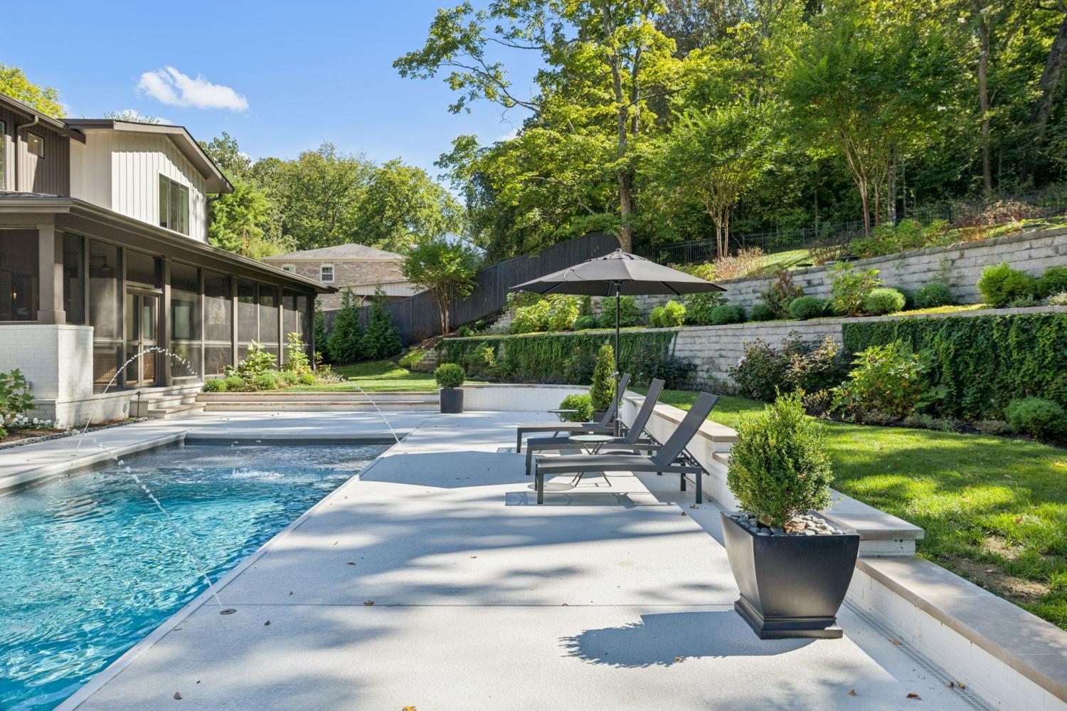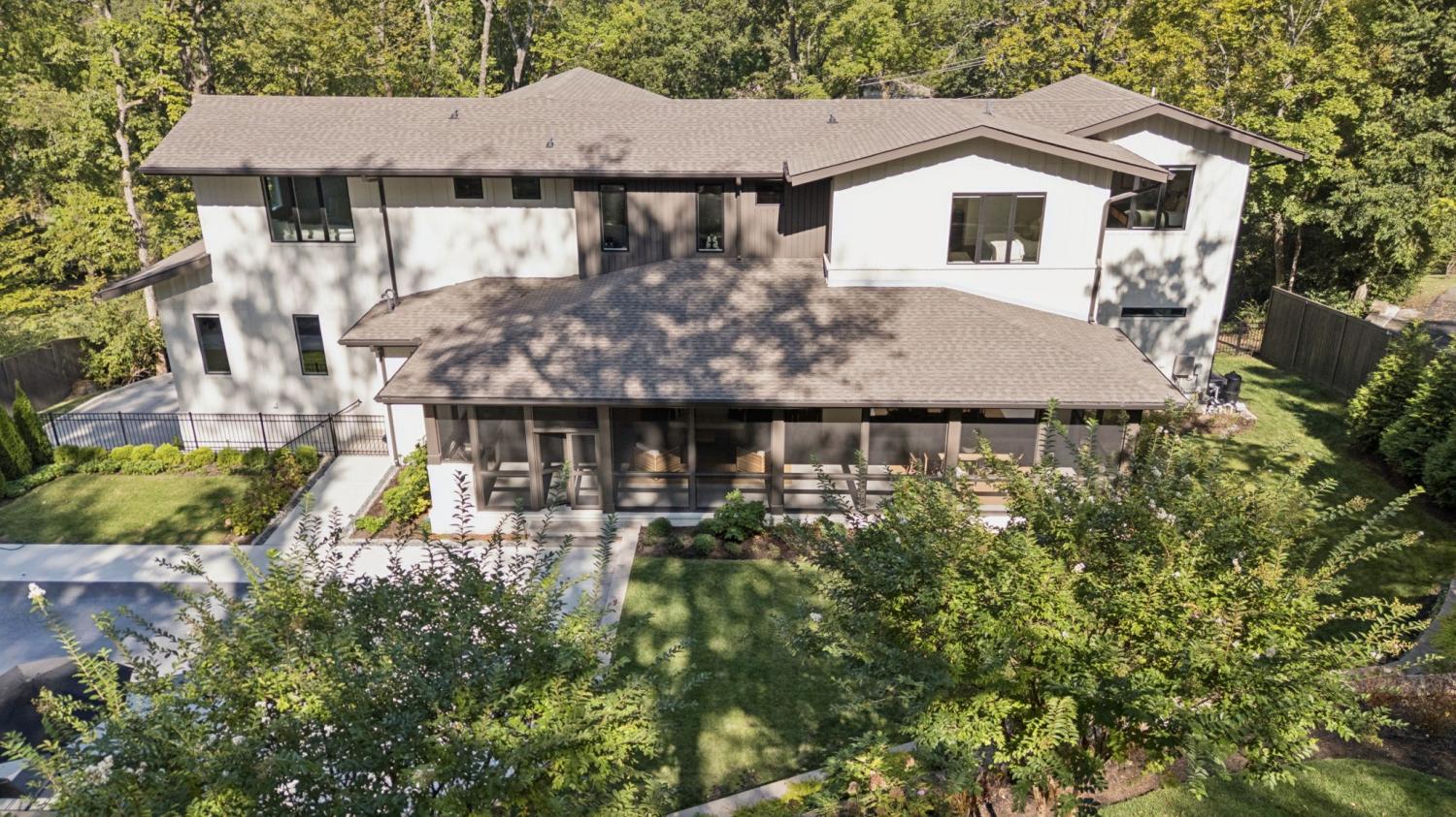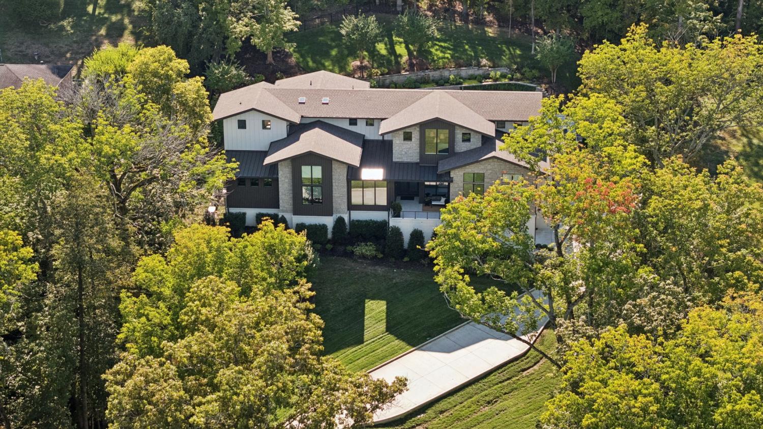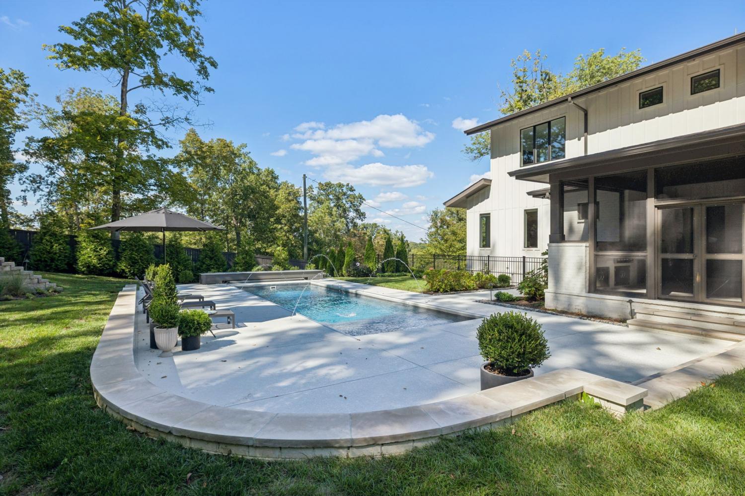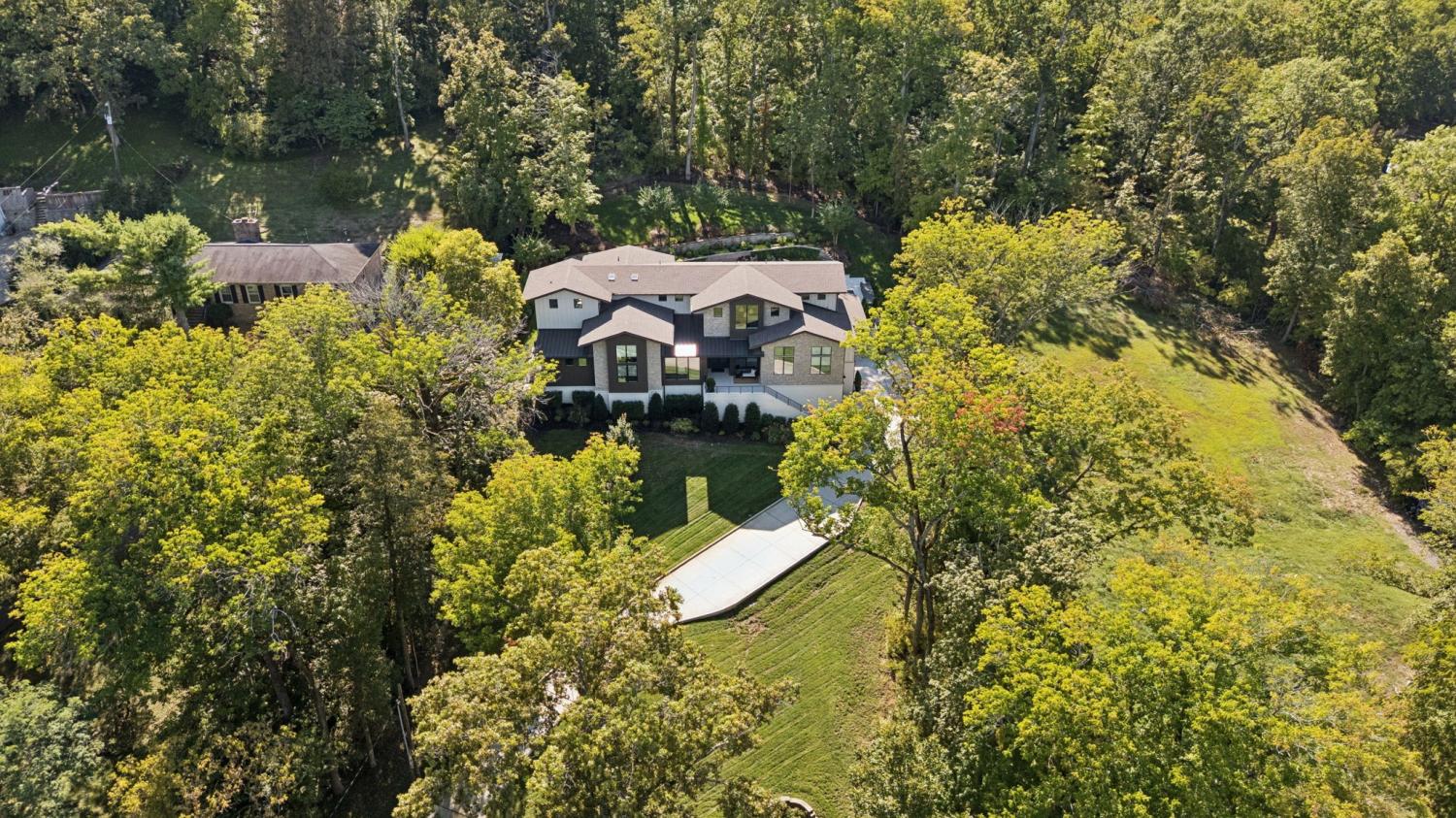Perched above the treetops, this 5-bedroom West Meade luxury home by BUILD Nashville blends contemporary design with timeless charm. Located on nearly 2 acres in one of Nashville’s most desirable neighborhoods, this new construction retreat offers the rare combination of privacy, style, and sweeping views—creating an atmosphere of both elegance and ease. On the main level, you’ll find the primary suite, a guest room, home office, and laundry—a highly sought-after layout for convenience and functionality. The heart of the home features multiple indoor and outdoor entertaining spaces, including a screened-in patio, outdoor kitchen, and spacious gathering areas that flow seamlessly from inside to out. A gorgeous butler’s pantry and massive walk-in pantry elevate both hosting and everyday living. Upstairs, discover three additional bedrooms and a spacious media room (potential for 6th Bedroom). Each guest suite includes an en suite bathroom with designer tilework and a built-out walk-in closet, providing comfort and privacy for family or visitors. Throughout the home you’ll also find abundant storage closets, and the thoughtful design even allows for a future elevator installation if desired. Practical upgrades enhance the everyday experience, including a whole-home generator with automatic transfer switch, and a garage finished with epoxy floors, built-in workbench, and wall rack storage system—perfect for organization and functionality. Set on almost 2 acres, the property offers a rare combination of beautiful landscaping, usable yard space, and a heated pool with retractable cover—ideal for year-round enjoyment. Perfectly positioned in West Meade, this luxury home is just minutes from local shopping, restaurants, Costco, major interstates, and John C. Tune Airport—offering easy access to everything Nashville has to offer while maintaining the serenity of hilltop living.