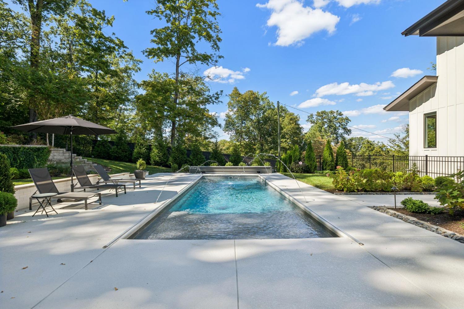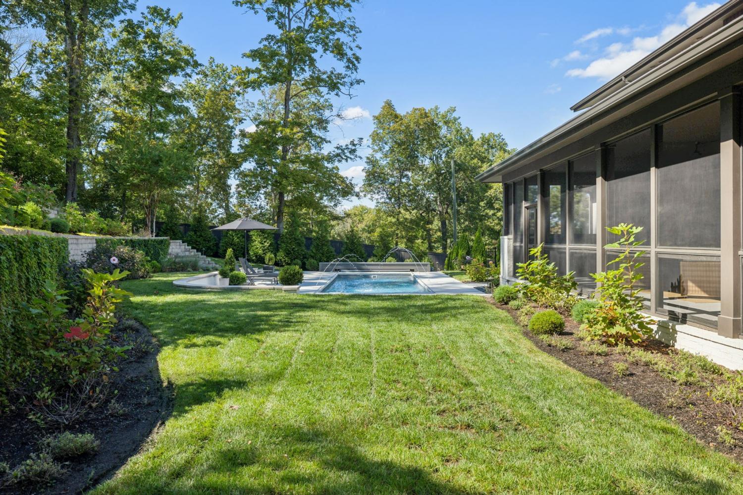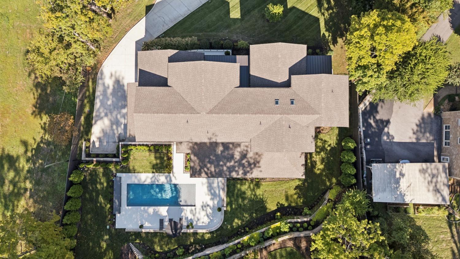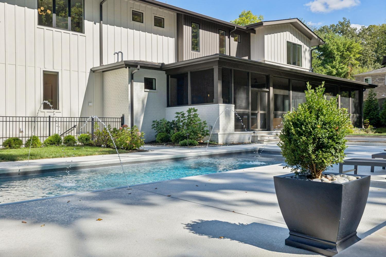 Perched above the treetops, this 5-bedroom West Meade luxury home by BUILD Nashville blends contemporary design with timeless charm. Located on nearly 2 acres in one of Nashville’s most desirable neighborhoods, this new construction retreat offers the rare combination of privacy, style, and sweeping views—creating an atmosphere of both elegance and ease. On the main level, you’ll find the primary suite, a guest room, home office, and laundry—a highly sought-after layout for convenience and functionality. The heart of the home features multiple indoor and outdoor entertaining spaces, including a screened-in patio, outdoor kitchen, and spacious gathering areas that flow seamlessly from inside to out. A gorgeous butler’s pantry and massive walk-in pantry elevate both hosting and everyday living. Upstairs, discover three additional bedrooms and a spacious media room (potential for 6th Bedroom). Each guest suite includes an en suite bathroom with designer tilework and a built-out walk-in closet, providing comfort and privacy for family or visitors. Throughout the home you’ll also find abundant storage closets, and the thoughtful design even allows for a future elevator installation if desired. Practical upgrades enhance the everyday experience, including a whole-home generator with automatic transfer switch, and a garage finished with epoxy floors, built-in workbench, and wall rack storage system—perfect for organization and functionality. Set on almost 2 acres, the property offers a rare combination of beautiful landscaping, usable yard space, and a heated pool with retractable cover—ideal for year-round enjoyment. Perfectly positioned in West Meade, this luxury home is just minutes from local shopping, restaurants, Costco, major interstates, and John C. Tune Airport—offering easy access to everything Nashville has to offer while maintaining the serenity of hilltop living.