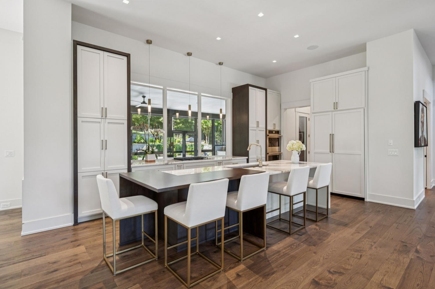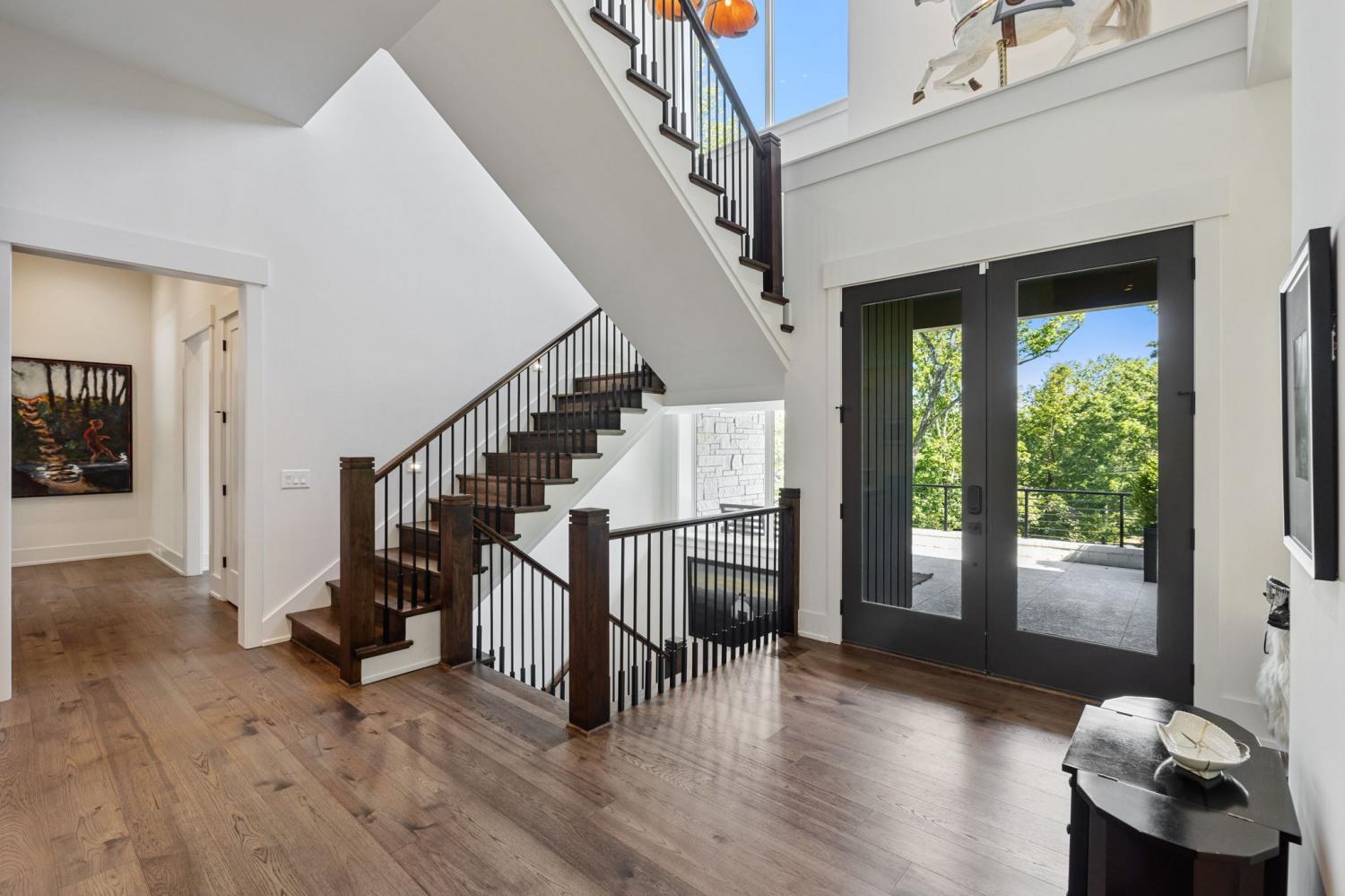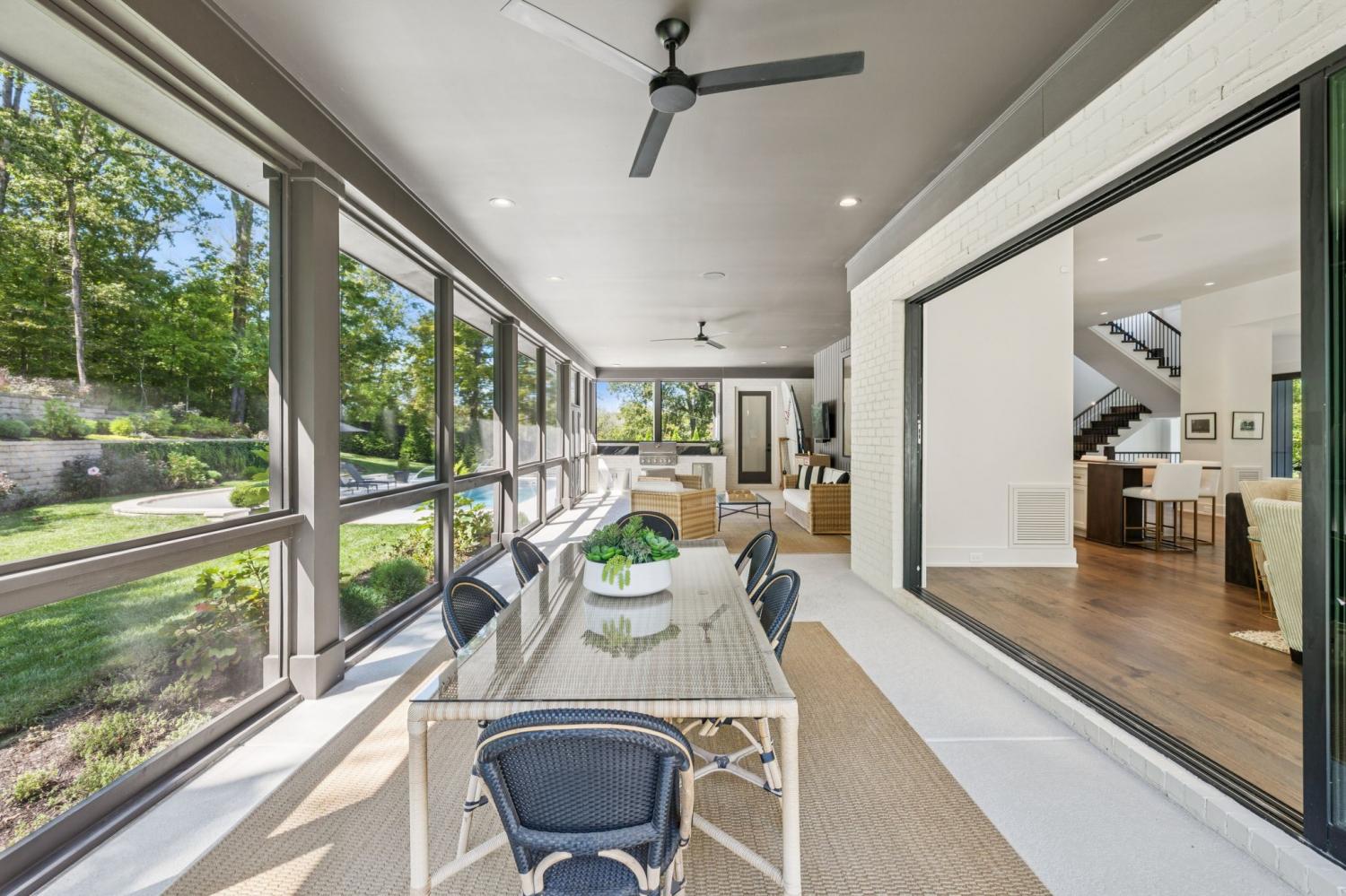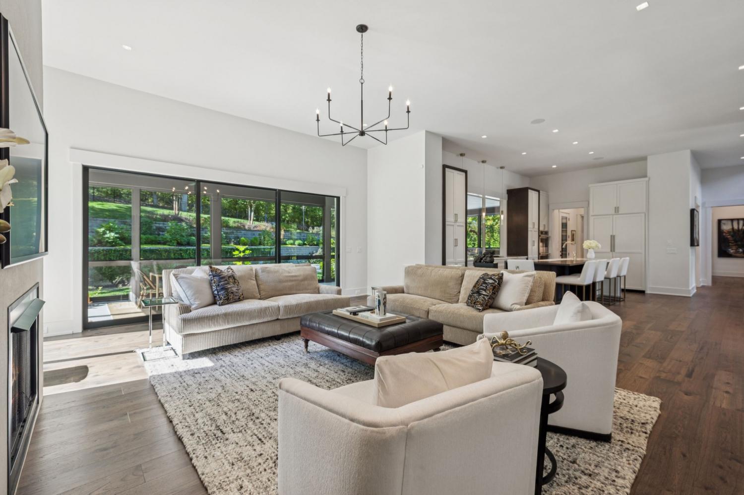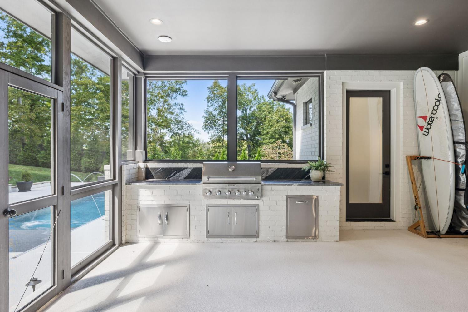 Perched above the treetops, this 5-bedroom West Meade luxury home by BUILD Nashville blends contemporary design with timeless charm. Located on nearly 2 acres in one of Nashville’s most desirable neighborhoods, this new construction retreat offers the rare combination of privacy, style, and sweeping views—creating an atmosphere of both elegance and ease. On the main level, you’ll find the primary suite, a guest room, home office, and laundry—a highly sought-after layout for convenience and functionality. The heart of the home features multiple indoor and outdoor entertaining spaces, including a screened-in patio, outdoor kitchen, and spacious gathering areas that flow seamlessly from inside to out. A gorgeous butler’s pantry and massive walk-in pantry elevate both hosting and everyday living. Upstairs, discover three additional bedrooms and a spacious media room (potential for 6th Bedroom). Each guest suite includes an en suite bathroom with designer tilework and a built-out walk-in closet, providing comfort and privacy for family or visitors. Throughout the home you’ll also find abundant storage closets, and the thoughtful design even allows for a future elevator installation if desired. Practical upgrades enhance the everyday experience, including a whole-home generator with automatic transfer switch, and a garage finished with epoxy floors, built-in workbench, and wall rack storage system—perfect for organization and functionality. Set on almost 2 acres, the property offers a rare combination of beautiful landscaping, usable yard space, and a heated pool with retractable cover—ideal for year-round enjoyment. Perfectly positioned in West Meade, this luxury home is just minutes from local shopping, restaurants, Costco, major interstates, and John C. Tune Airport—offering easy access to everything Nashville has to offer while maintaining the serenity of hilltop living.