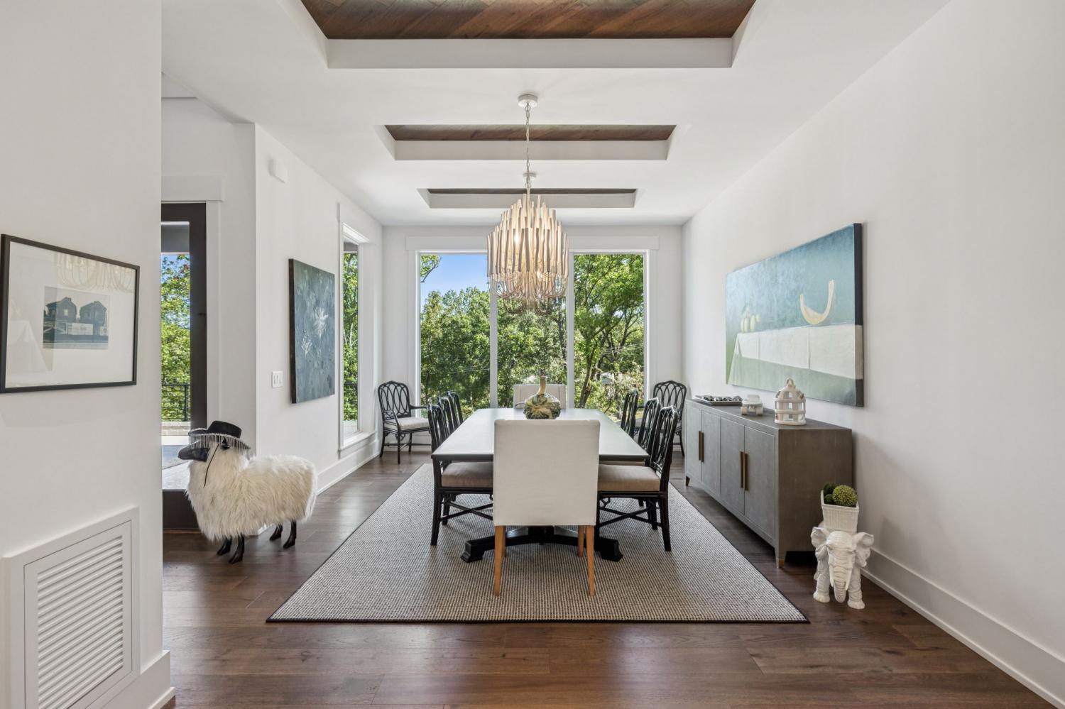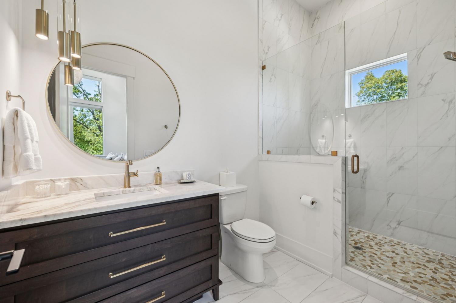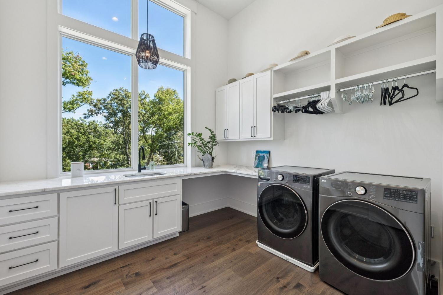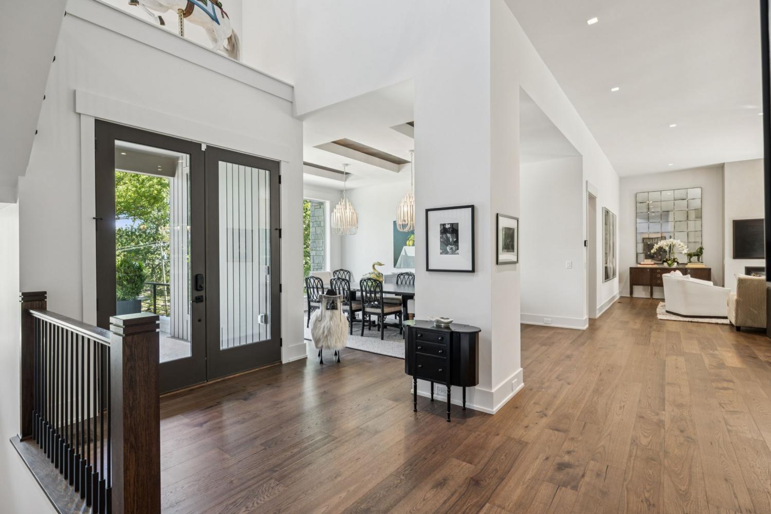 Perched above the treetops, this 5-bedroom West Meade luxury home by BUILD Nashville blends contemporary design with timeless charm. Located on nearly 2 acres in one of Nashville’s most desirable neighborhoods, this new construction retreat offers the rare combination of privacy, style, and sweeping views—creating an atmosphere of both elegance and ease. On the main level, you’ll find the primary suite, a guest room, home office, and laundry—a highly sought-after layout for convenience and functionality. The heart of the home features multiple indoor and outdoor entertaining spaces, including a screened-in patio, outdoor kitchen, and spacious gathering areas that flow seamlessly from inside to out. A gorgeous butler’s pantry and massive walk-in pantry elevate both hosting and everyday living. Upstairs, discover three additional bedrooms and a spacious media room (potential for 6th Bedroom). Each guest suite includes an en suite bathroom with designer tilework and a built-out walk-in closet, providing comfort and privacy for family or visitors. Throughout the home you’ll also find abundant storage closets, and the thoughtful design even allows for a future elevator installation if desired. Practical upgrades enhance the everyday experience, including a whole-home generator with automatic transfer switch, and a garage finished with epoxy floors, built-in workbench, and wall rack storage system—perfect for organization and functionality. Set on almost 2 acres, the property offers a rare combination of beautiful landscaping, usable yard space, and a heated pool with retractable cover—ideal for year-round enjoyment. Perfectly positioned in West Meade, this luxury home is just minutes from local shopping, restaurants, Costco, major interstates, and John C. Tune Airport—offering easy access to everything Nashville has to offer while maintaining the serenity of hilltop living.