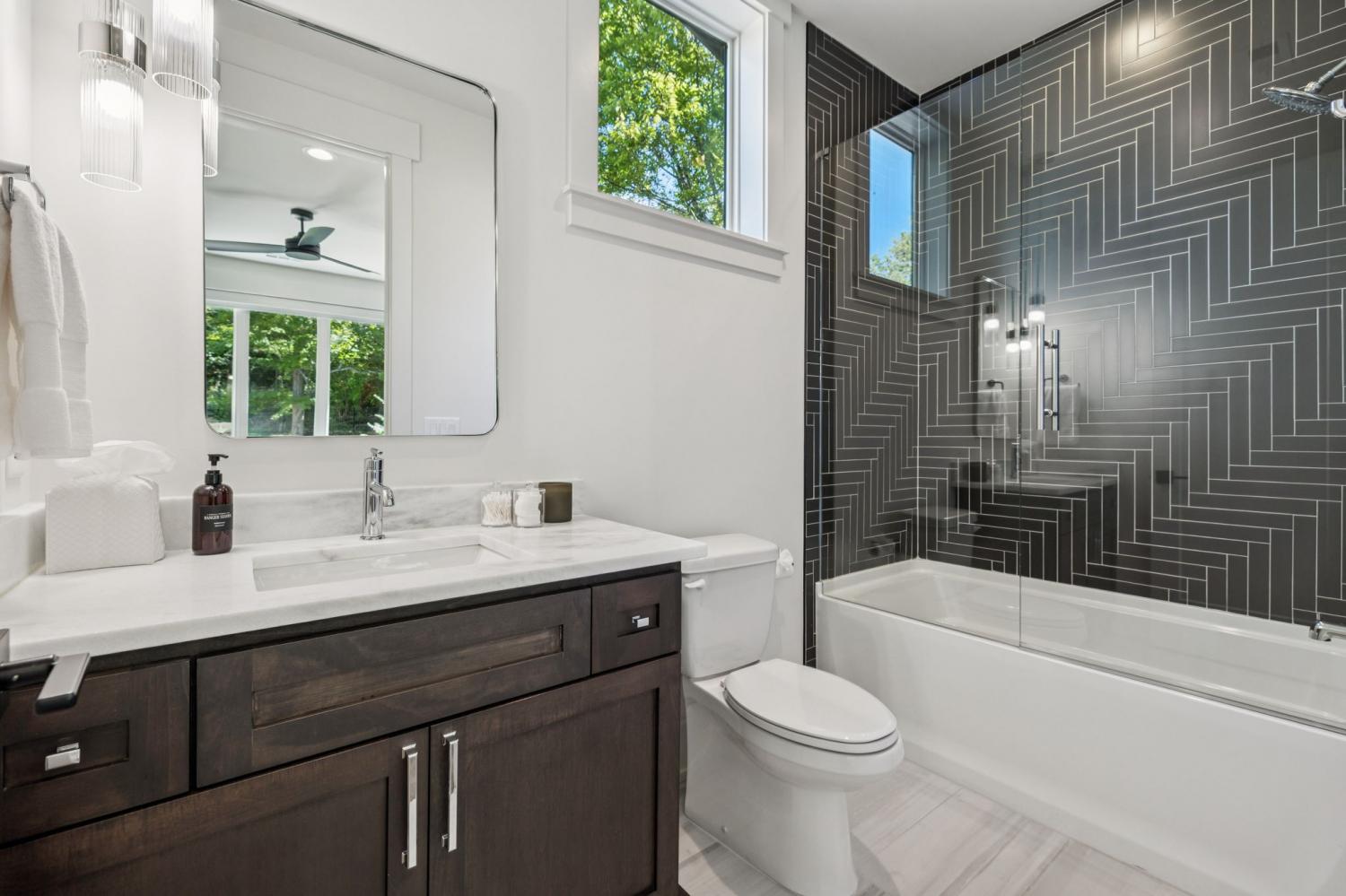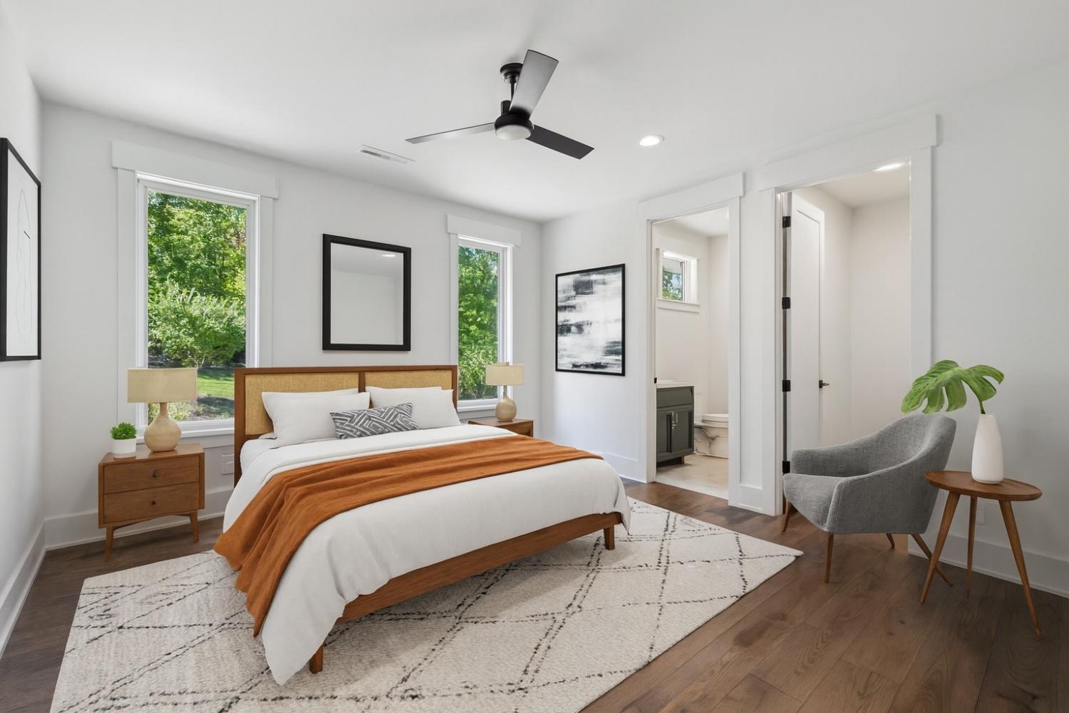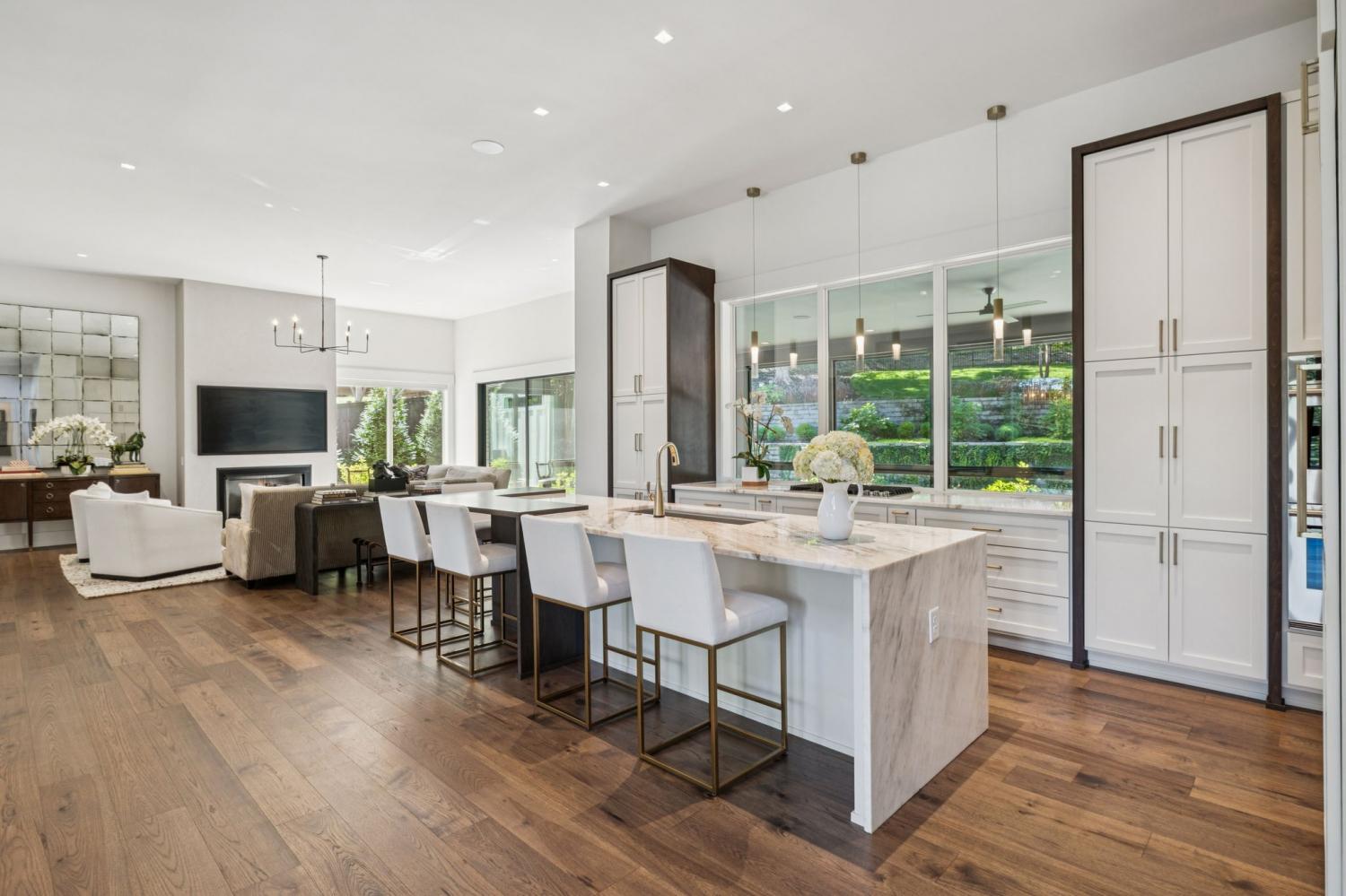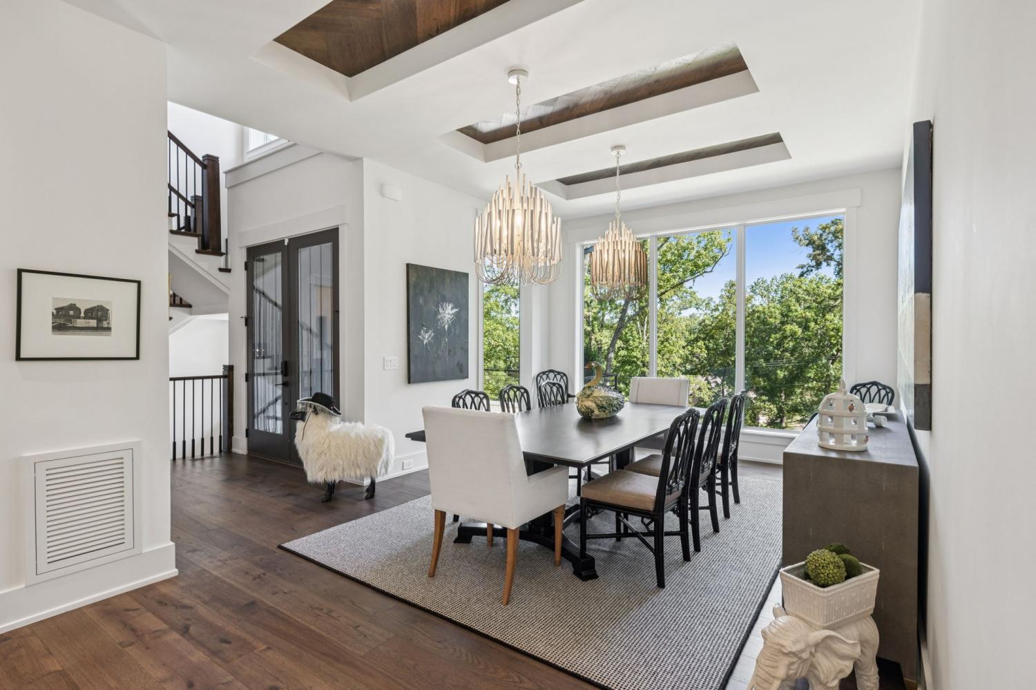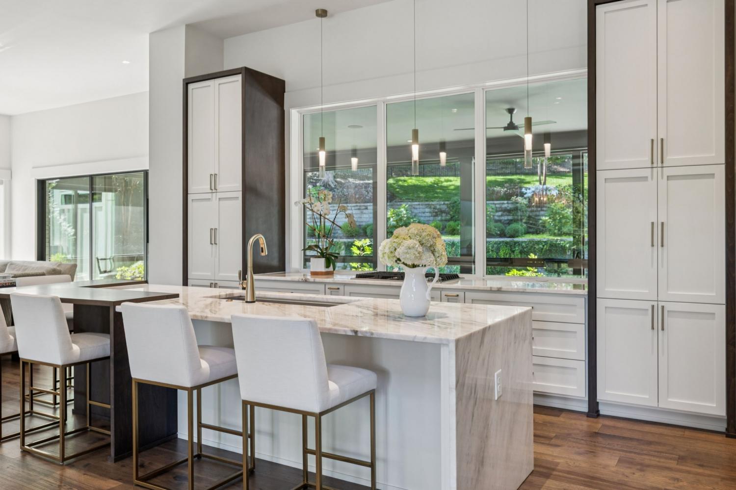 Perched above the treetops, this 5-bedroom West Meade luxury home by BUILD Nashville blends contemporary design with timeless charm. Located on nearly 2 acres in one of Nashville’s most desirable neighborhoods, this new construction retreat offers the rare combination of privacy, style, and sweeping views—creating an atmosphere of both elegance and ease. On the main level, you’ll find the primary suite, a guest room, home office, and laundry—a highly sought-after layout for convenience and functionality. The heart of the home features multiple indoor and outdoor entertaining spaces, including a screened-in patio, outdoor kitchen, and spacious gathering areas that flow seamlessly from inside to out. A gorgeous butler’s pantry and massive walk-in pantry elevate both hosting and everyday living. Upstairs, discover three additional bedrooms and a spacious media room (potential for 6th Bedroom). Each guest suite includes an en suite bathroom with designer tilework and a built-out walk-in closet, providing comfort and privacy for family or visitors. Throughout the home you’ll also find abundant storage closets, and the thoughtful design even allows for a future elevator installation if desired. Practical upgrades enhance the everyday experience, including a whole-home generator with automatic transfer switch, and a garage finished with epoxy floors, built-in workbench, and wall rack storage system—perfect for organization and functionality. Set on almost 2 acres, the property offers a rare combination of beautiful landscaping, usable yard space, and a heated pool with retractable cover—ideal for year-round enjoyment. Perfectly positioned in West Meade, this luxury home is just minutes from local shopping, restaurants, Costco, major interstates, and John C. Tune Airport—offering easy access to everything Nashville has to offer while maintaining the serenity of hilltop living.