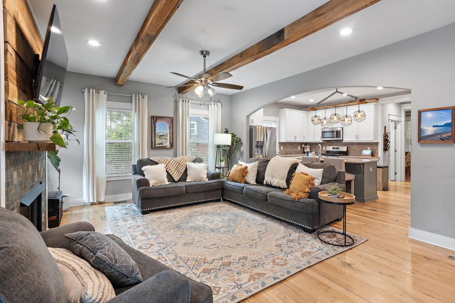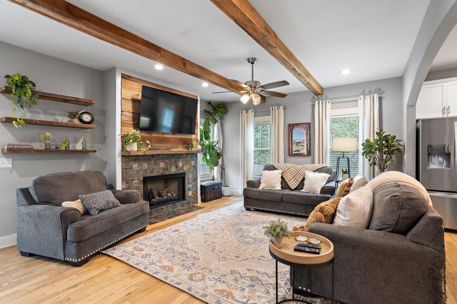 Open house Sunday 2-4p! Welcome to 144 Dellway Dr in East Nashville’s Joywood Heights! This beautiful 4-bedroom, 2.5-bath home sits on over half an acre surrounded by mature trees, offering both privacy and convenience just minutes from downtown Nashville. Built in 2017, this property combines modern design with a warm, inviting feel and plenty of space for everyday living. Step inside to an open-concept layout featuring hardwood floors, abundant natural light, and a cozy fireplace in the living room. The kitchen is well-appointed with a built-in gas range, stainless steel appliances, a pantry, and ample cabinetry—ideal for cooking and entertaining. A dedicated dining area provides a comfortable setting for family meals or hosting friends. The primary suite is conveniently located on the main level and features a spacious walk-in closet and a private bath with double vanities and a tiled shower. A secondary bedroom on the main floor offers flexible use as a guest room or home office. Upstairs, you’ll find two additional bedrooms, a full bathroom, and a versatile rec room that can serve as a playroom, media room, or creative workspace. Each upstairs bedroom includes access to large floored attic spaces, perfect for storage or potential future expansion. Outdoor living is just as impressive. Step out onto the back deck overlooking a large, level yard—a perfect space for entertaining, gardening, or relaxing under the shade of mature trees. With over half an acre, there’s plenty of room to add a garage, workshop, or outdoor living area. Located near Ellington Parkway and Trinity Lane, this home offers quick access to downtown Nashville, plus all the charm and culture that East Nashville is known for. Local restaurants, coffee shops, and parks are just minutes away, creating the ideal balance of city convenience and neighborhood tranquility.