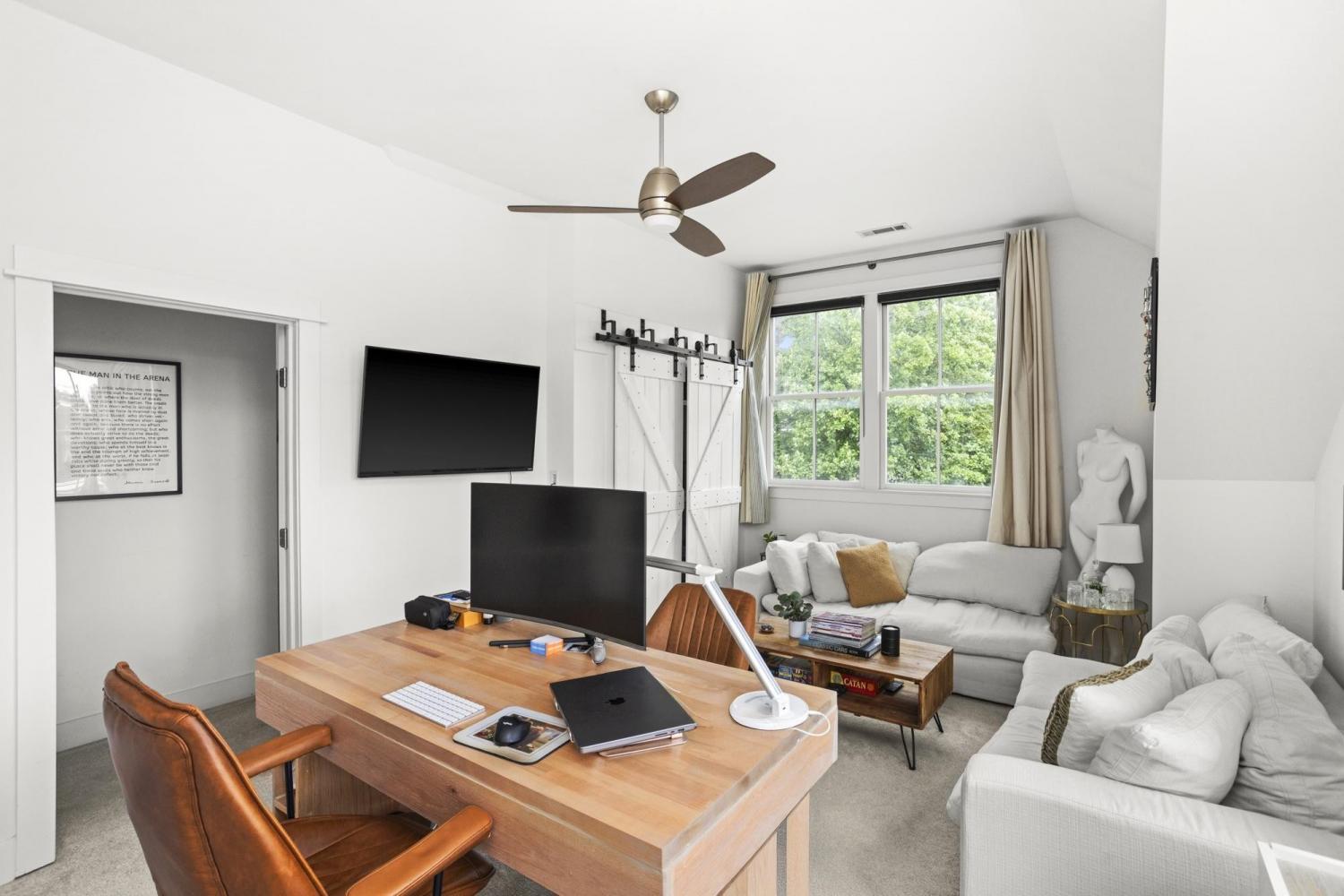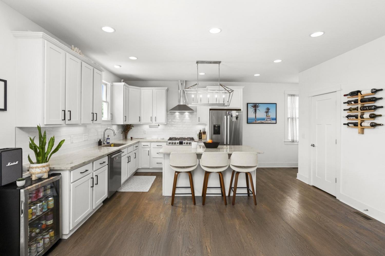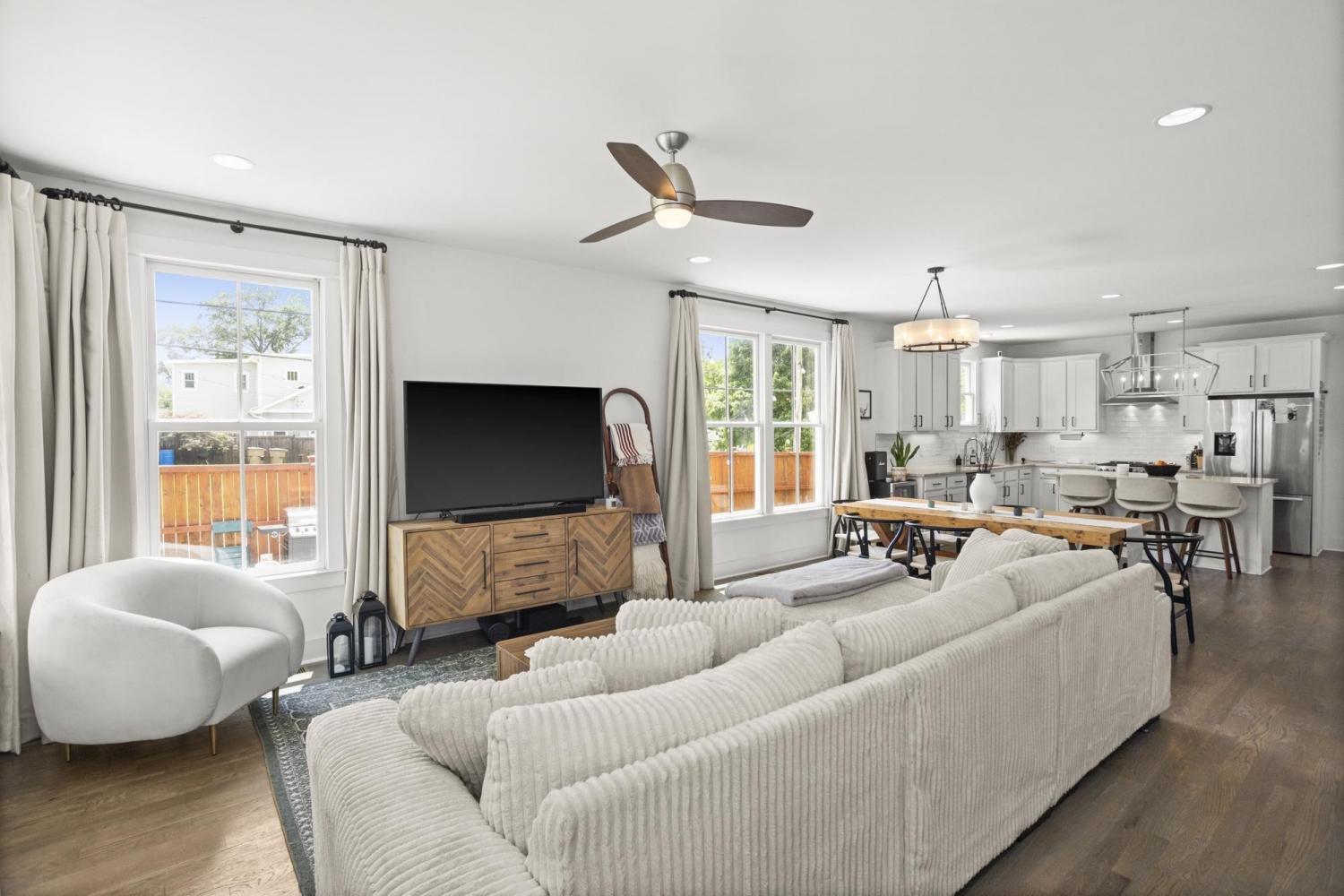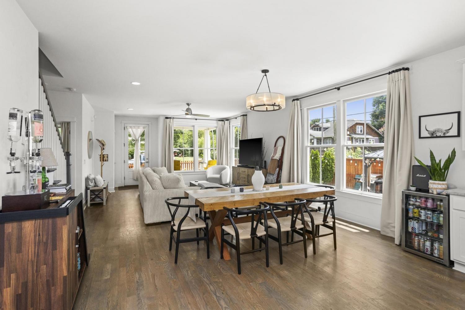 Located in East Nashville's desirable Eastwood Neighbors, this stunning 2020 custom-built craftsman home is a must-see! Nestled on a spacious corner lot, this 5-bedroom, 3.5-bath residence is just steps away from local favorites like Rosepepper, Jeni's, and Five Daughters Bakery. A large, fenced-in front yard and a welcoming front porch set the stage for this exceptional home. Step inside to an open-concept living, dining, and kitchen area featuring soaring ceilings, hardwood floors, and abundant natural light. The kitchen is an entertainer's dream, complete with quartz countertops, stainless steel appliances, and a gas stove. The main level offers a generously sized primary suite with a glassed-in shower, double vanities, and a huge walk-in closet. Upstairs, the secondary bedrooms all have large closets, and the fifth bedroom provides a flexible space for a home office or bonus room. Enjoy privacy and outdoor gatherings on the newly installed patio with a pergola. The home also includes an oversized laundry room for extra storage and a two-car car port. Option to sell partially or fully furnished. This home is in impeccable condition and loaded with features you won't want to miss!