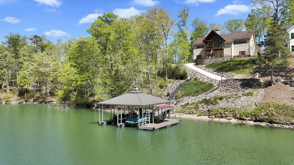 Your Dream Lakefront Home Awaits on Watts Bar Lake! Experience luxury lakefront living in this custom-built CRAFTSMAN dream home nestled on the shores of beautiful Watts Bar Lake. Enjoy year-round water access and serene LAKESIDE COVES in a private, gated community. Features That Will Captivate You: Towering cathedral ceiling with exposed beams, and specialty primary tongue and groove Stunning Craftsman Woodwork throughout the home, showcasing impeccable attention to detail. Custom, ornate, Cherry Cabinets with soft closing and pull outs. Cozy Wood-Burning Fireplace to warm up your evenings. Expansive Covered porch is the prime spot to wind down your day. Two-Slip Private Dock for effortless boating and water activities. Spacious Workshop—perfect for hobbies or extra storage. Main level garage will fit full size F250 with room left! Community Amenities: Exclusive Clubhouse for gatherings and events. Secure and serene gated community for peace of mind. Whether you're sipping coffee on the porch overlooking the water or exploring the lake, this home offers an unmatched blend of comfort and elegance. Make this your lakeside sanctuary today! Contact us now for a private showing!