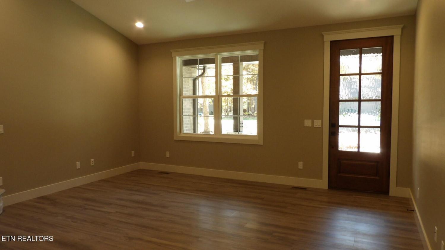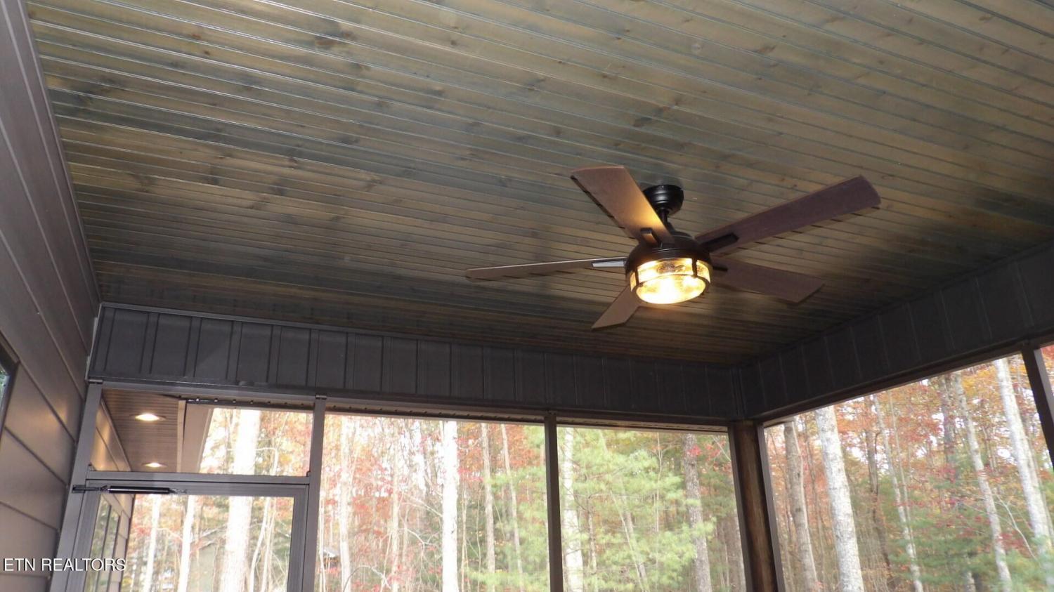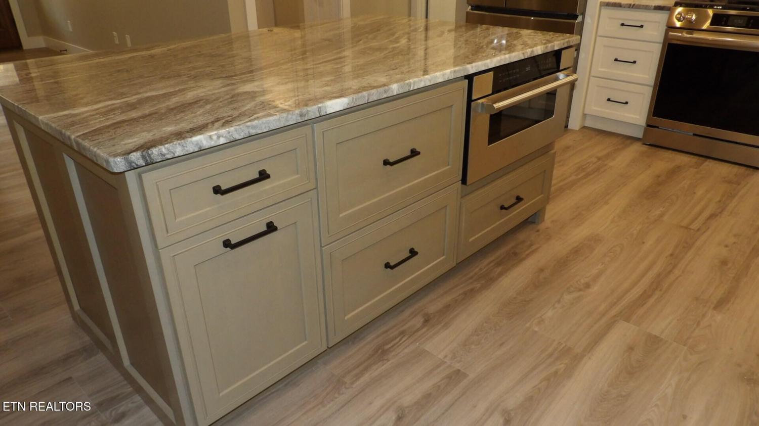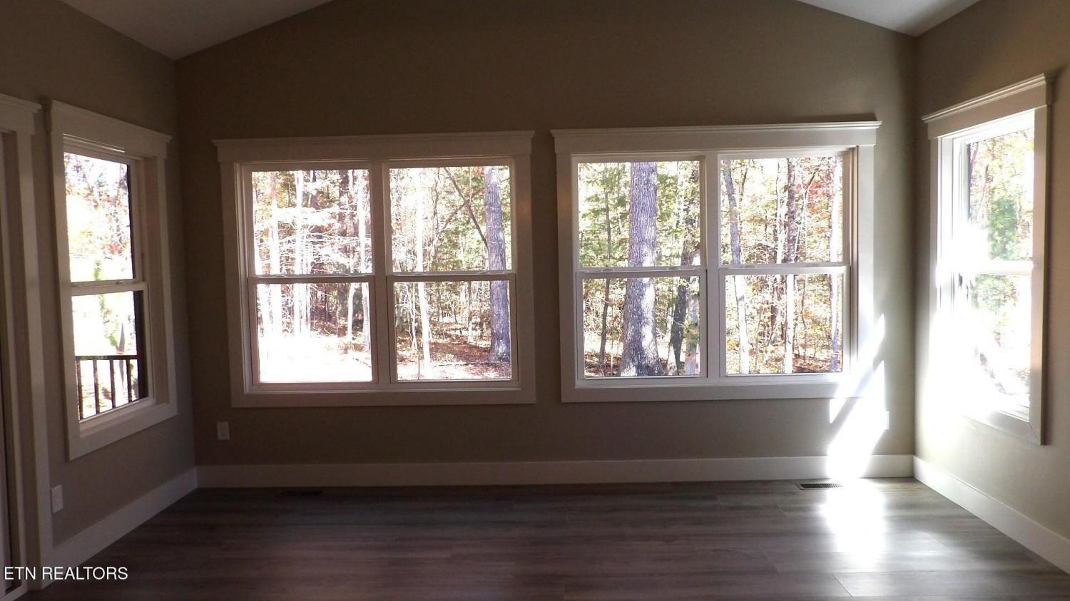 Quality built 3 bedroom, 2 bath home with cathedral ceiling in living room and a gorgeous gas fireplace that catches the eye from the front door entry, living room is open to the dining room with wainscoting on wall, and open to the beautiful kitchen with white cabinetry, double stacked upper cabinets with glass door and lights, built in pantry with pull out shelving, the island is a soft green to compliment the Fantasy Brown granite and tile backsplash, the island has storage on both sides, Frigidaire Gallery appliances, luxury vinyl plank flooring throughout the home with ceramic tile in the utility and baths. The master bedroom features a coffered ceiling, pocketdoor entry ensuite with double vanity and walk in tile shower with rainfall shower head, walk in closet with custom shelving. 2 guest bedrooms and bath on the opposite end of the home each featuring custom closet shelving. Spacious sunroom with large windows for natural lighting gives access to the screen porch with tongue & grove ceiling and open deck. Tankless water heater in the 2 car garage and concrete drive.