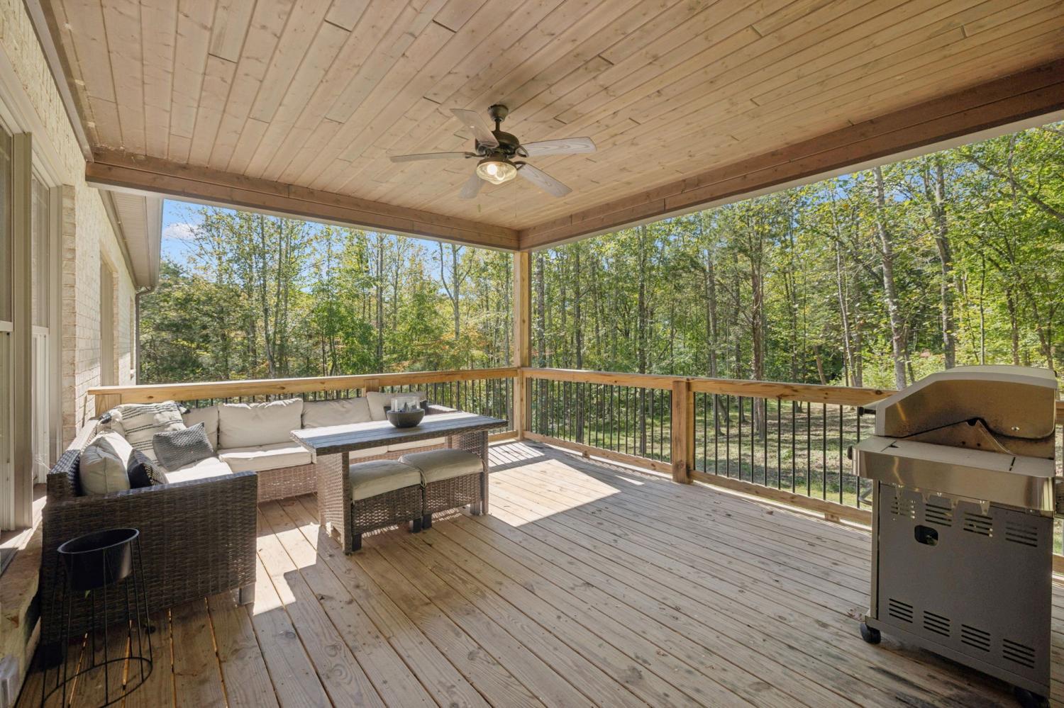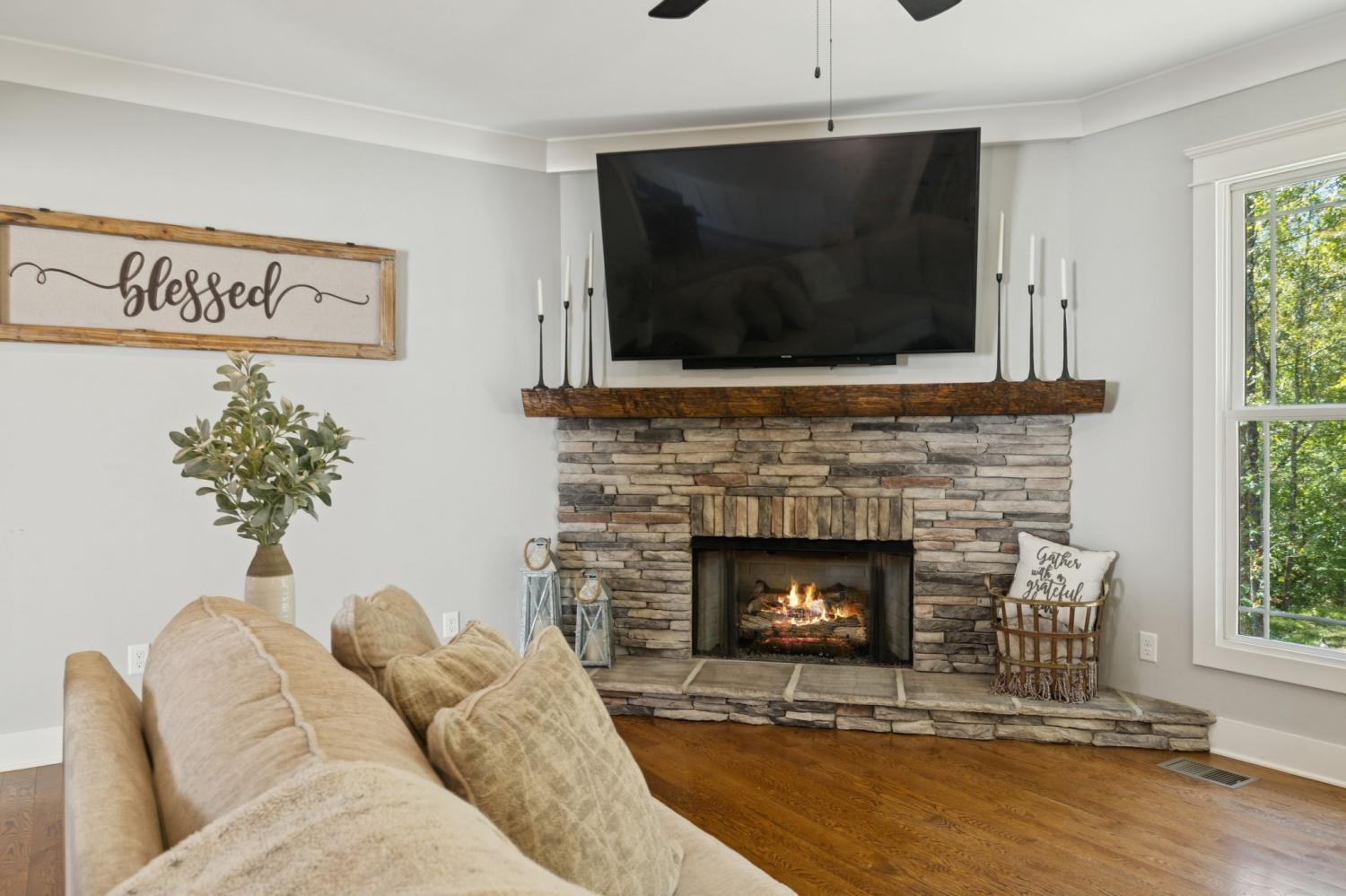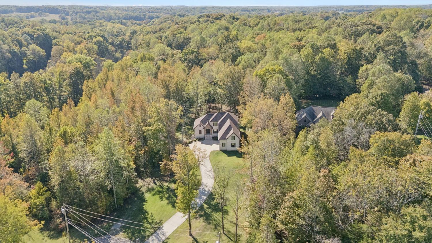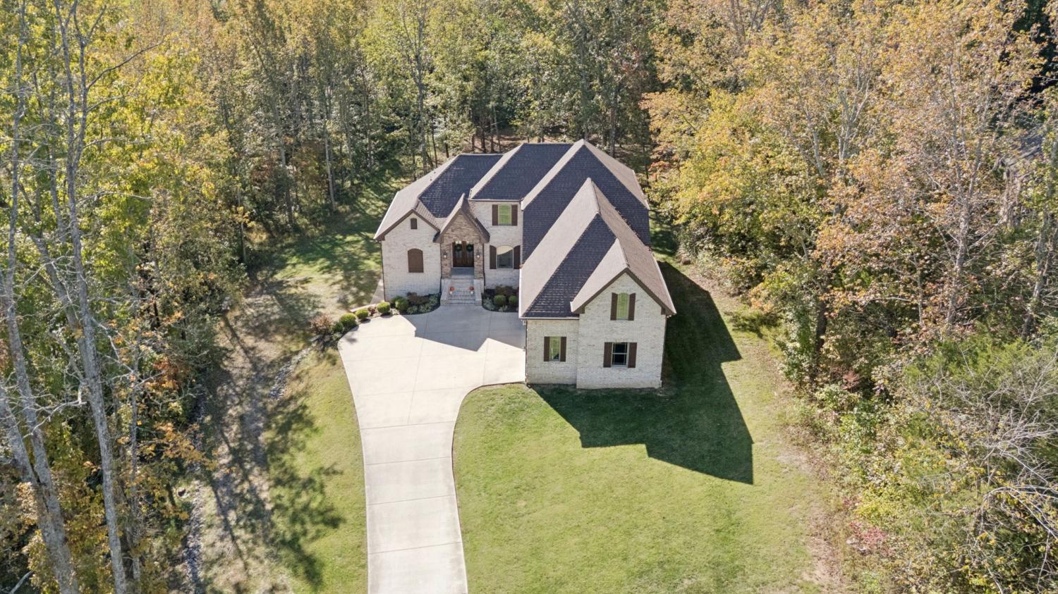 Welcome to this like-new custom home designed for functionality and entertaining! Offering 4,343 square feet, 4 bedrooms, and 3 full baths, this home delivers comfort and style at every turn. The main level features an open floor plan with hardwood flooring throughout the living areas and staircases. The spacious living room boasts a beautiful corner stone gas fireplace and flows seamlessly into the chef’s kitchen complete with a large island, 6-burner gas cooktop, farmhouse sink, and all appliances to remain. The formal dining area makes hosting a breeze. The primary suite overlooks the private backyard with mature trees and features tile flooring, a soaking tub, and a walk-in closet with built-in vanity. Also on the main level are a second bedroom, full bath, and tiled utility room with cabinetry. Upstairs, discover a designated office or flex area, two additional bedrooms, a full bath, and a large bonus room with walk-in storage. The basement is the ultimate entertaining zone, perfect for game days and includes a roll-up door that connects indoor and outdoor living. Additionally, the basement features an unfinished area already stubbed for a future in-law or young adult living suite complete with space for a bedroom, full bath, and designated kitchen area. Car enthusiasts will love the 3-car attached garage, and the tankless water heater ensures efficiency and endless hot water. All of this sits on 6.18 acres of scenic countryside, offering both space and serenity. Want more? The adjacent 7-acre tract is also available (MLS#2815689) and includes a year-round creek. Tucked on a quiet cul-de-sac yet only five minutes to I-65, this home perfectly balances peaceful living with convenient access to the city!