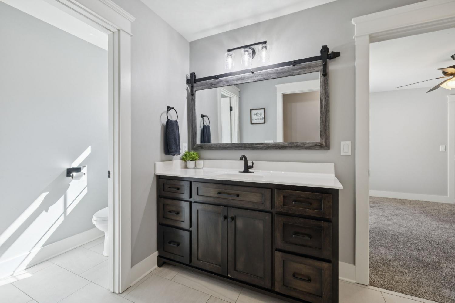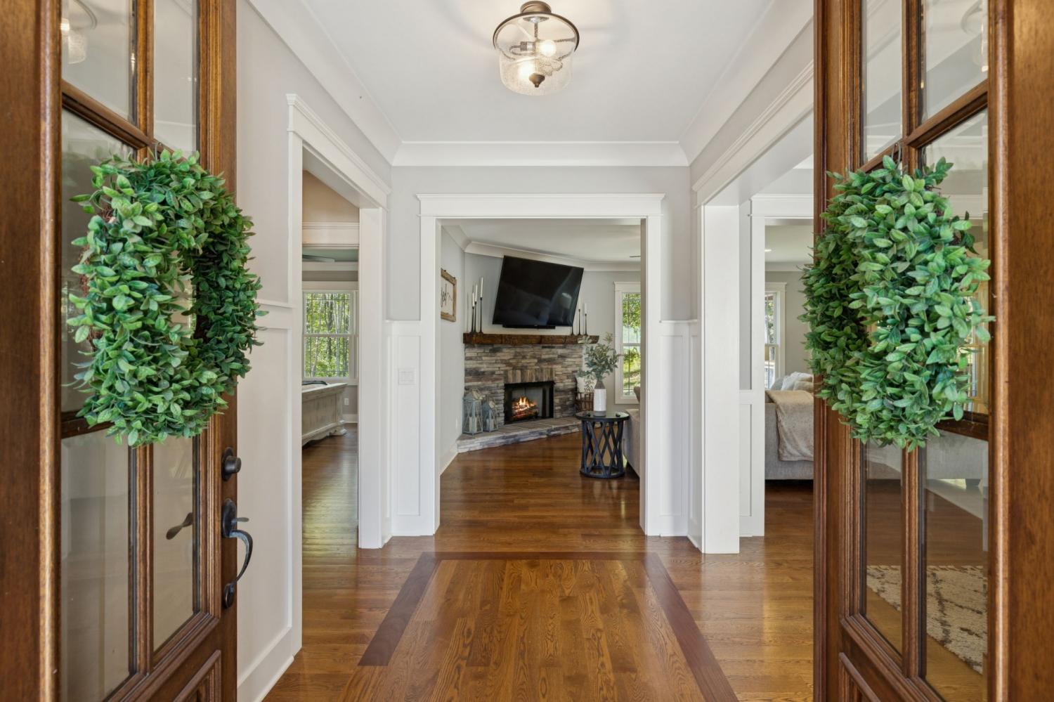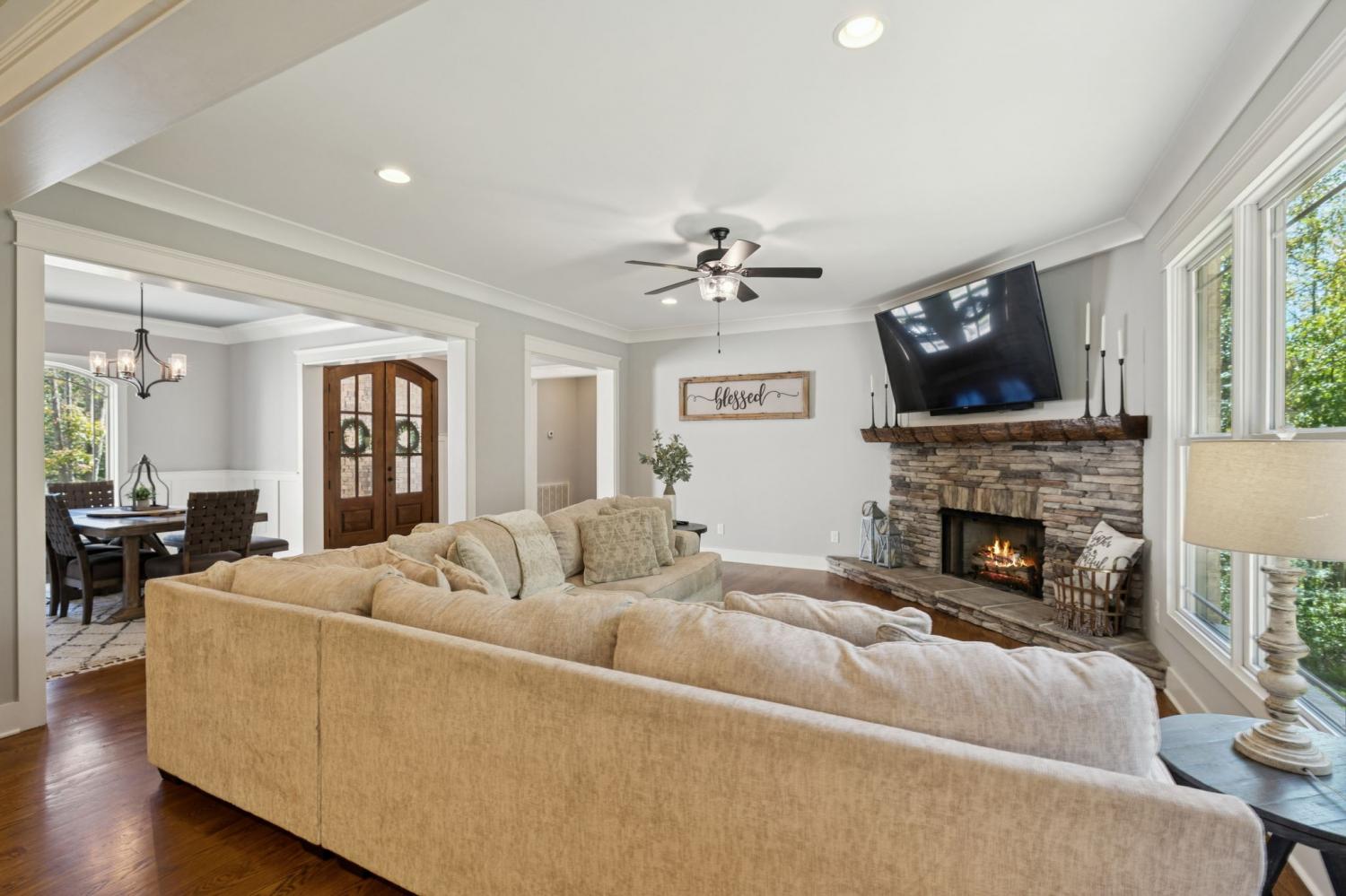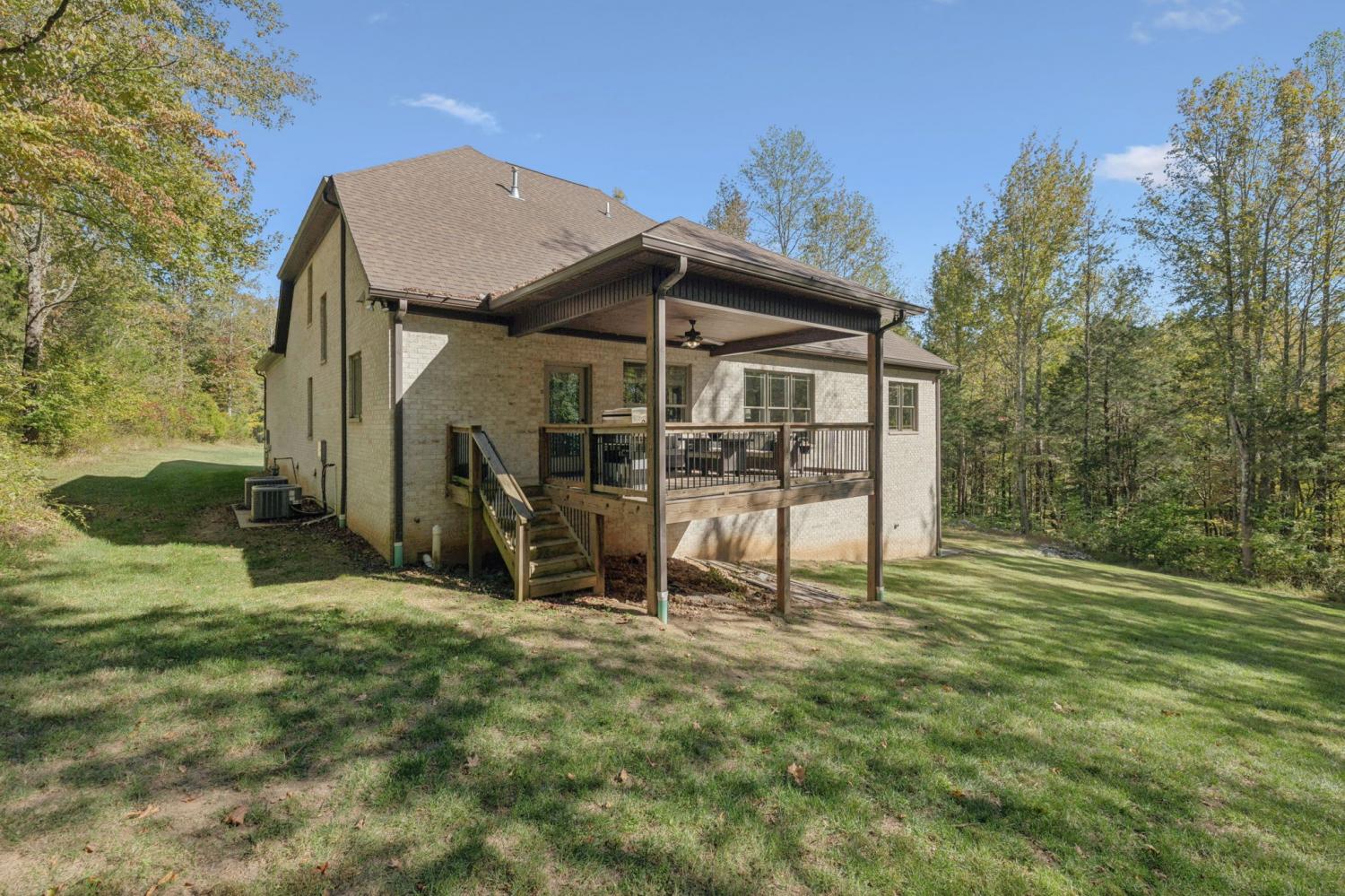 Welcome to this like-new custom home designed for functionality and entertaining! Offering 4,343 square feet, 4 bedrooms, and 3 full baths, this home delivers comfort and style at every turn. The main level features an open floor plan with hardwood flooring throughout the living areas and staircases. The spacious living room boasts a beautiful corner stone gas fireplace and flows seamlessly into the chef’s kitchen complete with a large island, 6-burner gas cooktop, farmhouse sink, and all appliances to remain. The formal dining area makes hosting a breeze. The primary suite overlooks the private backyard with mature trees and features tile flooring, a soaking tub, and a walk-in closet with built-in vanity. Also on the main level are a second bedroom, full bath, and tiled utility room with cabinetry. Upstairs, discover a designated office or flex area, two additional bedrooms, a full bath, and a large bonus room with walk-in storage. The basement is the ultimate entertaining zone, perfect for game days and includes a roll-up door that connects indoor and outdoor living. Additionally, the basement features an unfinished area already stubbed for a future in-law or young adult living suite complete with space for a bedroom, full bath, and designated kitchen area. Car enthusiasts will love the 3-car attached garage, and the tankless water heater ensures efficiency and endless hot water. All of this sits on 6.18 acres of scenic countryside, offering both space and serenity. Want more? The adjacent 7-acre tract is also available (MLS#2815689) and includes a year-round creek. Tucked on a quiet cul-de-sac yet only five minutes to I-65, this home perfectly balances peaceful living with convenient access to the city!