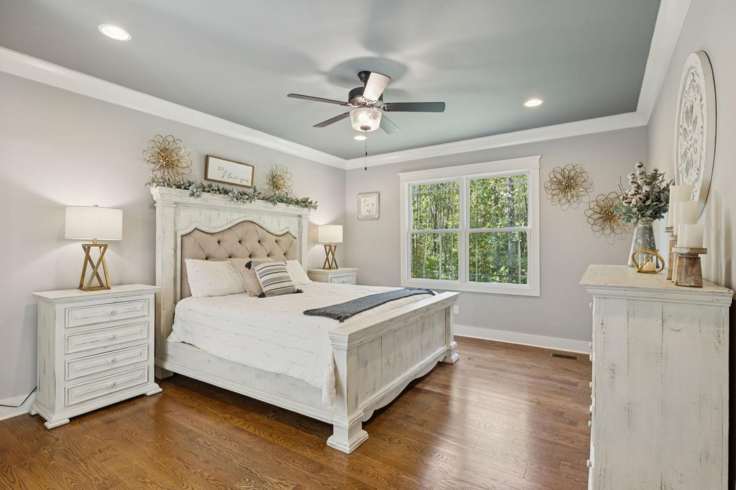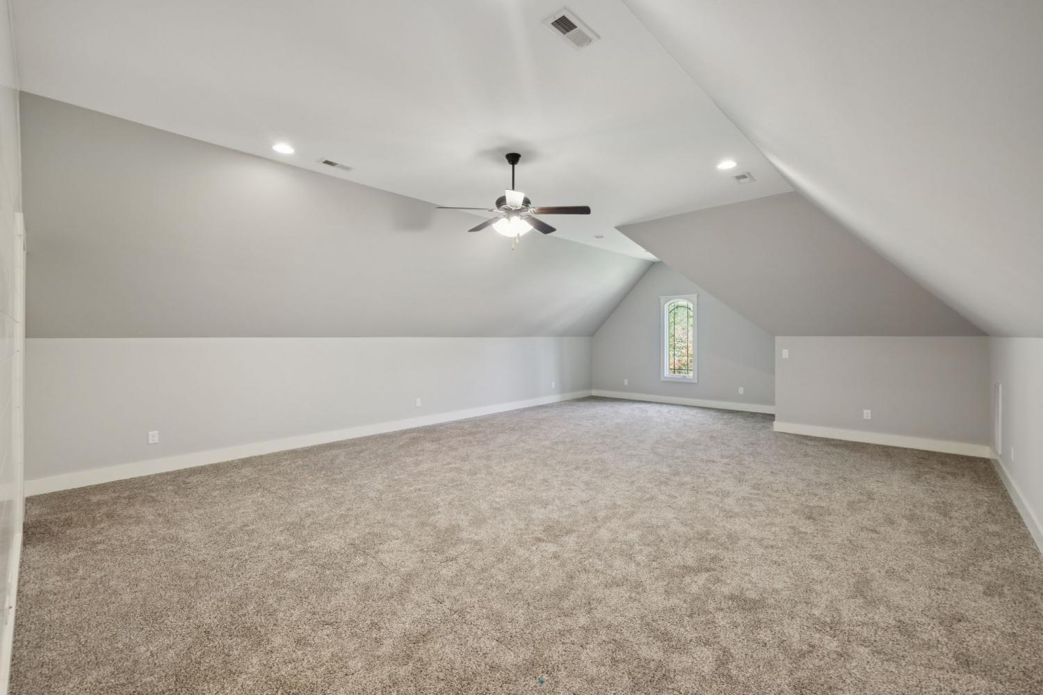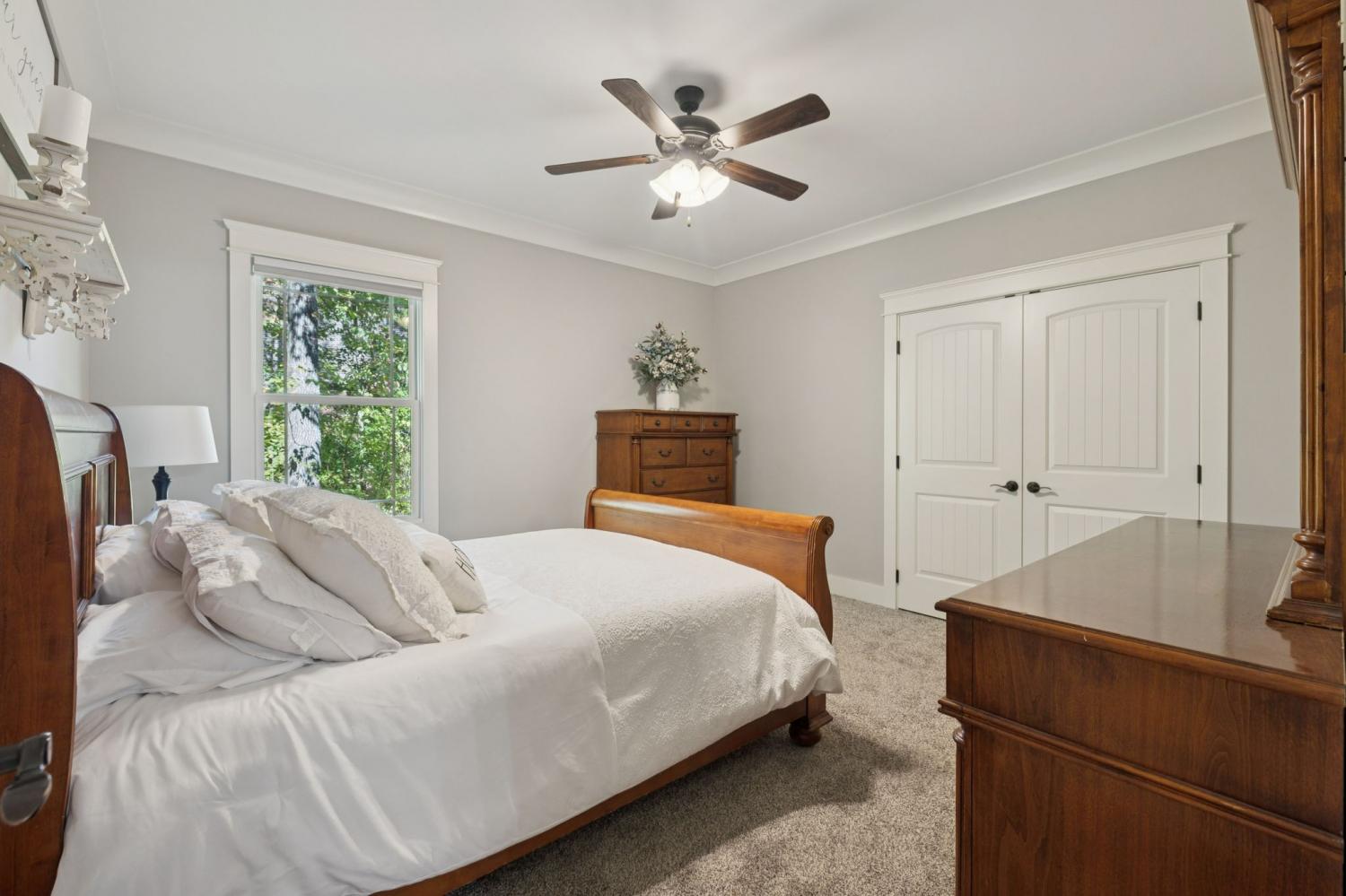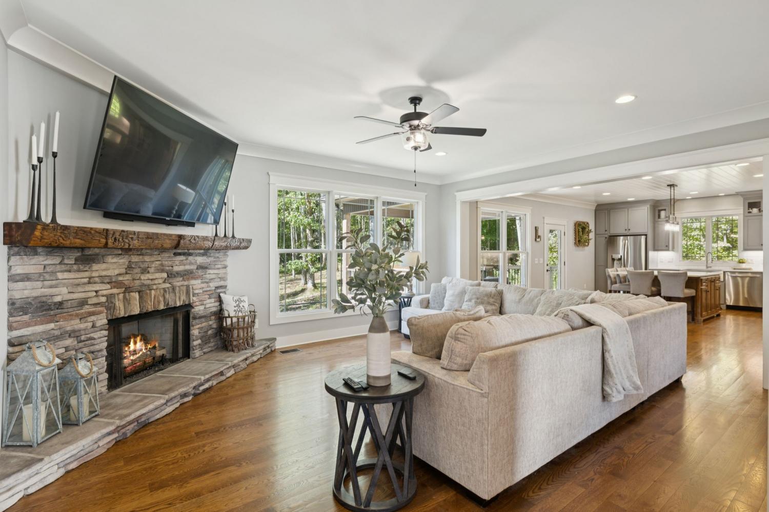 Welcome to this like-new custom home designed for functionality and entertaining! Offering 4,343 square feet, 4 bedrooms, and 3 full baths, this home delivers comfort and style at every turn. The main level features an open floor plan with hardwood flooring throughout the living areas and staircases. The spacious living room boasts a beautiful corner stone gas fireplace and flows seamlessly into the chef’s kitchen complete with a large island, 6-burner gas cooktop, farmhouse sink, and all appliances to remain. The formal dining area makes hosting a breeze. The primary suite overlooks the private backyard with mature trees and features tile flooring, a soaking tub, and a walk-in closet with built-in vanity. Also on the main level are a second bedroom, full bath, and tiled utility room with cabinetry. Upstairs, discover a designated office or flex area, two additional bedrooms, a full bath, and a large bonus room with walk-in storage. The basement is the ultimate entertaining zone, perfect for game days and includes a roll-up door that connects indoor and outdoor living. Additionally, the basement features an unfinished area already stubbed for a future in-law or young adult living suite complete with space for a bedroom, full bath, and designated kitchen area. Car enthusiasts will love the 3-car attached garage, and the tankless water heater ensures efficiency and endless hot water. All of this sits on 6.18 acres of scenic countryside, offering both space and serenity. Want more? The adjacent 7-acre tract is also available (MLS#2815689) and includes a year-round creek. Tucked on a quiet cul-de-sac yet only five minutes to I-65, this home perfectly balances peaceful living with convenient access to the city!