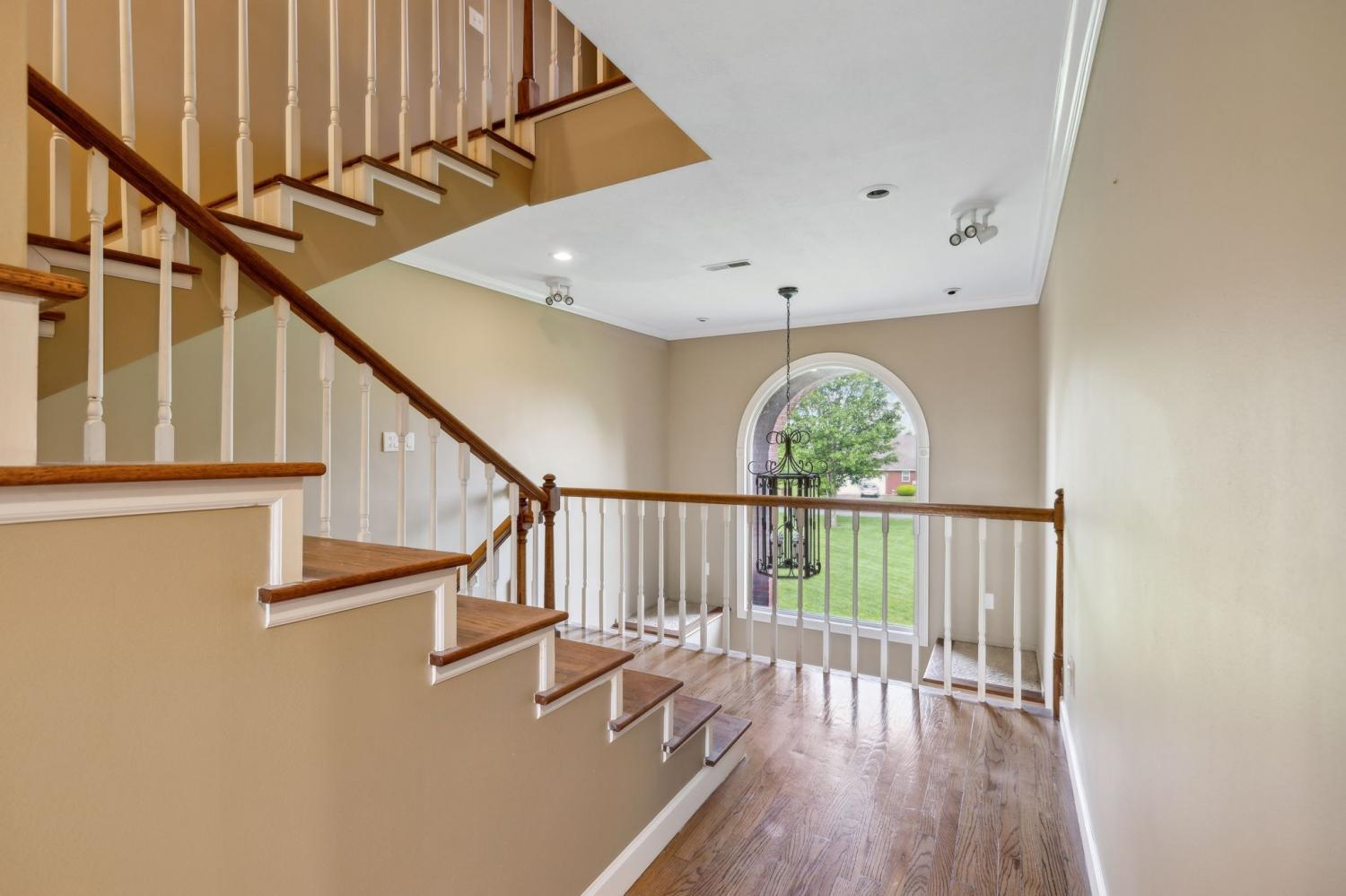 A recent professional measurement has confirmed that the home’s square footage is nearly double what was originally recorded, significantly increasing its market value. With the true size now accurately reflected, the asking price has been adjusted to align with comparable properties of similar size, quality, and features. This impressive all-brick two-story home now offers nearly double the living space previously recorded! From the moment you enter, you’ll appreciate the high ceilings, rich hardwood floors, and spacious layout designed for comfortable living and entertaining. The chef’s kitchen features modern appliances, ample cabinetry, and generous counter space. The home includes two primary suites, one on each level, providing flexibility for guests or multi-generational living. A dedicated library or den serves as a peaceful retreat for reading or working from home. With two full levels of living, this home combines elegance, comfort, and functionality. Nestled on 1.54 acres, the property boasts a serene stocked pond that creates a peaceful backdrop for outdoor enjoyment.