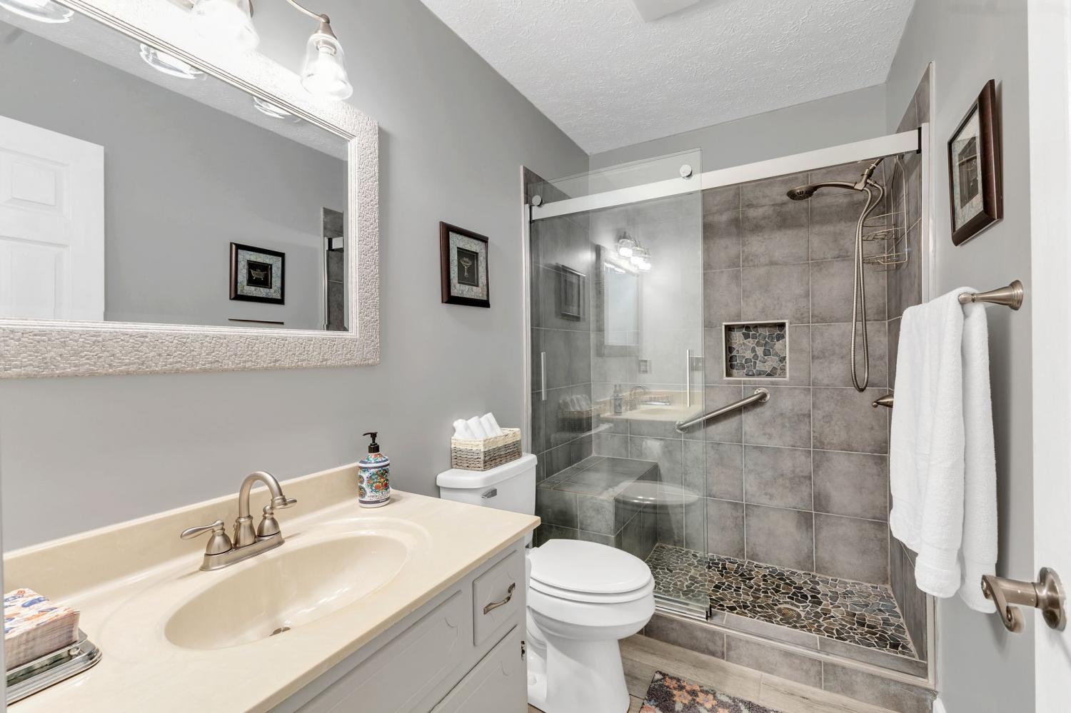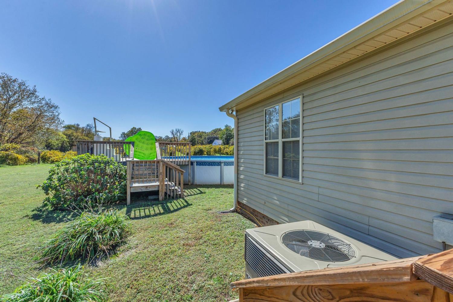 This immaculately maintained home is a move-in-ready gem, showcasing thoughtful updates and pristine care. Step through the 5-year-old fiberglass front door to find fresh interior paint (3 years old), Mohawk carpet in bedrooms, and engineered wood floors in the kitchen, dining, and living areas (all 4 years old). Modern upgrades include new ductwork, plumbing, and an encapsulated crawl space with a vapor barrier, ensuring efficiency and durability. The full-size kitchen boasts a 4-year-old stainless steel sink and Whirlpool appliances, including a convection oven, microwave, and dishwasher. An oversized high-efficiency Whirlpool washer and dryer add convenience. The renovated guest bathroom features all-tile finishes, a walk-in shower with a seat, and handicap accessibility. A 6-year-old Trane HVAC (electric/propane), 2-year-old ceiling fans, and a 4-year-old Generac whole-house generator keep the home comfortable and secure. Outside, enjoy a 4-year-old 27-foot round above-ground pool with all accessories (filter, vacuum hose, skimmers) and a 3-year-old pressure-treated deck perfect for entertaining. The large 2-car garage has 5-year-old insulated automatic doors and a 2-year-old roof. With 3-year-old gutters and large closets throughout, this home blends style and function. Don’t miss this meticulously updated property, with major systems upgraded within 6 years. From the pool to the energy-efficient features, it’s designed for low-maintenance living. Schedule a showing today to see this rare find!