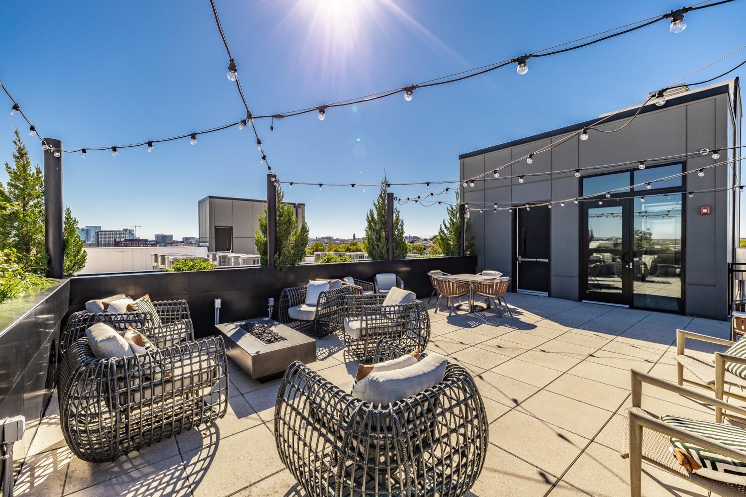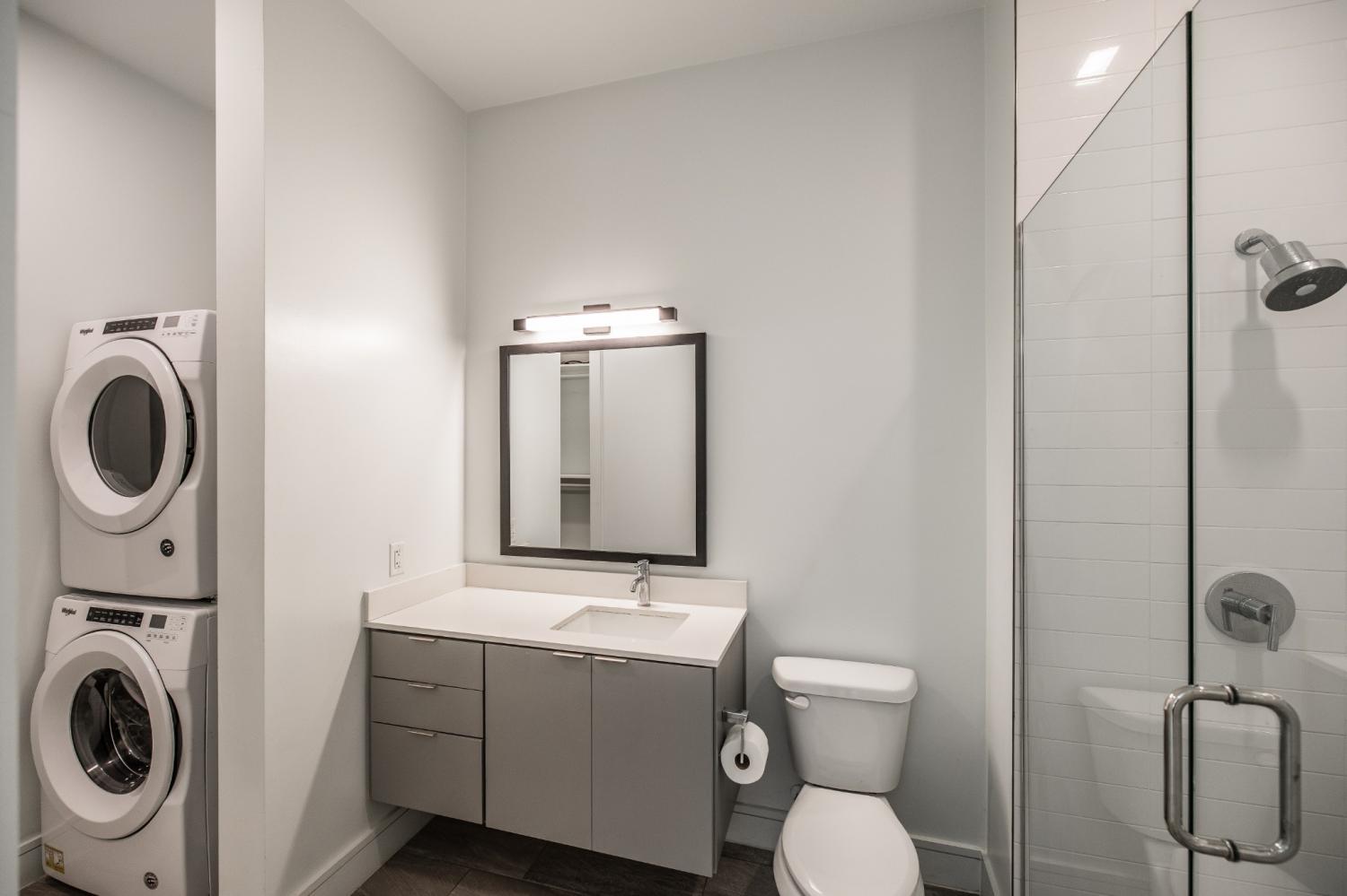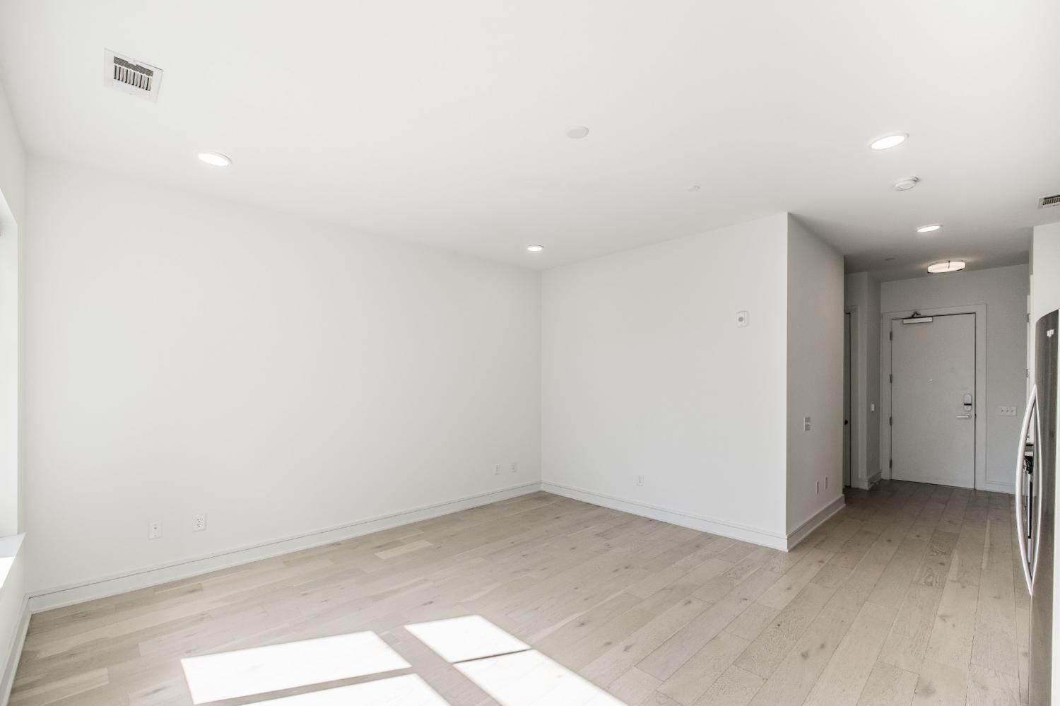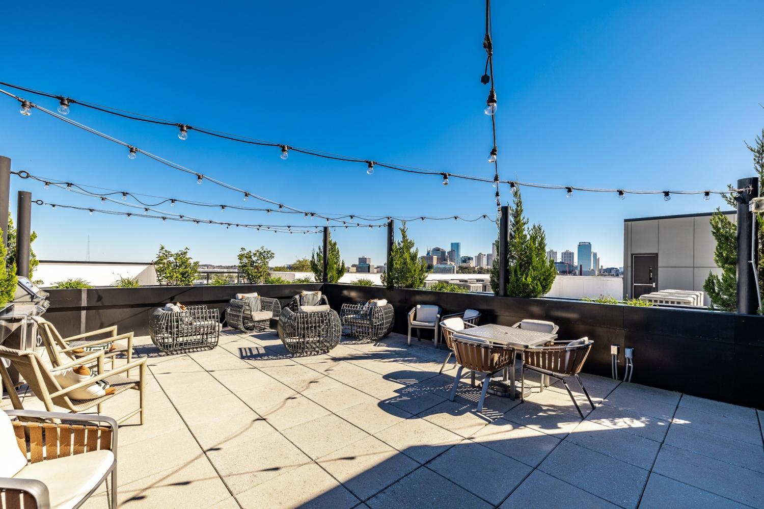 Experience elevated city living in this pristine, sleek Nashville flat boasting breathtaking rooftop views of downtown's skyline. Every detail has been carefully curated from the high-end engineered wood floors to the accentuating tall ceilings that create an airy, open ambiance. Enjoy the latest in smart home tech with WiFi-enabled thermostats, Latch smart locks, and Sonos speaker integration. This gourmet kitchen features sleek cabinetry, quartz countertops, and modern finishes. Unwind in the spa-inspired glass enclosed tiled shower, showcasing a clean, contemporary aesthetic. Whether you're enjoying sunset views from the rooftop or strolling just steps to the heart of Germantown and minutes from downtown, this condo offers the perfect blend of style, efficiency, and location. Renting permitted.