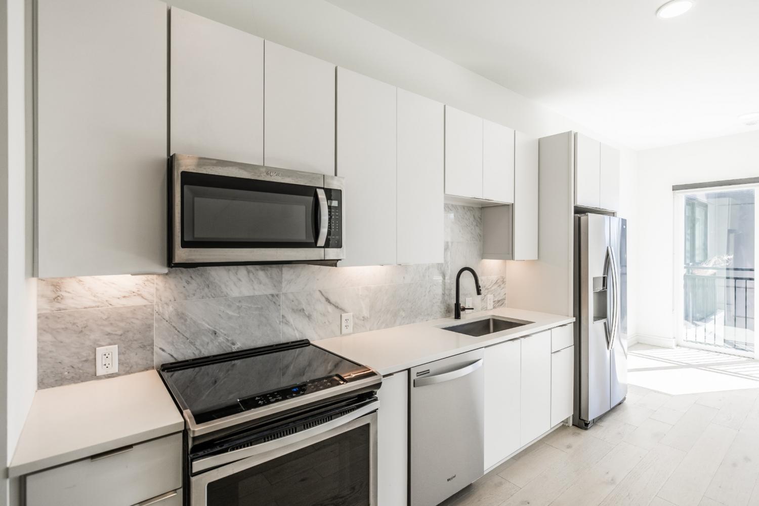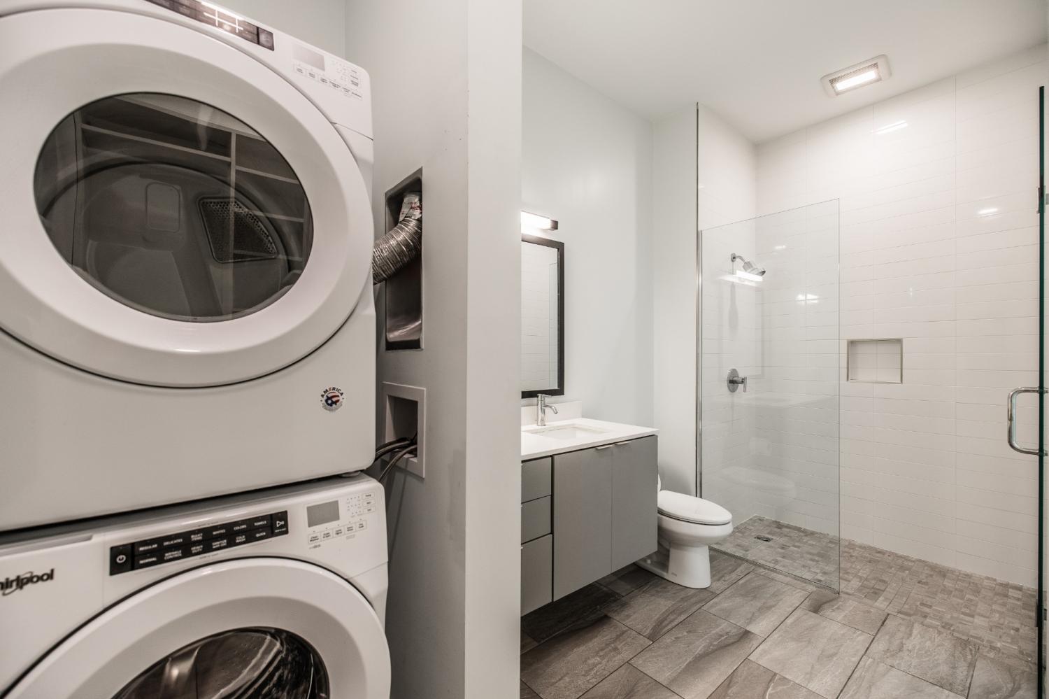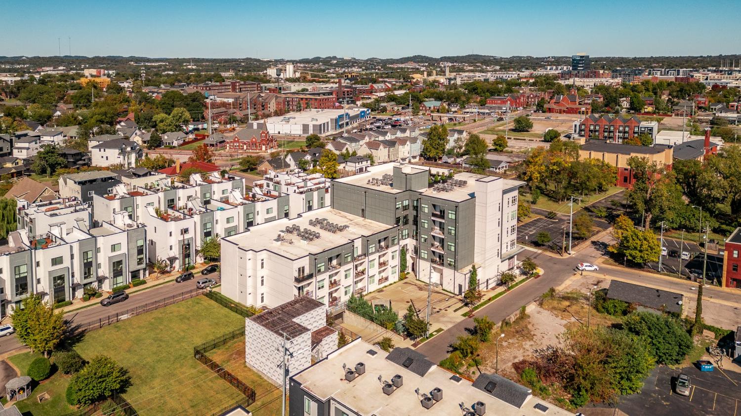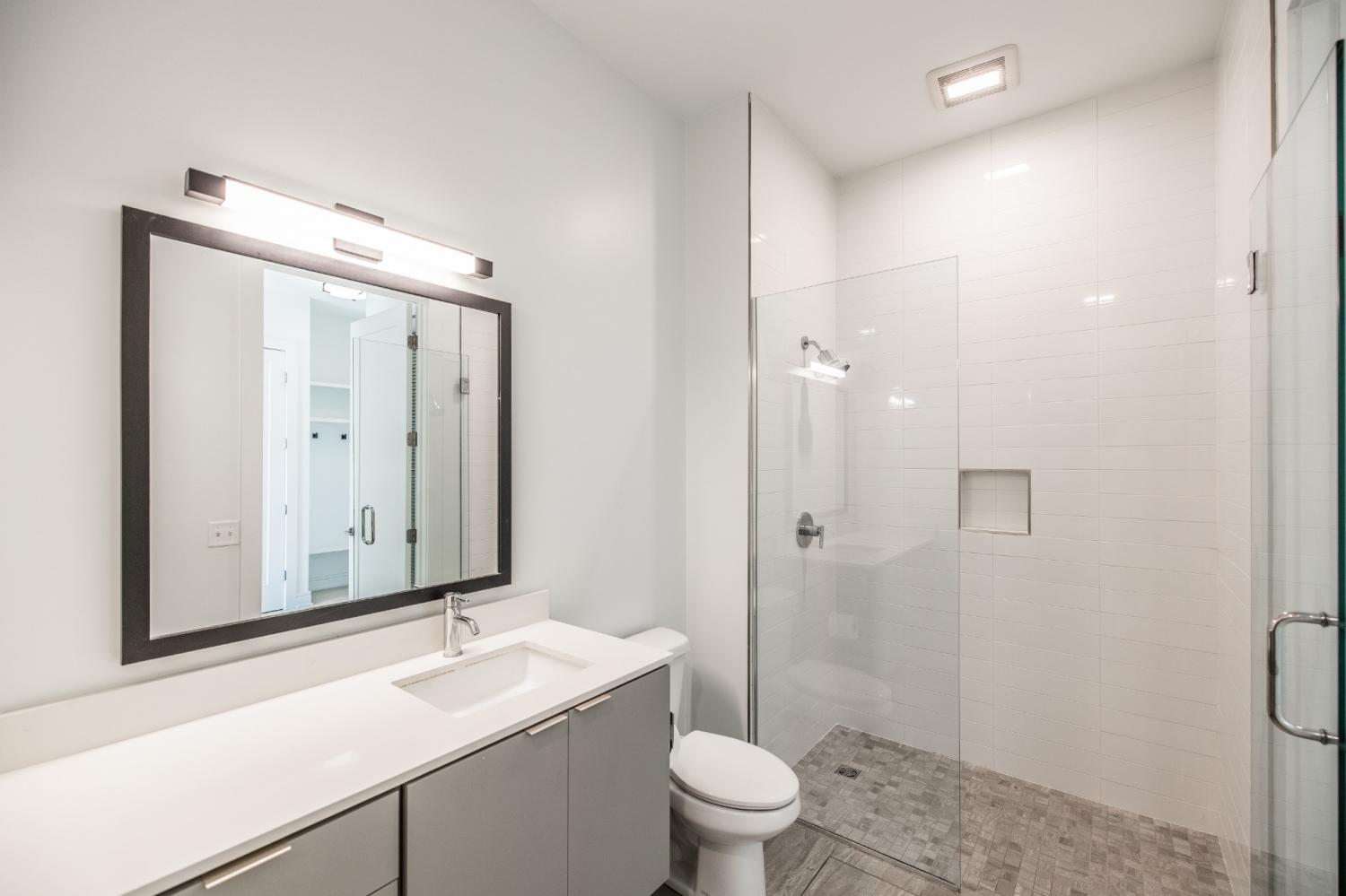 Experience elevated city living in this pristine, sleek Nashville flat boasting breathtaking rooftop views of downtown's skyline. Every detail has been carefully curated from the high-end engineered wood floors to the accentuating tall ceilings that create an airy, open ambiance. Enjoy the latest in smart home tech with WiFi-enabled thermostats, Latch smart locks, and Sonos speaker integration. This gourmet kitchen features sleek cabinetry, quartz countertops, and modern finishes. Unwind in the spa-inspired glass enclosed tiled shower, showcasing a clean, contemporary aesthetic. Whether you're enjoying sunset views from the rooftop or strolling just steps to the heart of Germantown and minutes from downtown, this condo offers the perfect blend of style, efficiency, and location. Renting permitted.