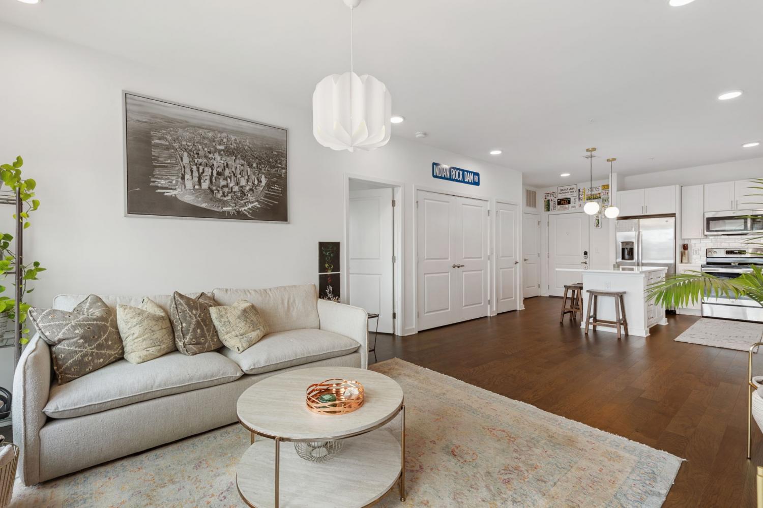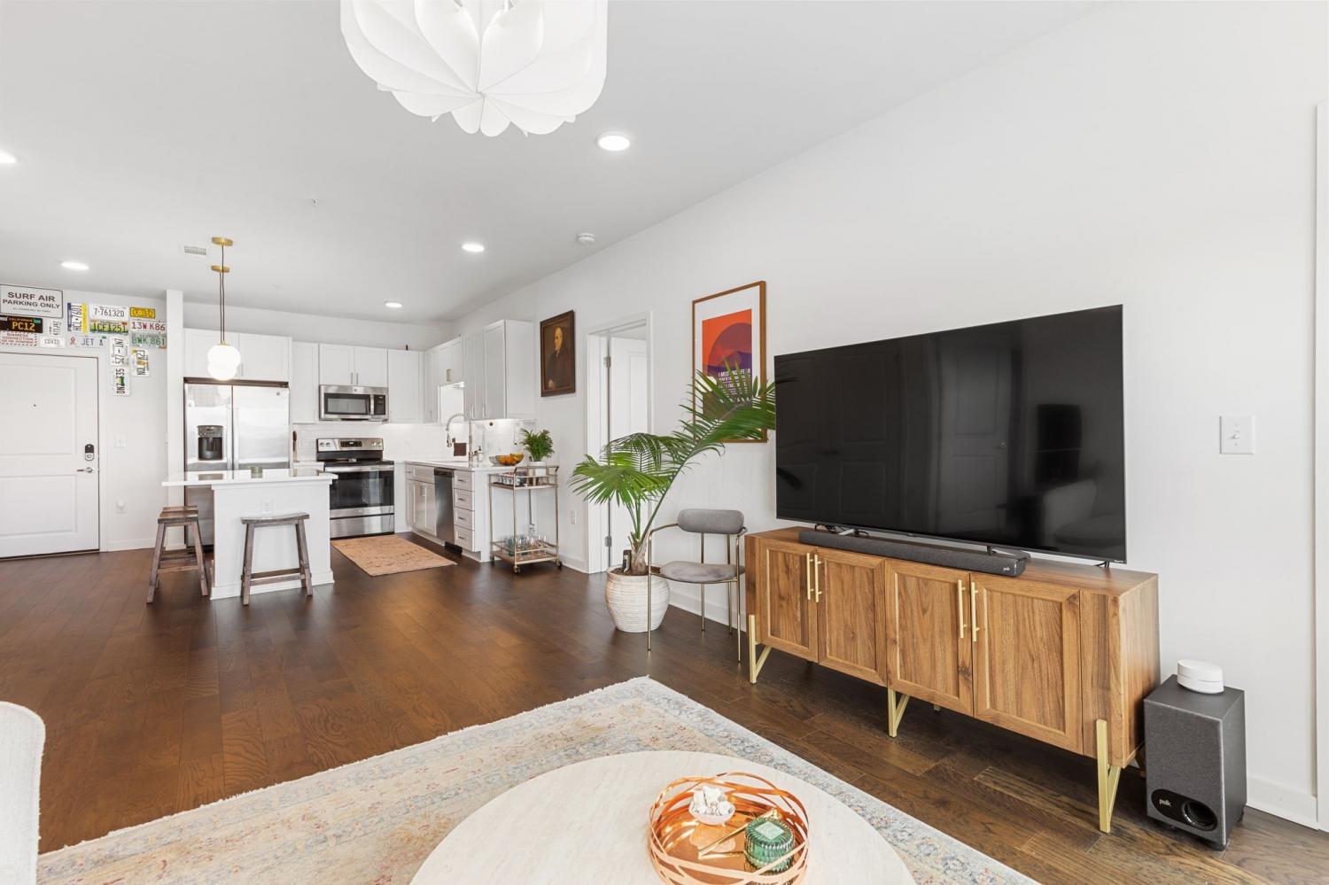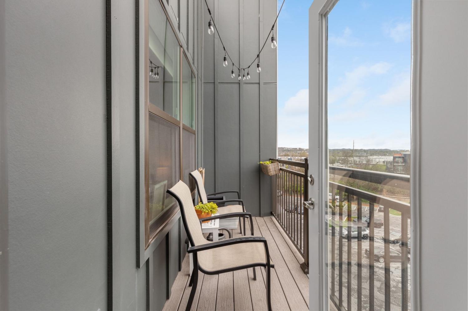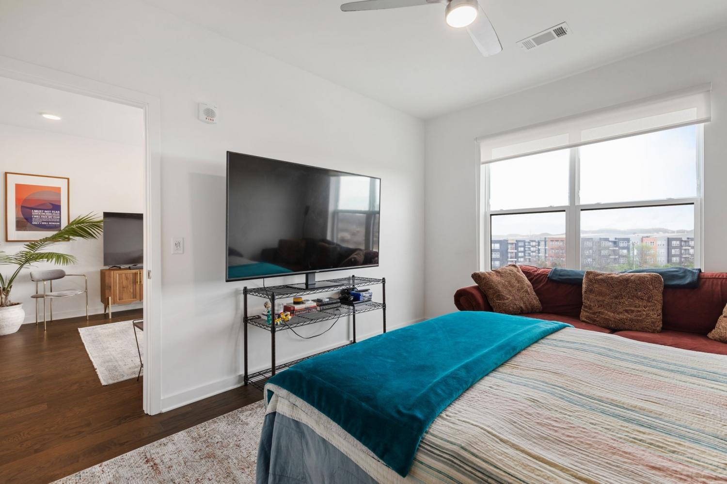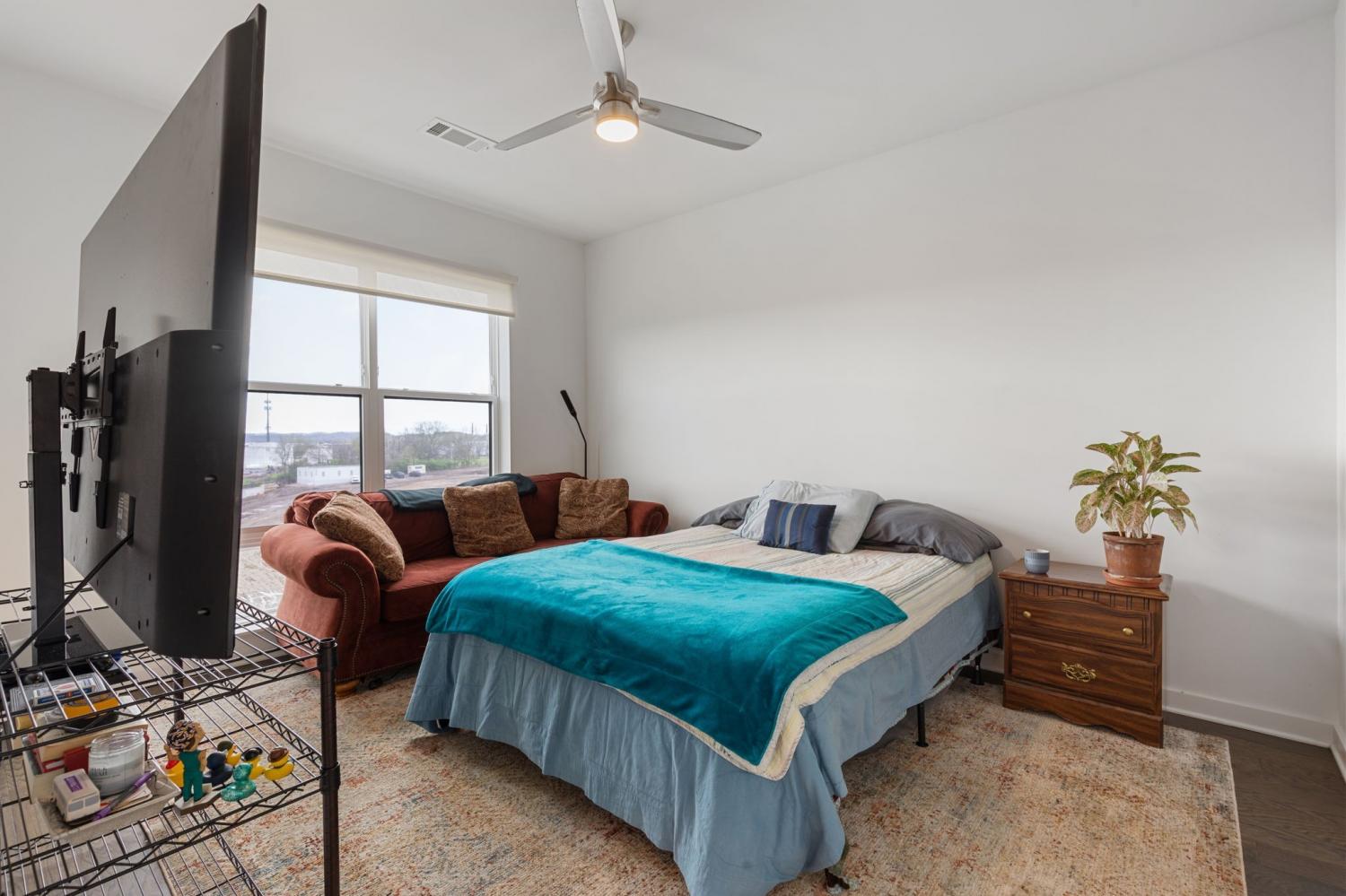 Rare top-floor residence in Silo West, offering 2 bedrooms, 2 full baths, and 1,136 sq ft of modern, light-filled living space. This like-new condo blends style and function with soaring ceilings, hardwood floors, and an open-concept layout that connects the living room to a spacious kitchen. The gourmet kitchen boasts stainless steel appliances (including a built-in oven and range), and the in-unit washer/dryer also convey, making it move-in ready. Both bedrooms are spacious, each with its own bath, including a primary suite with a walk-in shower and double vanities. Large windows and the top-floor location provide extra privacy, abundant natural light, and no neighbors above. Located in the heart of The Nations—a fast-growing neighborhood—Silo West offers unmatched convenience. Walk to coffee shops, breweries, and on-site Silo Market, or enjoy amenities including a pool, fitness center, community lounge, and secure package hub. Two assigned parking spaces are included, and nearby developments like Modera Nations and Camden Nashville are adding new dining, retail, and park spaces—bringing even more energy and long-term value to this vibrant community. Perfectly maintained, this condo delivers upscale finishes, a prime location, and turn-key convenience—offering immediate comfort and future growth potential in one of Nashville’s most dynamic neighborhoods. Ideal for first-time buyers and investors alike, this home embodies elevated urban living. Schedule your showing today.