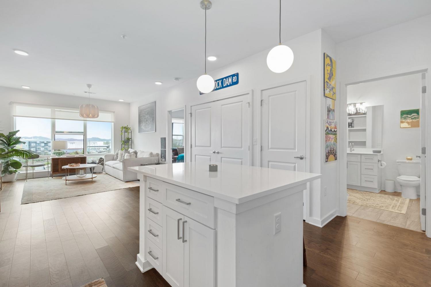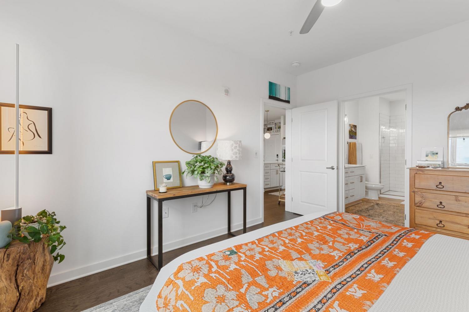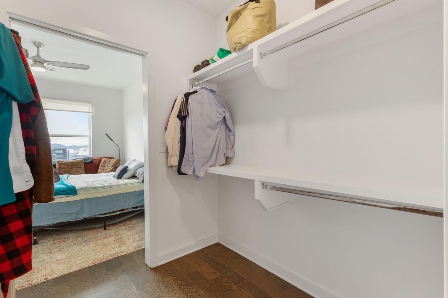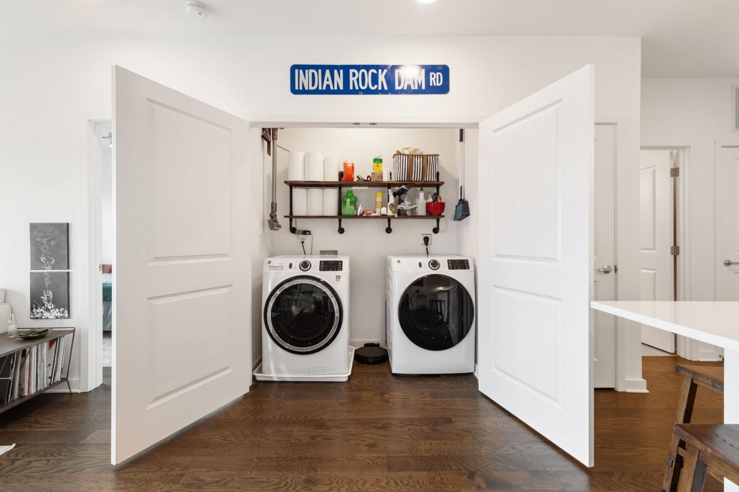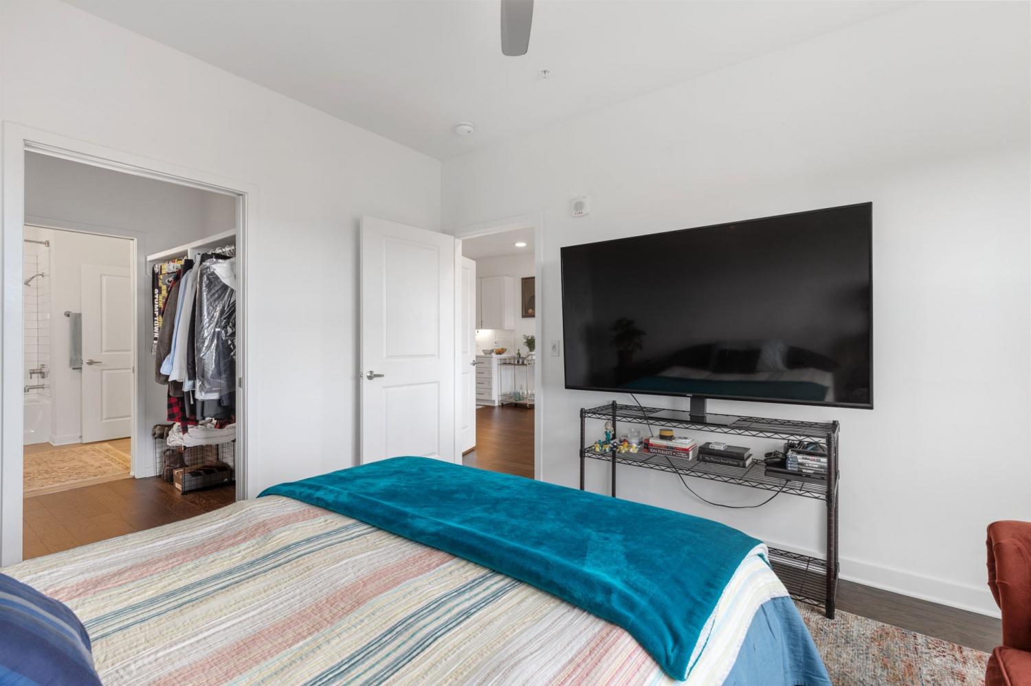Rare top-floor residence in Silo West, offering 2 bedrooms, 2 full baths, and 1,136 sq ft of modern, light-filled living space. This like-new condo blends style and function with soaring ceilings, hardwood floors, and an open-concept layout that connects the living room to a spacious kitchen. The gourmet kitchen boasts stainless steel appliances (including a built-in oven and range), and the in-unit washer/dryer also convey, making it move-in ready. Both bedrooms are spacious, each with its own bath, including a primary suite with a walk-in shower and double vanities. Large windows and the top-floor location provide extra privacy, abundant natural light, and no neighbors above. Located in the heart of The Nations—a fast-growing neighborhood—Silo West offers unmatched convenience. Walk to coffee shops, breweries, and on-site Silo Market, or enjoy amenities including a pool, fitness center, community lounge, and secure package hub. Two assigned parking spaces are included, and nearby developments like Modera Nations and Camden Nashville are adding new dining, retail, and park spaces—bringing even more energy and long-term value to this vibrant community. Perfectly maintained, this condo delivers upscale finishes, a prime location, and turn-key convenience—offering immediate comfort and future growth potential in one of Nashville’s most dynamic neighborhoods. Ideal for first-time buyers and investors alike, this home embodies elevated urban living. Schedule your showing today.