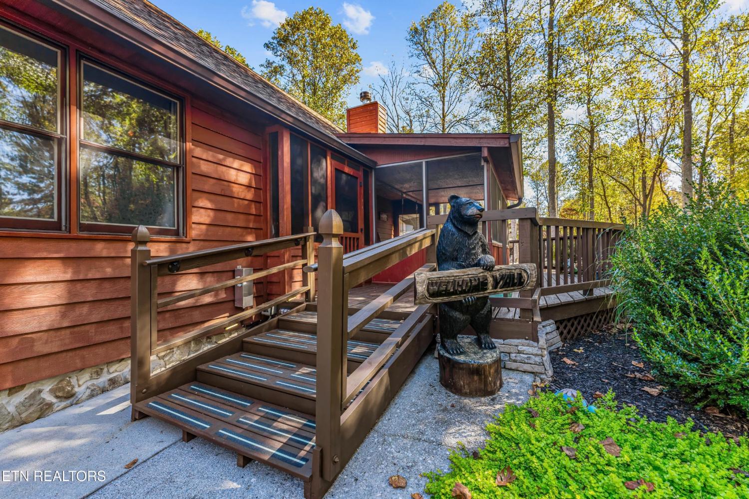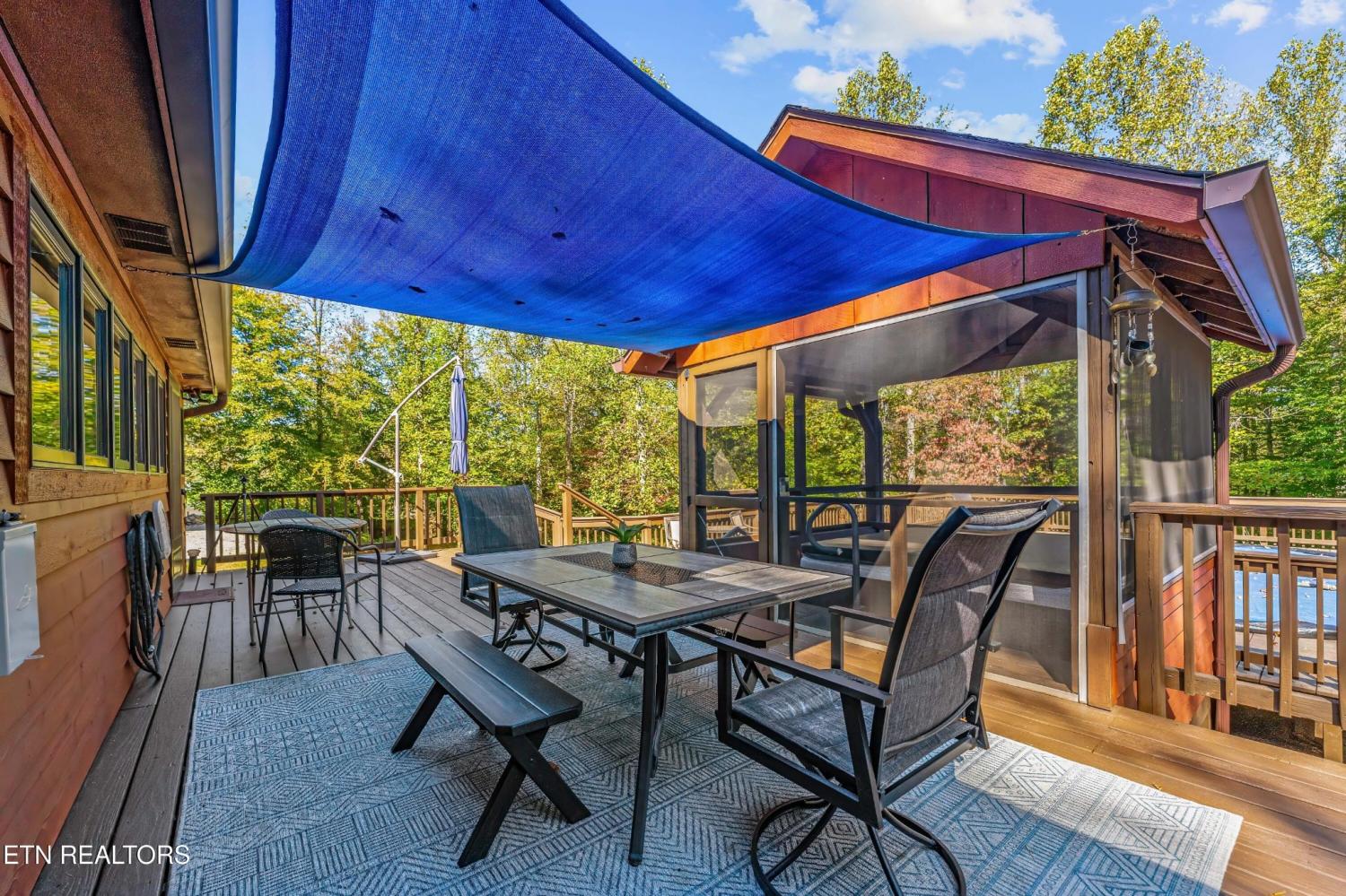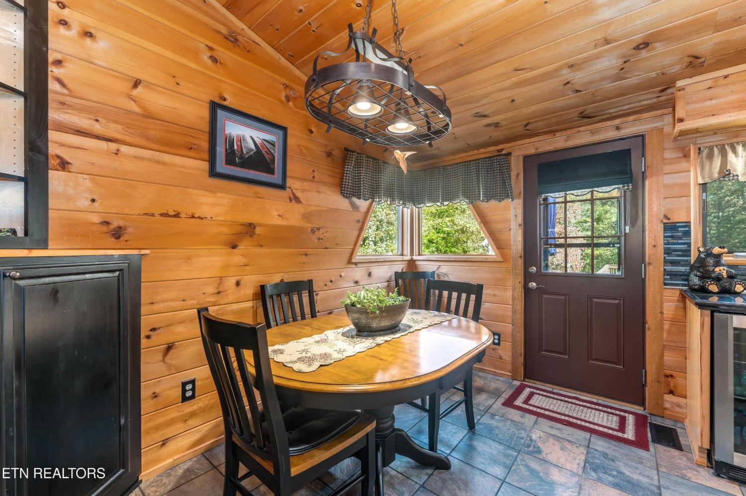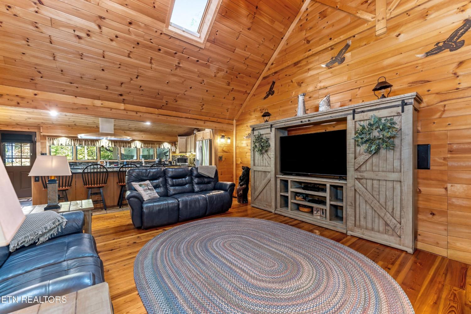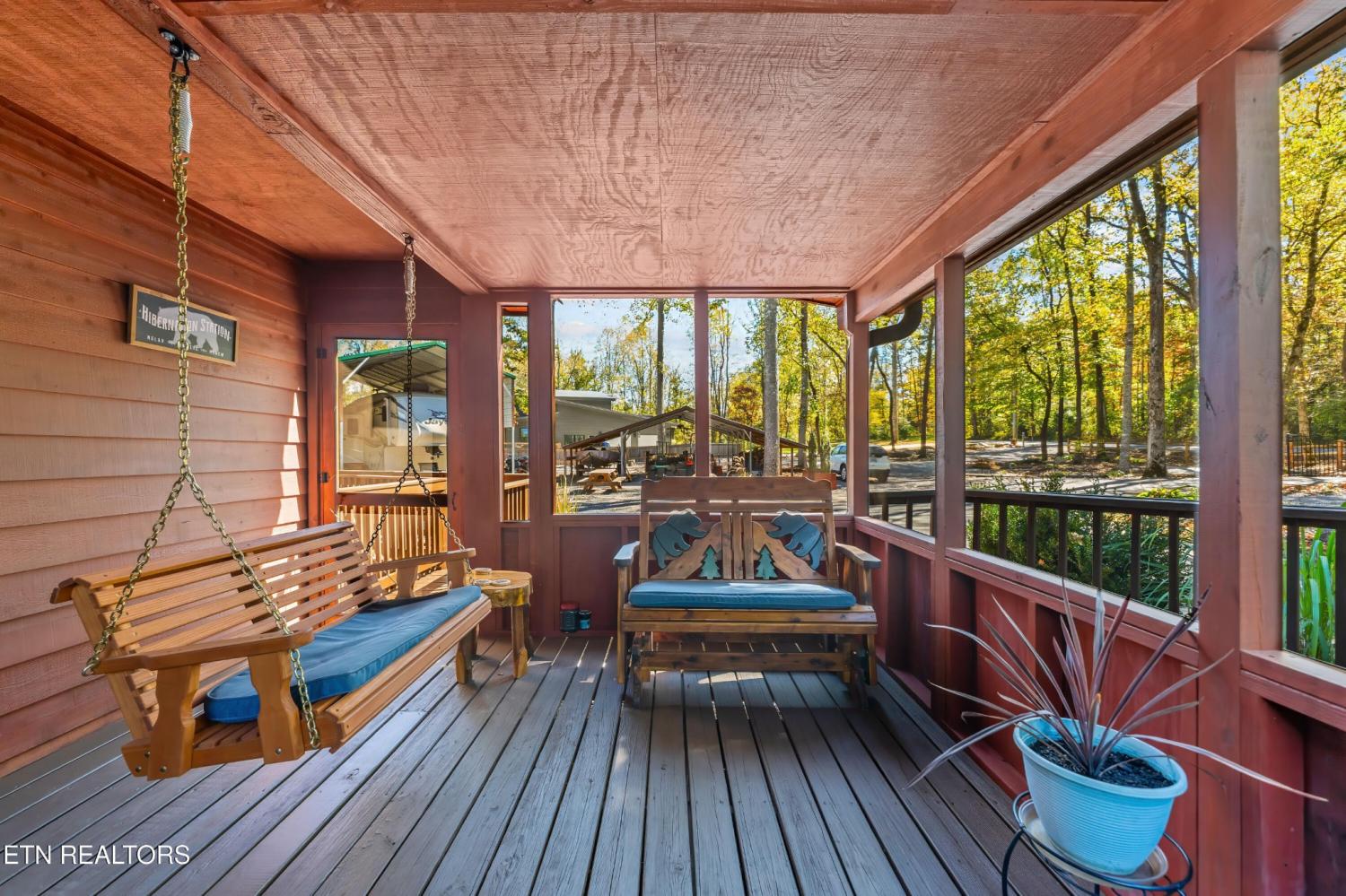 **** Fully furnished, move in ready **** Rental opportunity or full-time residence **** Experience the perfect blend of cozy charm and rustic elegance at the foot of the Great Smoky Mountains National Park, nestled in the peaceful side of Townsend. This rare 5.5-acre property boasts a spacious, level yard and a private covered carport and picnic area, ideal for outdoor gatherings. The detached garage offers four parking bays and includes dedicated office space, providing both convenience and functionality. Inside, you'll find a welcoming great room featuring a stone fireplace, wood ceilings and walls, and surround sound for your entertainment needs. The updated and well-equipped kitchen showcases a large island, stainless appliances, built-in wine cooler, and a coffee station set against stylish black ceramic tile and glass backsplash. Additional highlights include a spacious laundry room with ample storage, skylights that flood the space with natural light, and freshly updated interior. Step outside onto the huge deck and pool area, perfect for enjoying mountain views and outdoor living. The level yard provides plenty of room for outdoor activities or additional structures. Conveniently located near shopping, dining, schools, and the mountains, this property offers a peaceful retreat with easy access to all the area has to offer. Your idyllic mountain home awaits!
