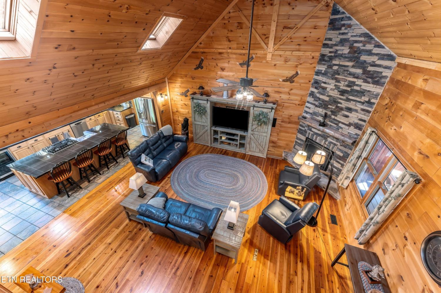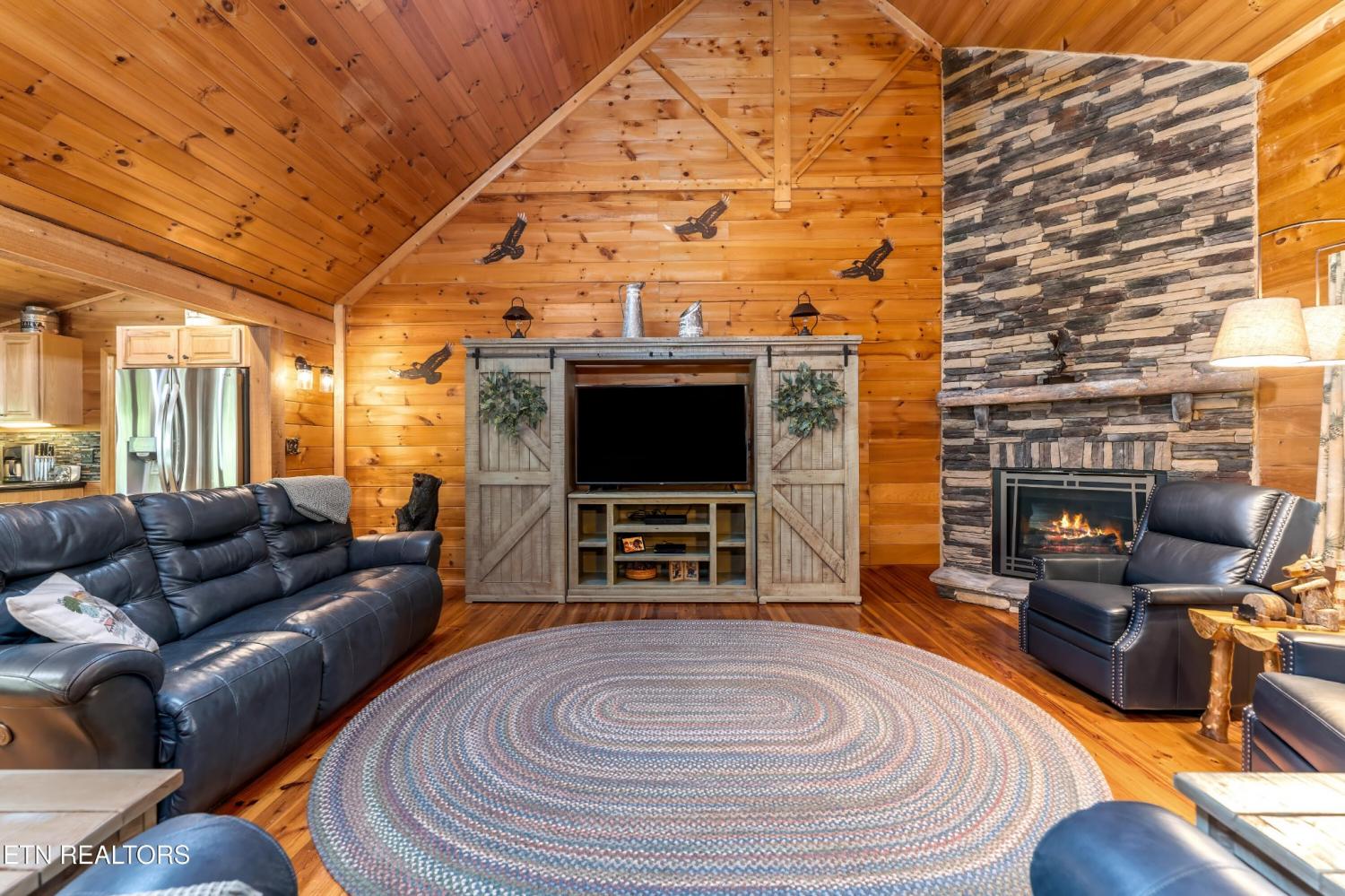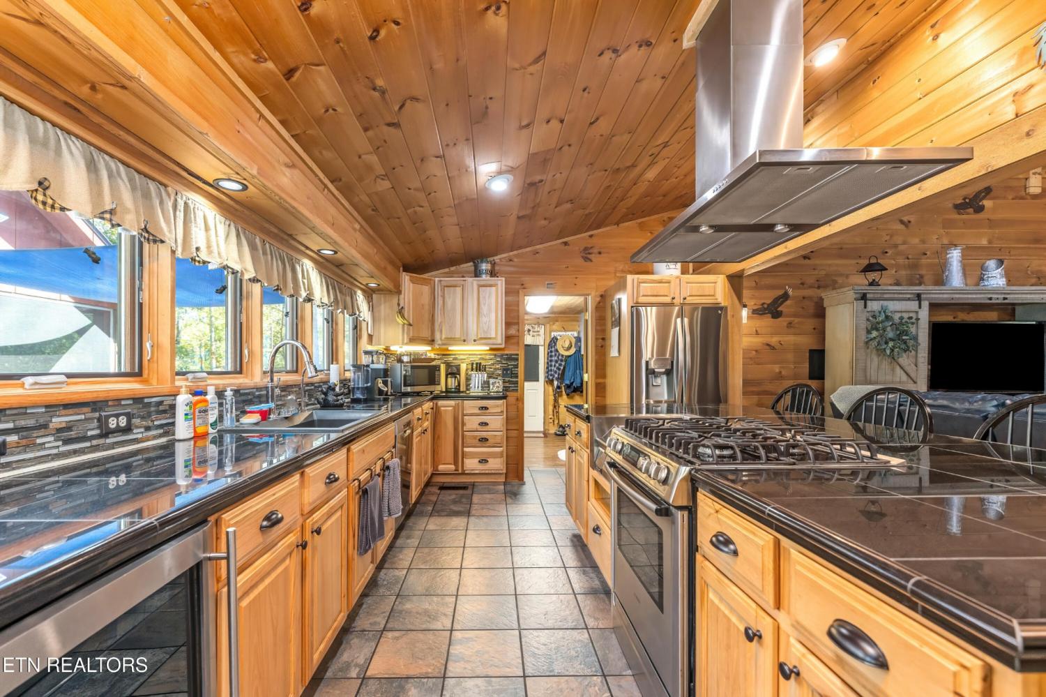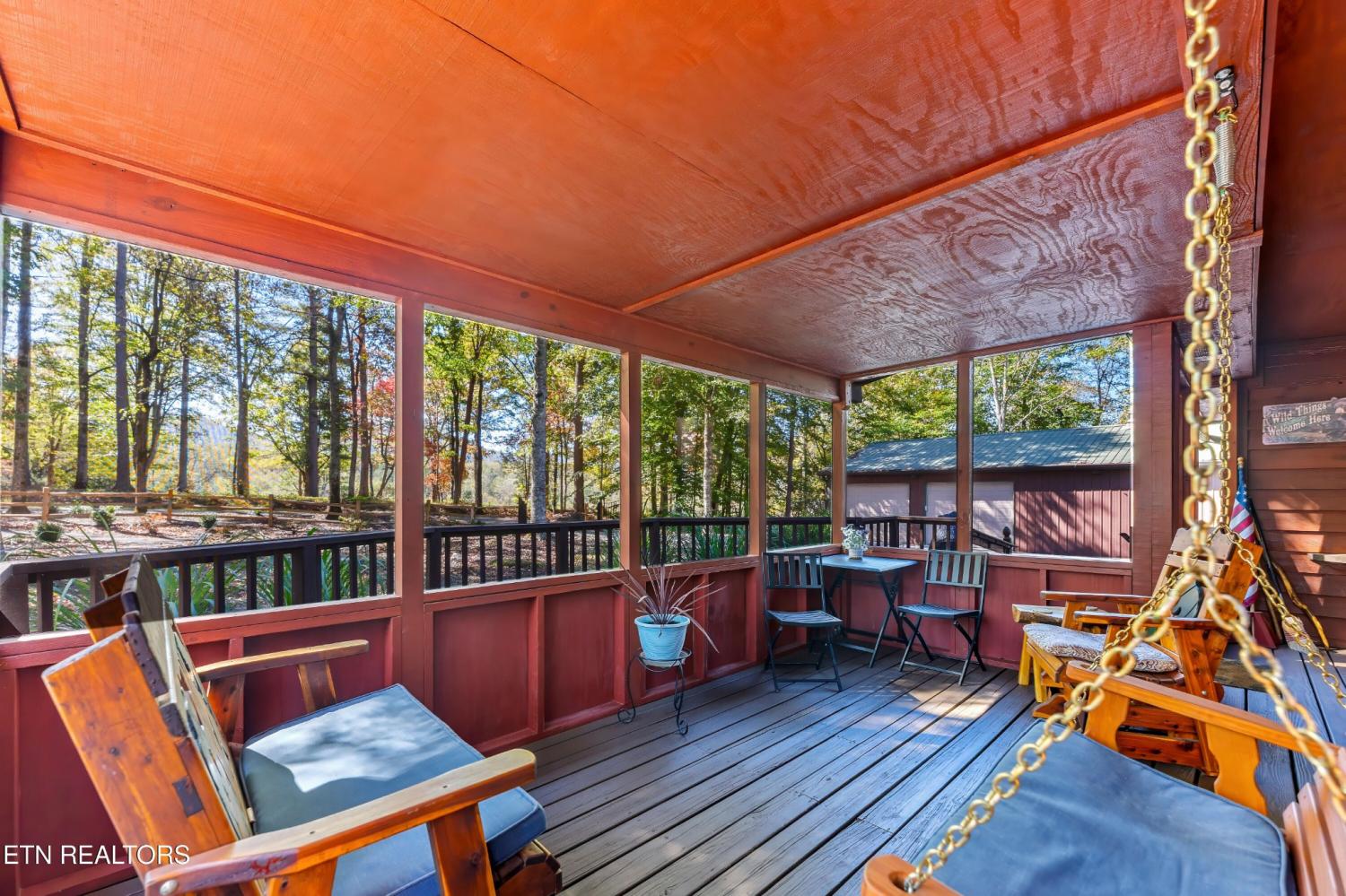 **** Fully furnished, move in ready **** Rental opportunity or full-time residence **** Experience the perfect blend of cozy charm and rustic elegance at the foot of the Great Smoky Mountains National Park, nestled in the peaceful side of Townsend. This rare 5.5-acre property boasts a spacious, level yard and a private covered carport and picnic area, ideal for outdoor gatherings. The detached garage offers four parking bays and includes dedicated office space, providing both convenience and functionality. Inside, you'll find a welcoming great room featuring a stone fireplace, wood ceilings and walls, and surround sound for your entertainment needs. The updated and well-equipped kitchen showcases a large island, stainless appliances, built-in wine cooler, and a coffee station set against stylish black ceramic tile and glass backsplash. Additional highlights include a spacious laundry room with ample storage, skylights that flood the space with natural light, and freshly updated interior. Step outside onto the huge deck and pool area, perfect for enjoying mountain views and outdoor living. The level yard provides plenty of room for outdoor activities or additional structures. Conveniently located near shopping, dining, schools, and the mountains, this property offers a peaceful retreat with easy access to all the area has to offer. Your idyllic mountain home awaits!