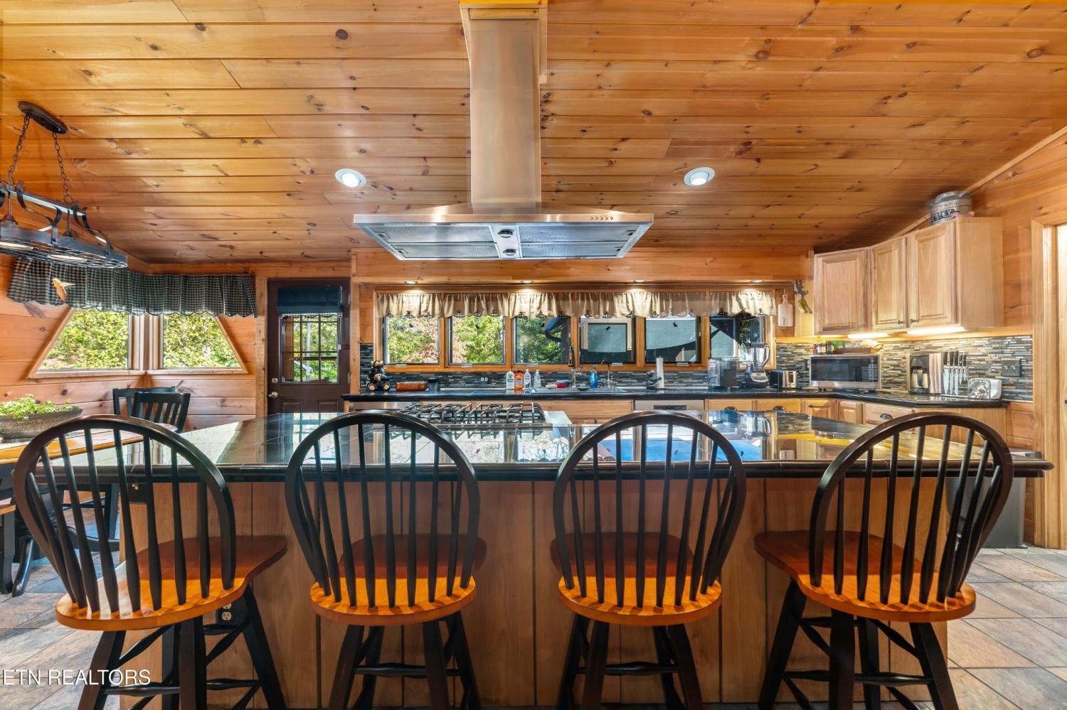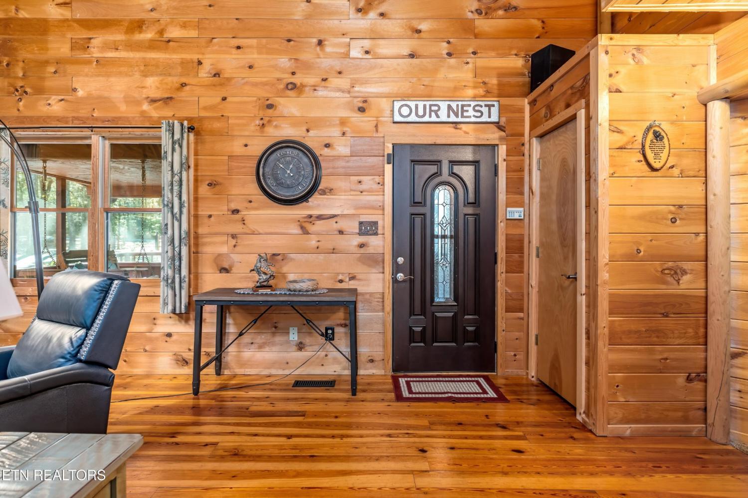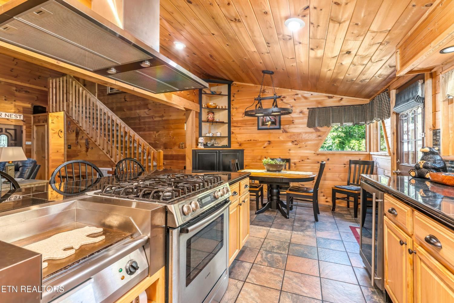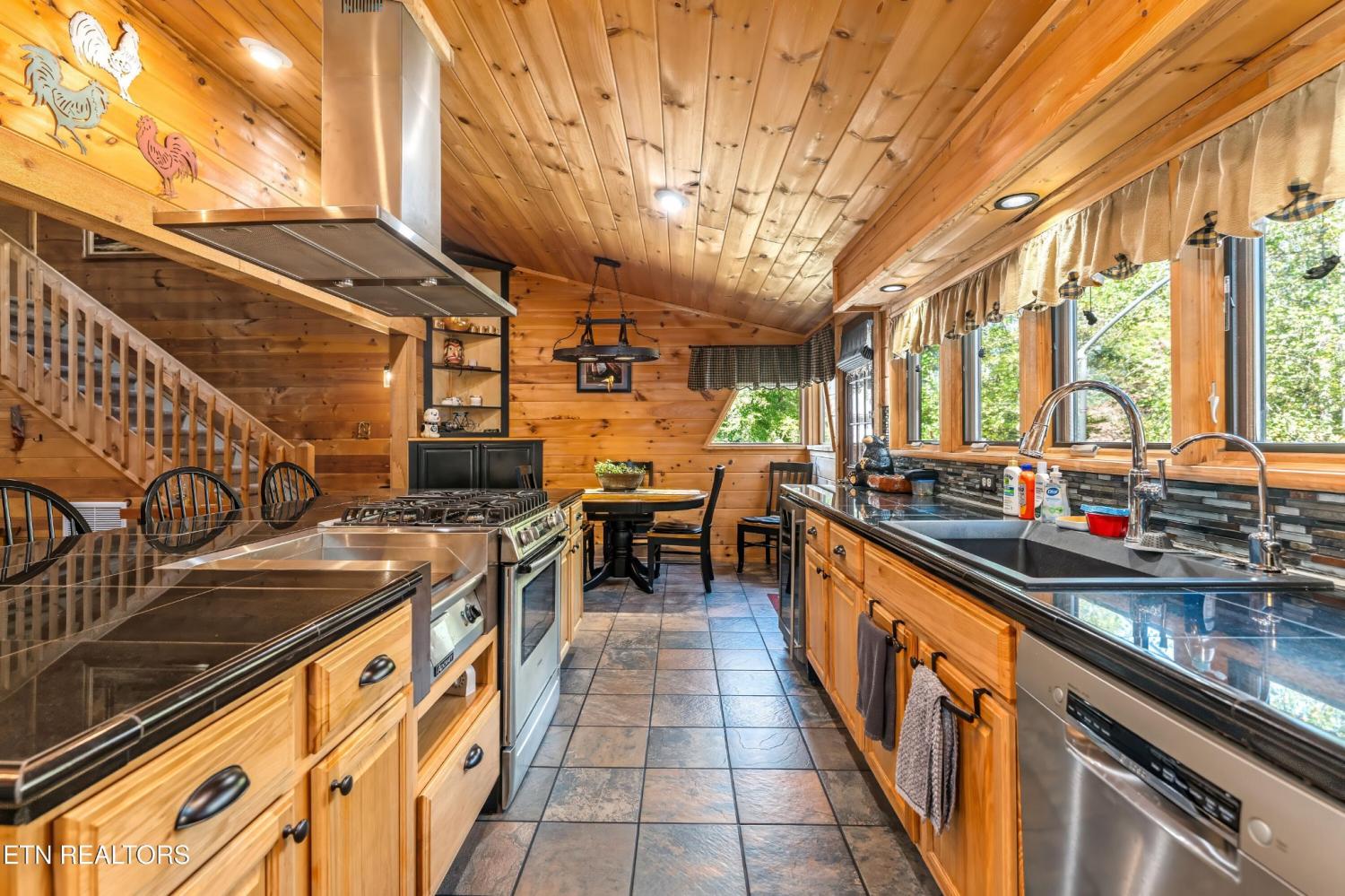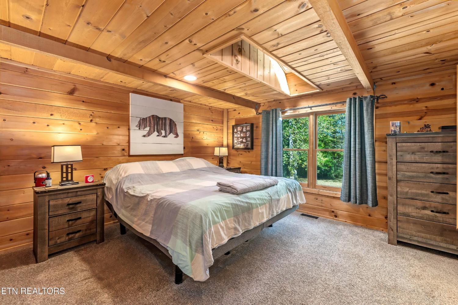 **** Fully furnished, move in ready **** Rental opportunity or full-time residence **** Experience the perfect blend of cozy charm and rustic elegance at the foot of the Great Smoky Mountains National Park, nestled in the peaceful side of Townsend. This rare 5.5-acre property boasts a spacious, level yard and a private covered carport and picnic area, ideal for outdoor gatherings. The detached garage offers four parking bays and includes dedicated office space, providing both convenience and functionality. Inside, you'll find a welcoming great room featuring a stone fireplace, wood ceilings and walls, and surround sound for your entertainment needs. The updated and well-equipped kitchen showcases a large island, stainless appliances, built-in wine cooler, and a coffee station set against stylish black ceramic tile and glass backsplash. Additional highlights include a spacious laundry room with ample storage, skylights that flood the space with natural light, and freshly updated interior. Step outside onto the huge deck and pool area, perfect for enjoying mountain views and outdoor living. The level yard provides plenty of room for outdoor activities or additional structures. Conveniently located near shopping, dining, schools, and the mountains, this property offers a peaceful retreat with easy access to all the area has to offer. Your idyllic mountain home awaits!