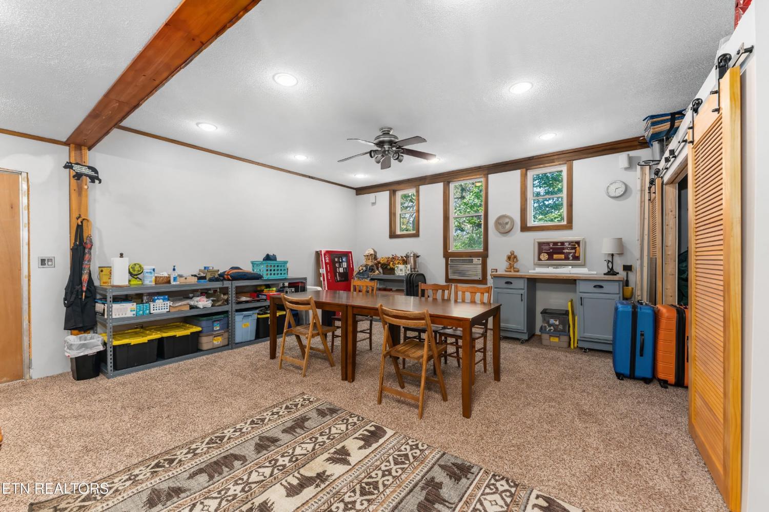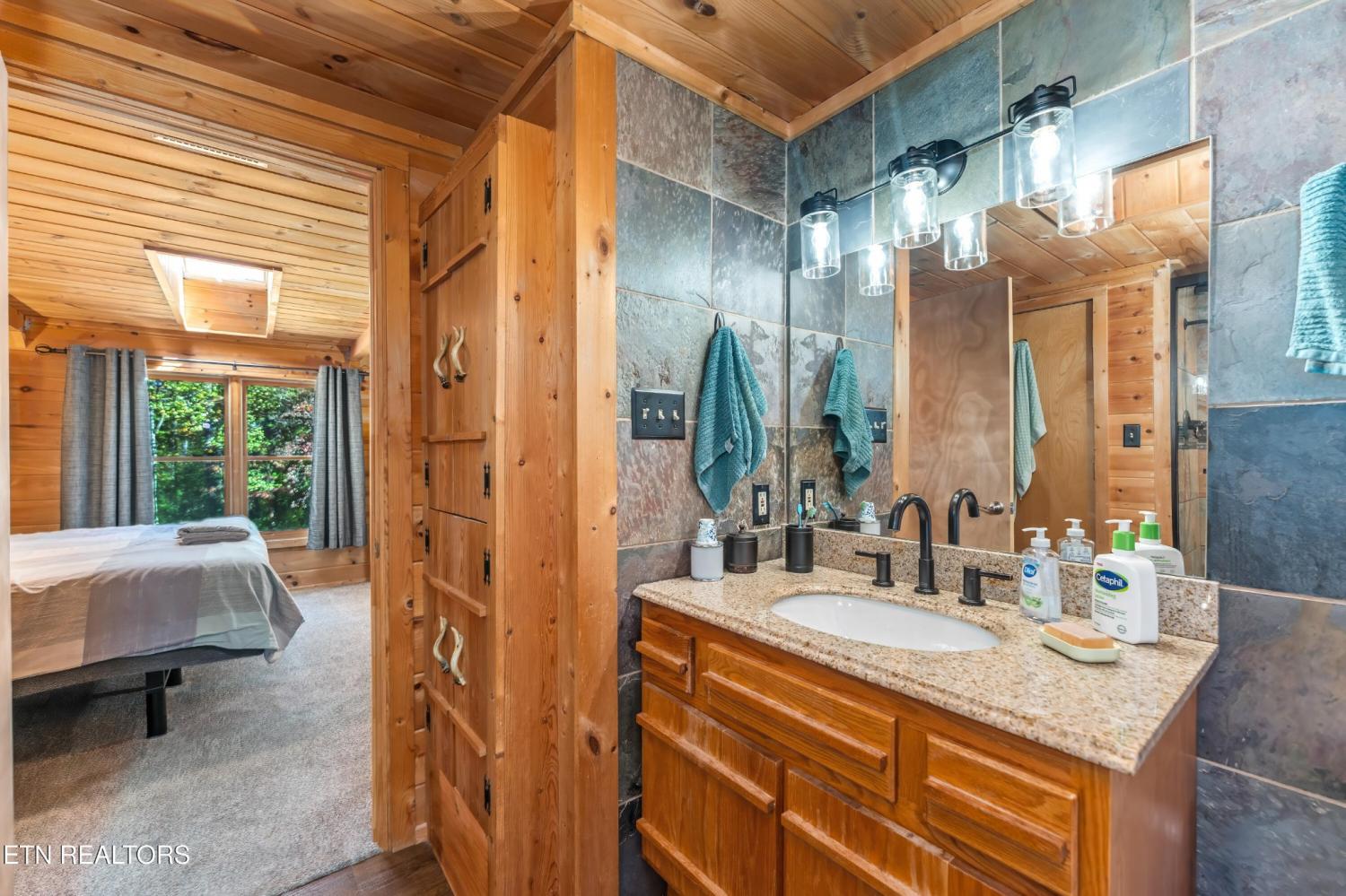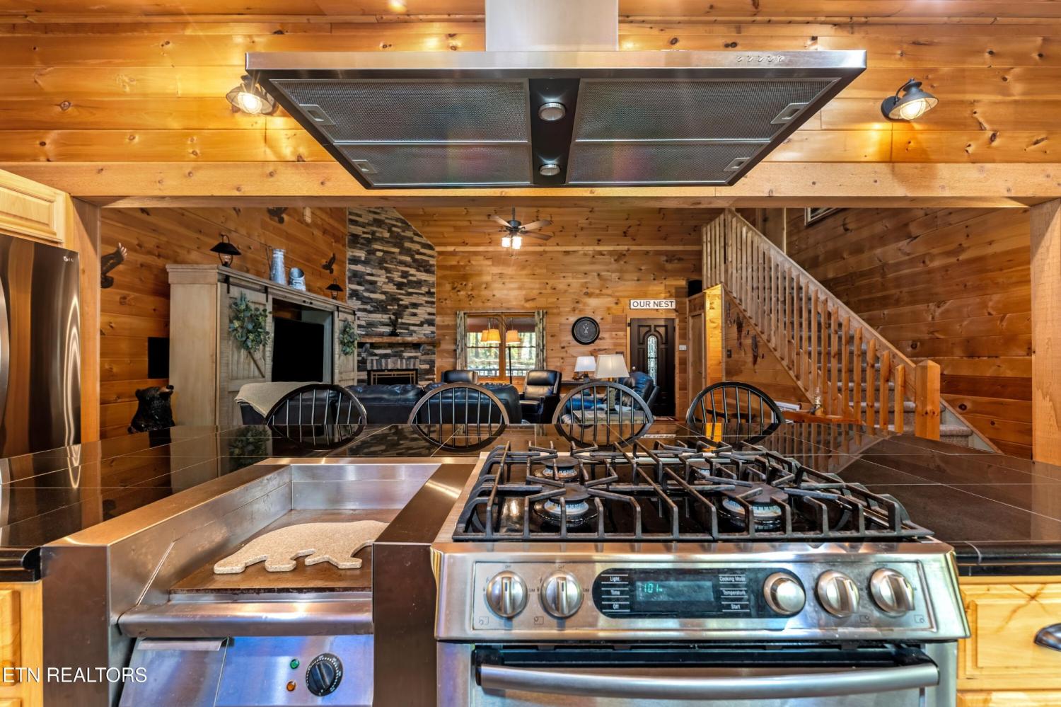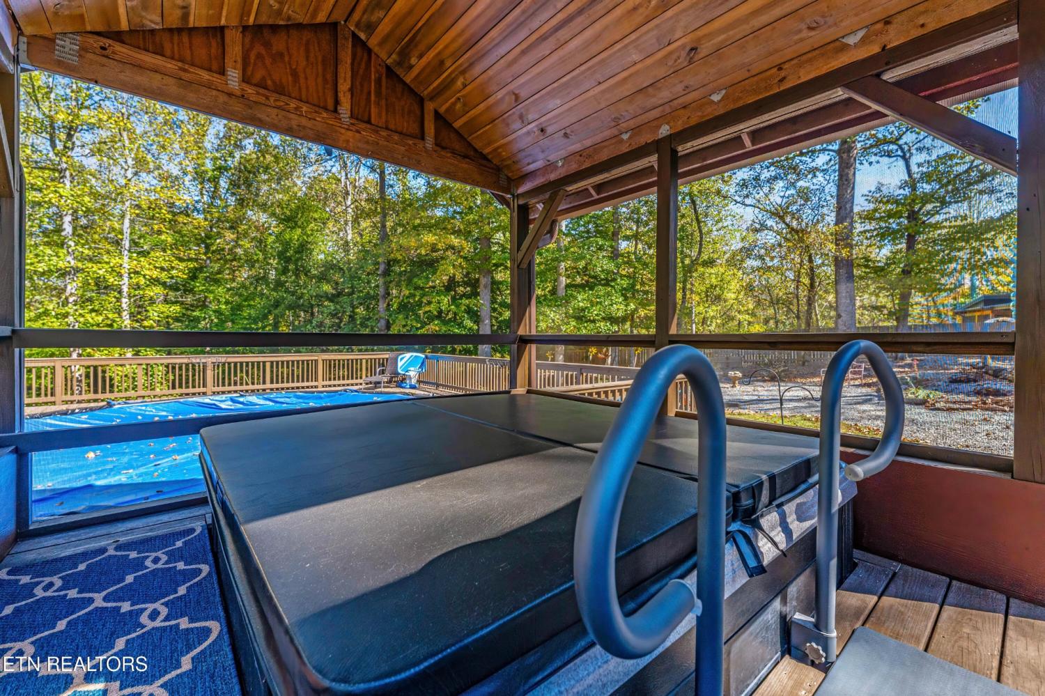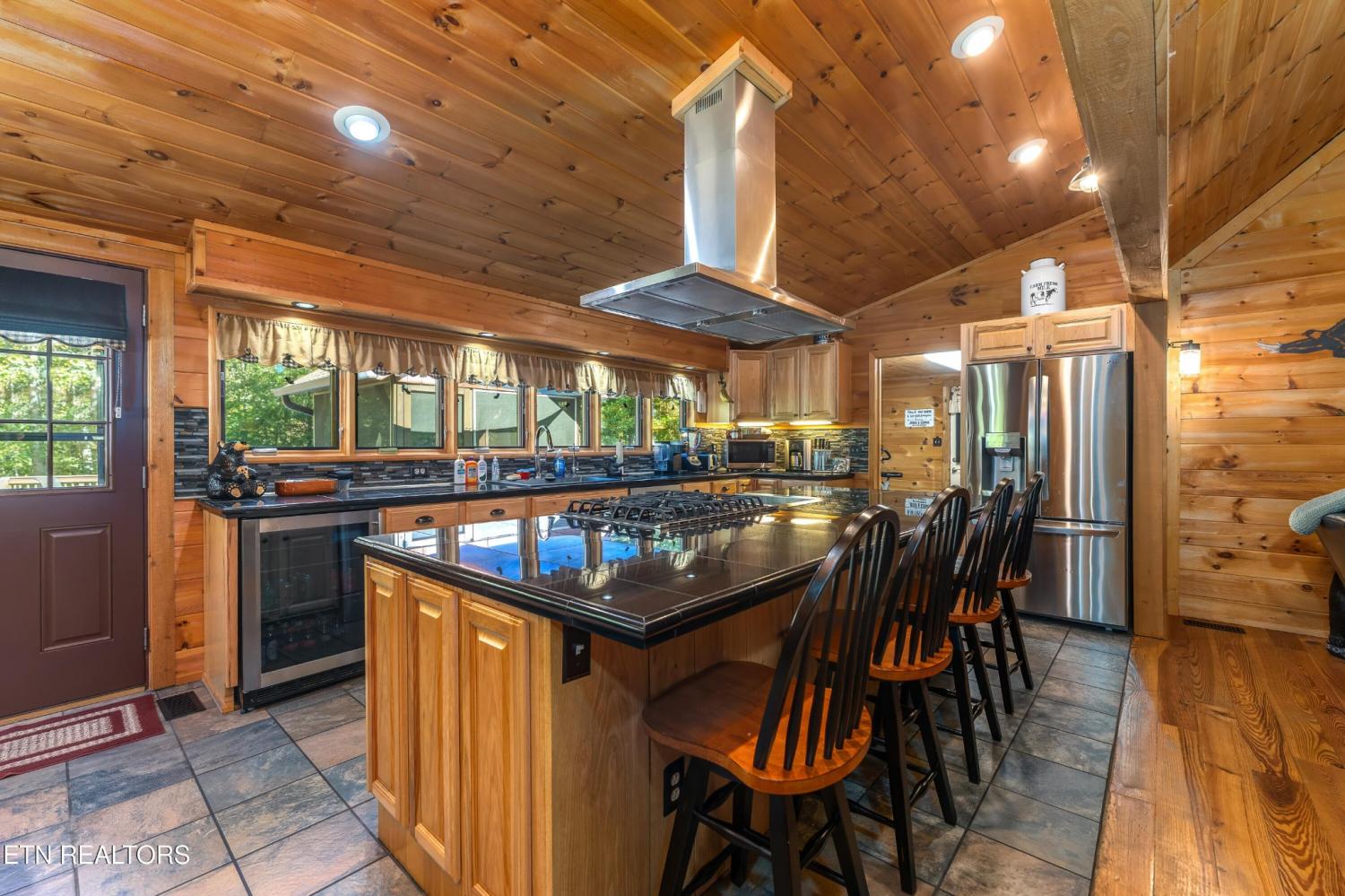**** Fully furnished, move in ready **** Rental opportunity or full-time residence **** Experience the perfect blend of cozy charm and rustic elegance at the foot of the Great Smoky Mountains National Park, nestled in the peaceful side of Townsend. This rare 5.5-acre property boasts a spacious, level yard and a private covered carport and picnic area, ideal for outdoor gatherings. The detached garage offers four parking bays and includes dedicated office space, providing both convenience and functionality. Inside, you'll find a welcoming great room featuring a stone fireplace, wood ceilings and walls, and surround sound for your entertainment needs. The updated and well-equipped kitchen showcases a large island, stainless appliances, built-in wine cooler, and a coffee station set against stylish black ceramic tile and glass backsplash. Additional highlights include a spacious laundry room with ample storage, skylights that flood the space with natural light, and freshly updated interior. Step outside onto the huge deck and pool area, perfect for enjoying mountain views and outdoor living. The level yard provides plenty of room for outdoor activities or additional structures. Conveniently located near shopping, dining, schools, and the mountains, this property offers a peaceful retreat with easy access to all the area has to offer. Your idyllic mountain home awaits!