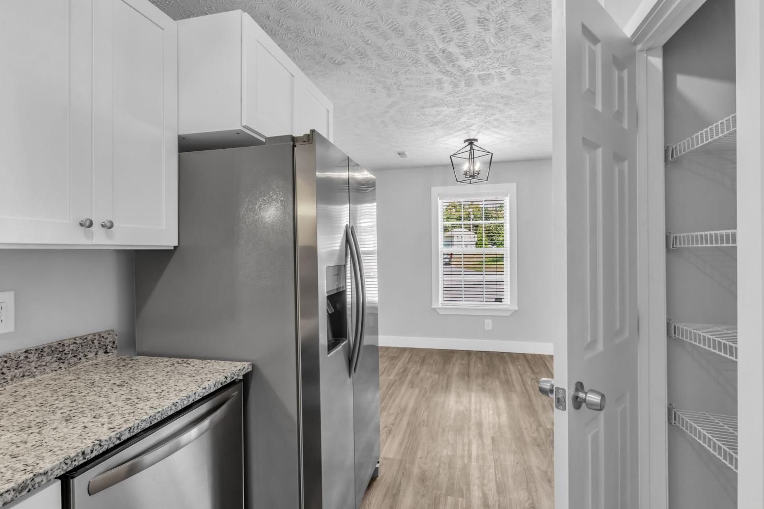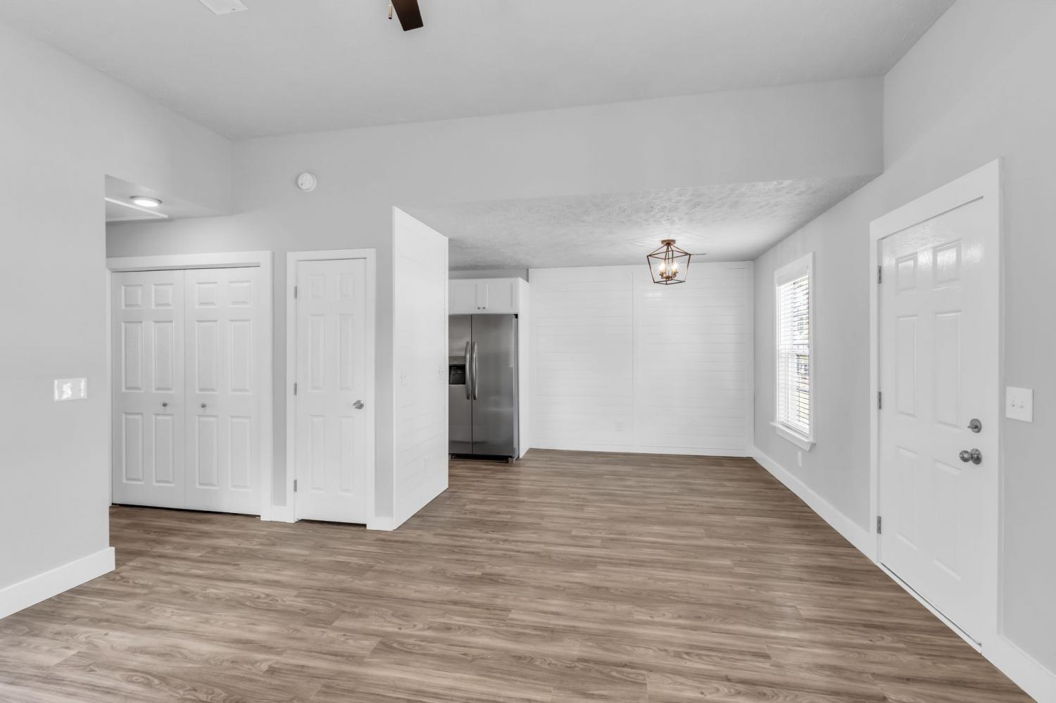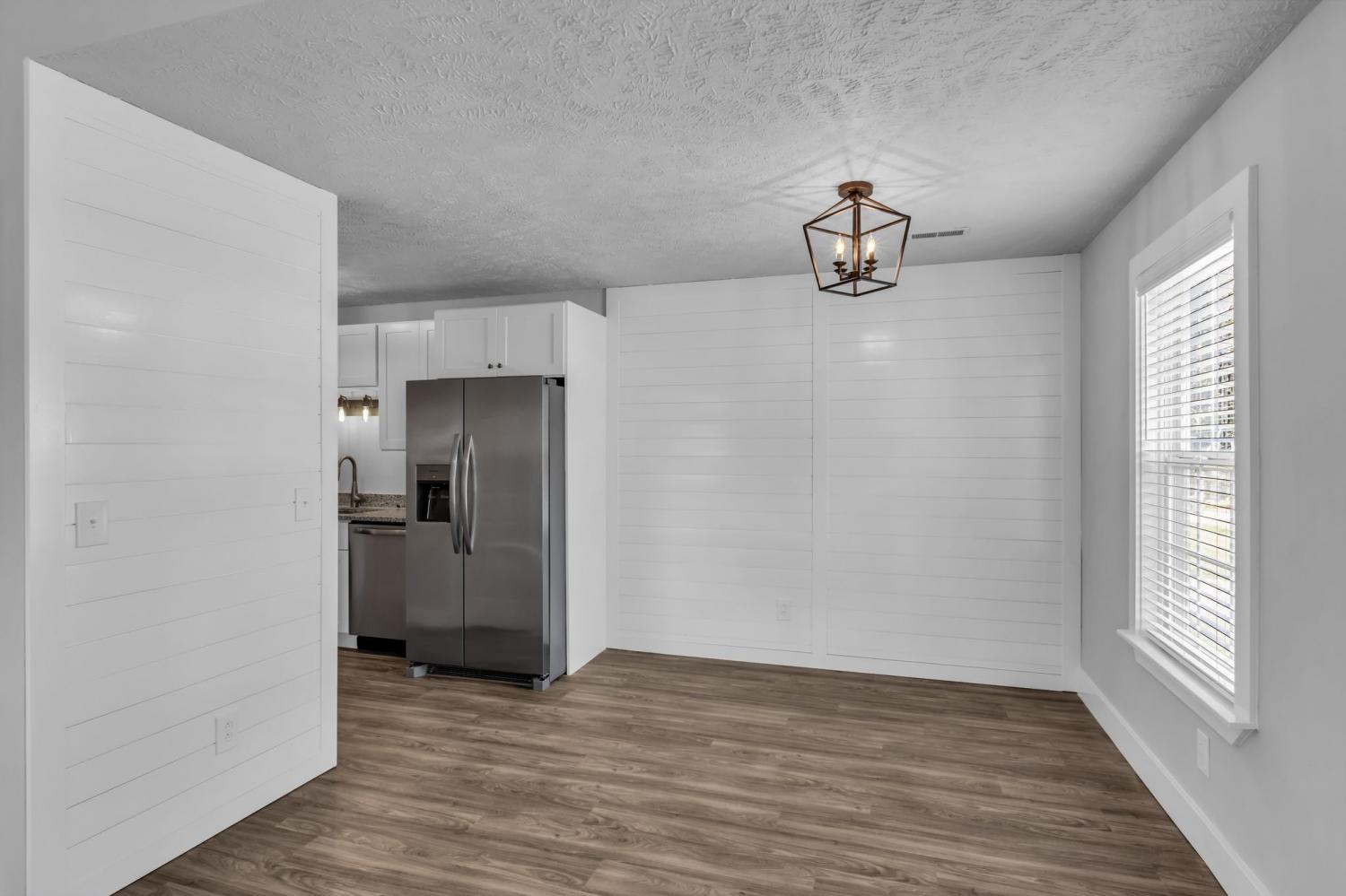 This is an Updated Two-Bedroom, One-Bath Home. 2025 updates include the roof, water heater, LVP flooring, kitchen and bathroom cabinets, granite countertops in the kitchen, stainless steel kitchen appliances, all interior trim work and interior doors, light fixtures, blinds, fresh paint, and a shiplap wall in the dining area.