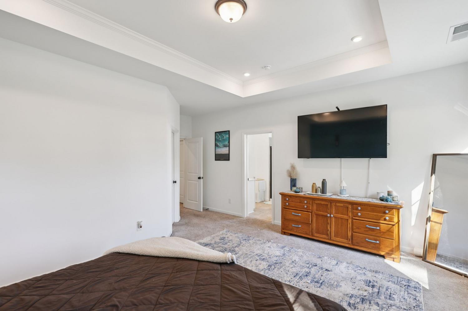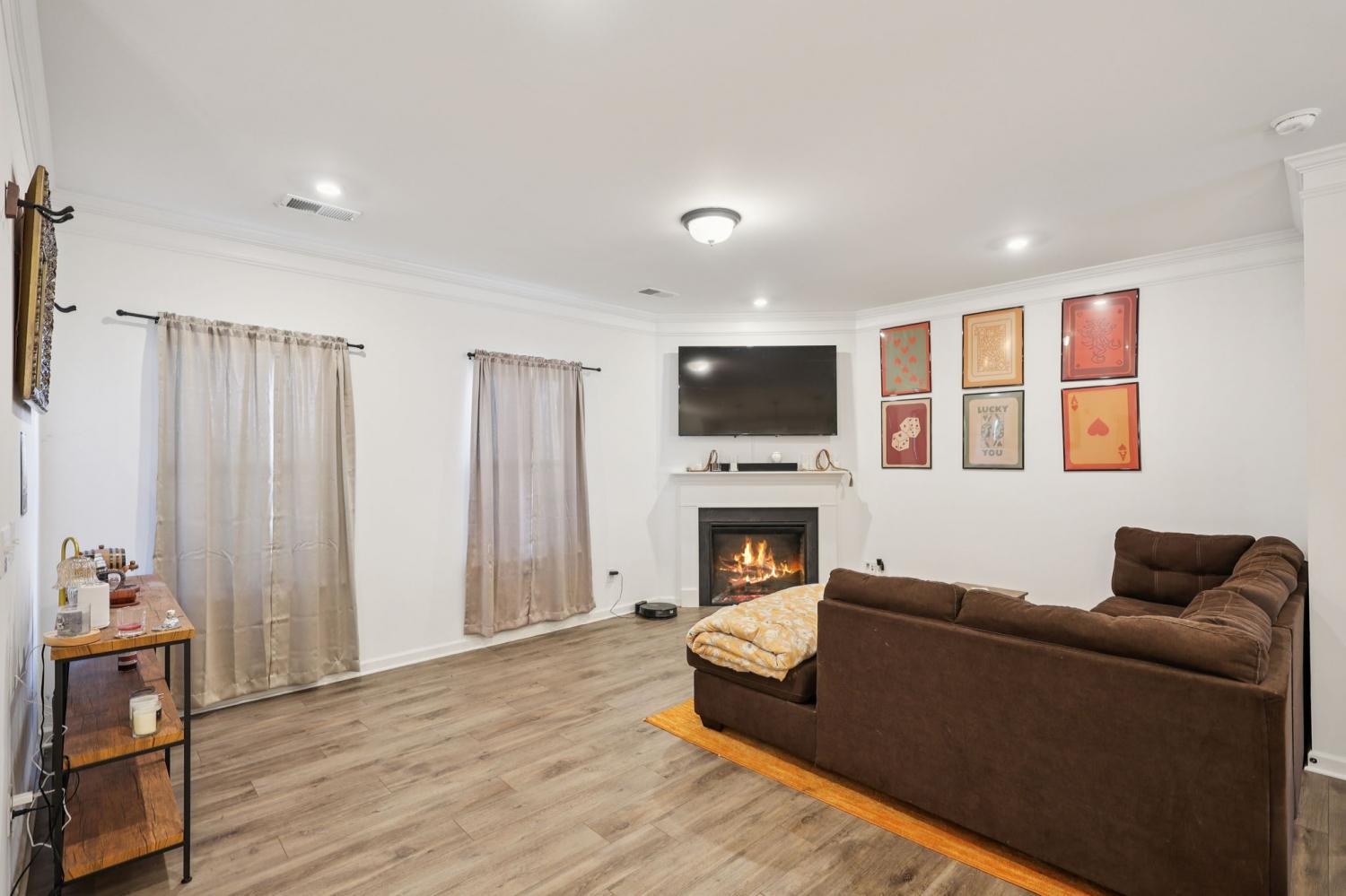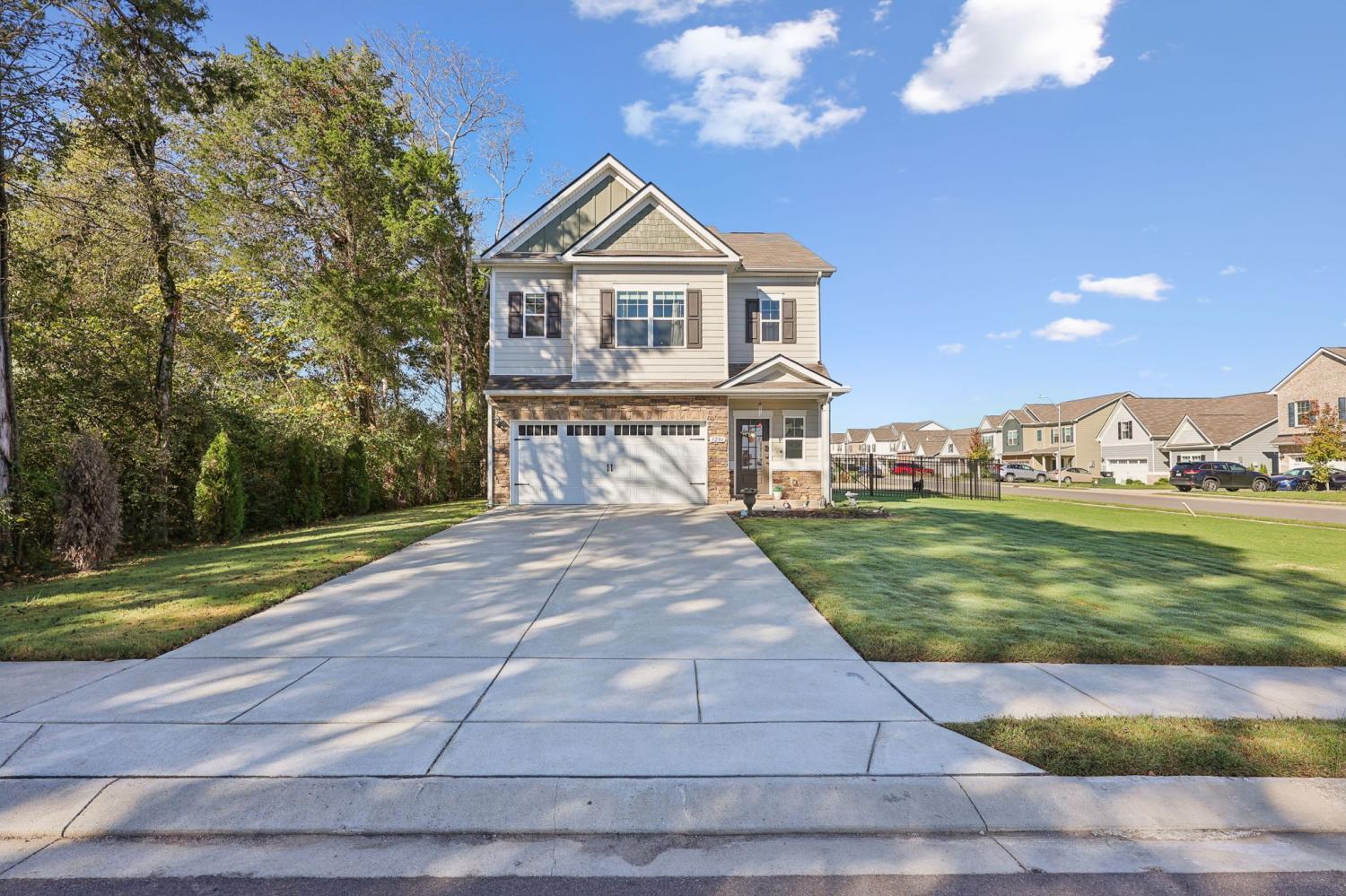 Welcome to this stunning 3-bedroom, 2.5-bath home built in 2022, perfectly combining modern design with everyday comfort, conveniently located on a corner lot. Step inside to find a bright, open floor plan featuring a spacious living area with a cozy fireplace ideal for relaxing or entertaining. The kitchen boasts sleek countertops, stainless steel appliances, and a large island with seating, making it the true heart of the home. Upstairs, you’ll find a second family room offering flexible space for a playroom, home office, or media area. The primary suite is a private retreat with elegant tray ceilings, dual vanities, and a walk-in shower. Enjoy your mornings or evenings in the fenced backyard, providing both privacy and room to play. With a large two-car garage, quiet neighborhood setting, and move-in-ready condition, this home has everything you’ve been looking for. Don’t miss your chance to make this beautiful property yours!