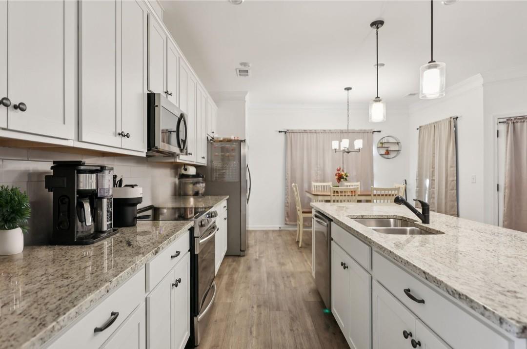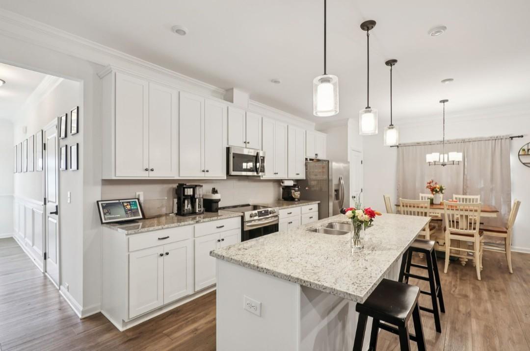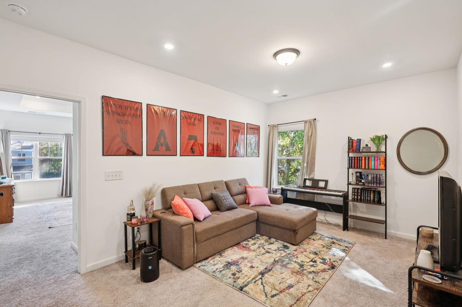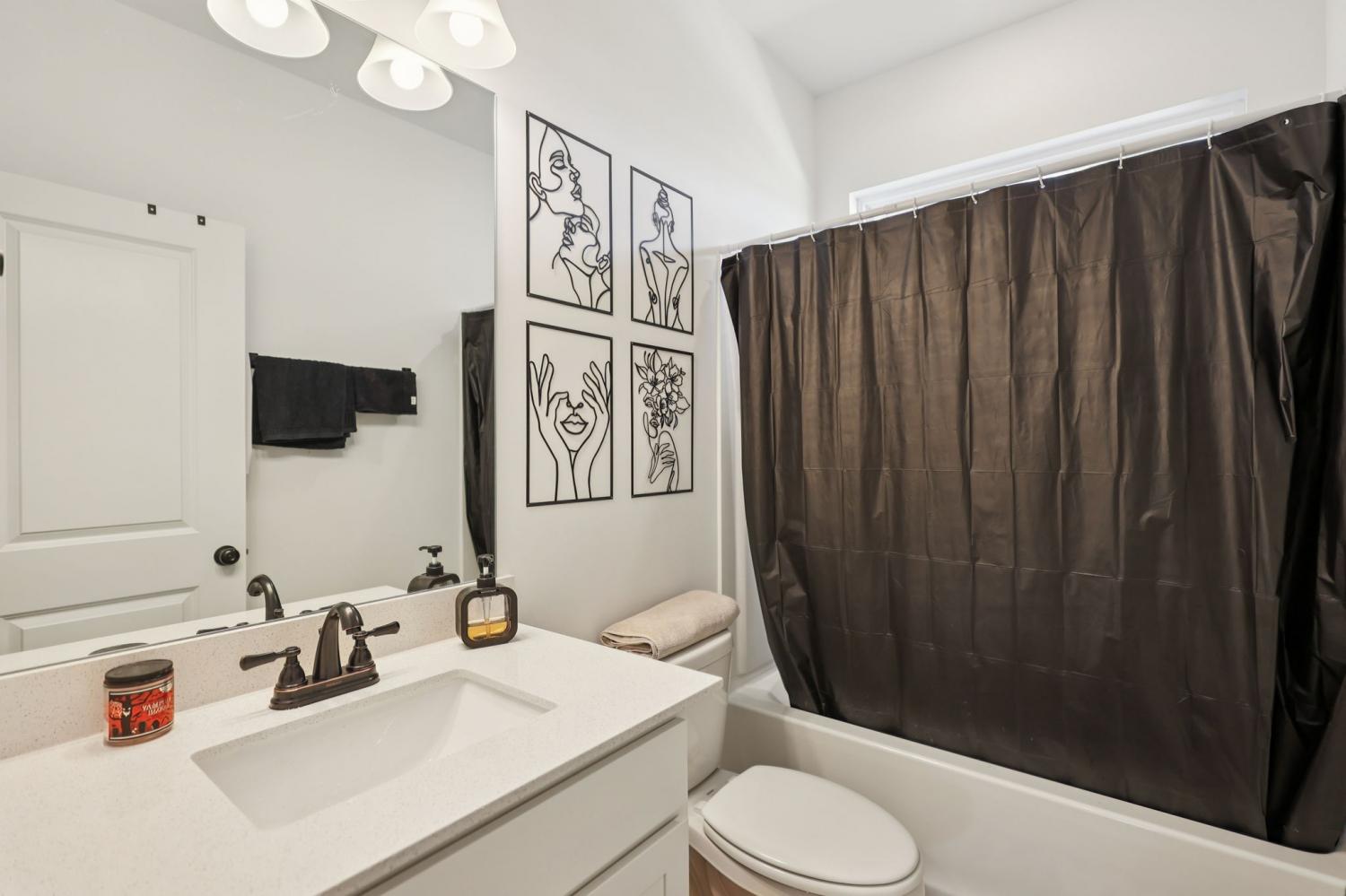 Welcome to this stunning 3-bedroom, 2.5-bath home built in 2022, perfectly combining modern design with everyday comfort, conveniently located on a corner lot. Step inside to find a bright, open floor plan featuring a spacious living area with a cozy fireplace ideal for relaxing or entertaining. The kitchen boasts sleek countertops, stainless steel appliances, and a large island with seating, making it the true heart of the home. Upstairs, you’ll find a second family room offering flexible space for a playroom, home office, or media area. The primary suite is a private retreat with elegant tray ceilings, dual vanities, and a walk-in shower. Enjoy your mornings or evenings in the fenced backyard, providing both privacy and room to play. With a large two-car garage, quiet neighborhood setting, and move-in-ready condition, this home has everything you’ve been looking for. Don’t miss your chance to make this beautiful property yours!