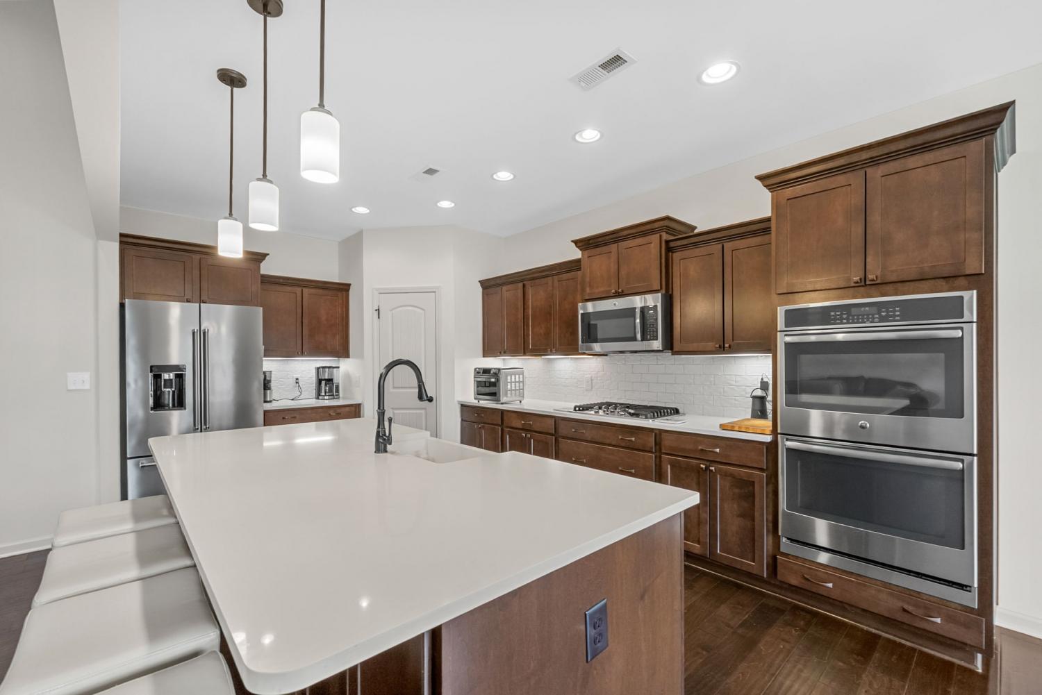 You have found it: single-level luxury living AND a three car garage. The only home in the neighborhood to offer such higher-end finishes as well as AMPLE space in your three-car-side-loaded garage. This all brick home has a kitchen that would make Martha-Stewart jealous. Your primary bedroom has two walk-in closets, a massive whirlpool jet tub, and a tiled-out shower with a bench. What about engineered hardwood floors in the common areas with a gas fireplace to show off, to go with plush, soft carpet in all the bedrooms, stairs, and bonus room. That's right! You have a bonus room that has an attached half bathroom, perfect for an extra entertaining space, hide-away from the rest of the house, or more storage. Enjoy cool evenings on your covered back patio space, overlooking your corner lot that is completely maintained by the HOA, to include landscaping AND mowing your yard. Then take a private walk down the access road to your Community Center and Pool, all included!