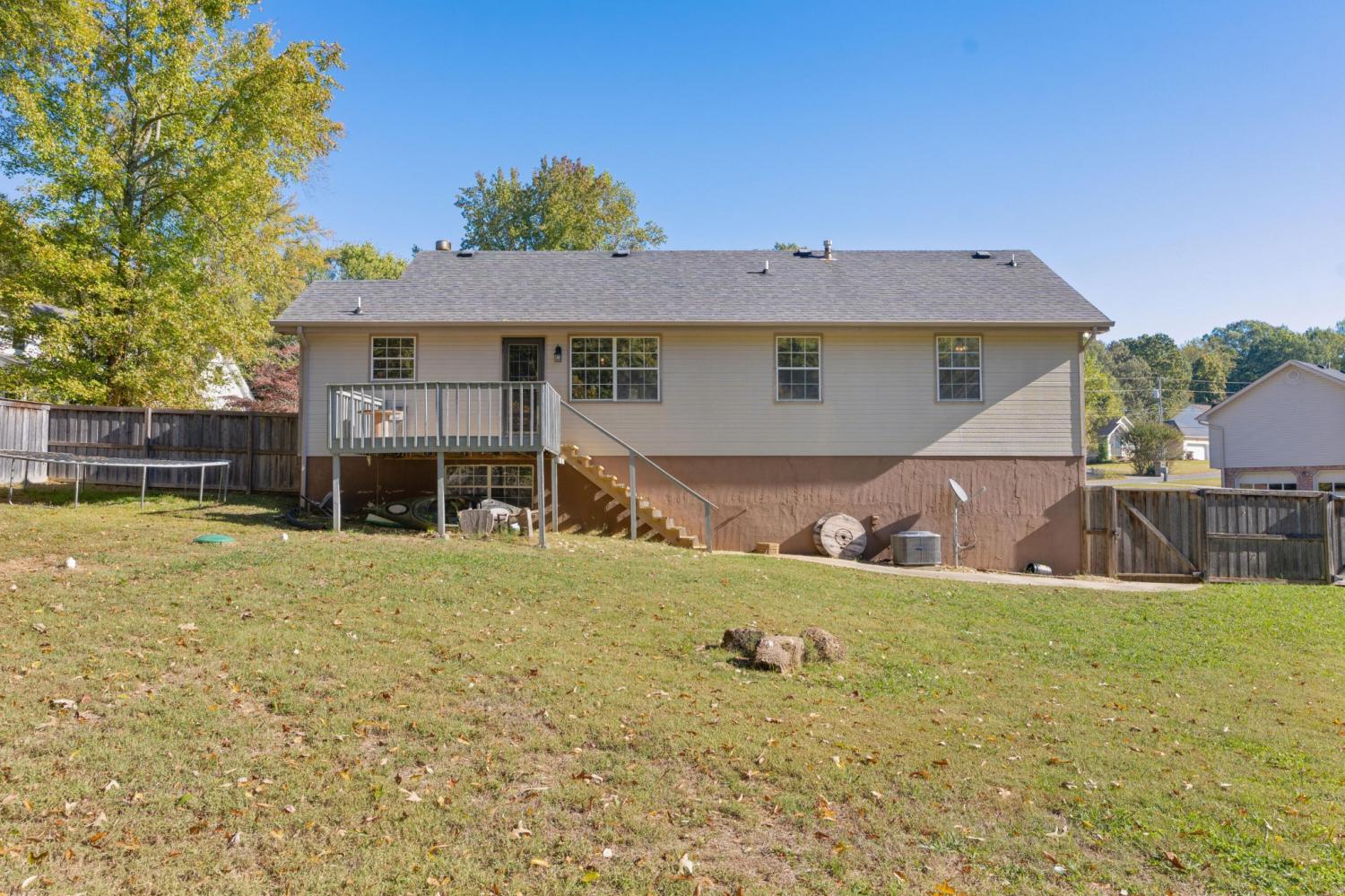 Looking for a one level home over a daylight basement on a great lot in the heart of Ringgold, then look no further! This 3 bedroom, 2 bath home with an oversized 2 bay garage is positioned on a .62+/- acre cul-de-sac lot in the established xxx neighborhood within 20 minutes of downtown Chattanooga and the Hamilton Place area. Your tour of the home begins with entry from the covered front porch to the living room which has engineered hardwood floors, a fireplace with an enlarged doorway to the open kitchen and dining room. The kitchen is sunny and spacious and has plentiful cabinetry and counter space, including a level dining bar for meals on the go or visiting with the home chef. It also has access to the rear deck with steps down to the large, fenced back yard which is great for indoor-to-outdoor entertaining and your furry friends. The primary bedroom has a vaulted ceiling, a walk-in closet, and a private bath with a dual vanity and a tub/shower combo. Two additional bedrooms share the use of the hall guest bath. The lower level is perfect for a family or rec room and has a closet, as well as access to the garage. The garage has a built-in workbench and a separate man-door to the driveway for easy ingress and egress. Whether you are looking for a primary residence or an investment property in a convenient North GA location, then this could be the property you have been seeking, so please call for more information and to schedule your private showing today. Information is deemed reliable but not guaranteed. Buyer to verify any and all information they deem important.