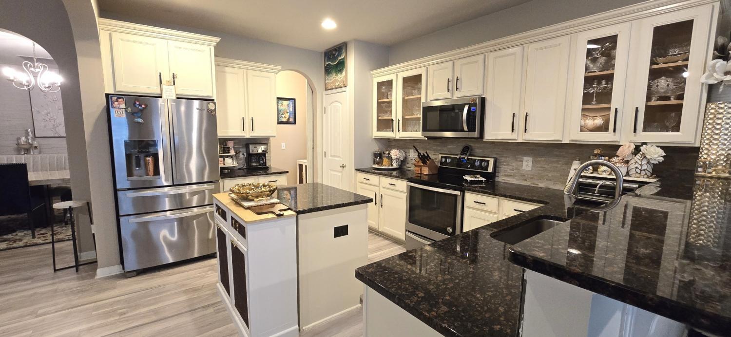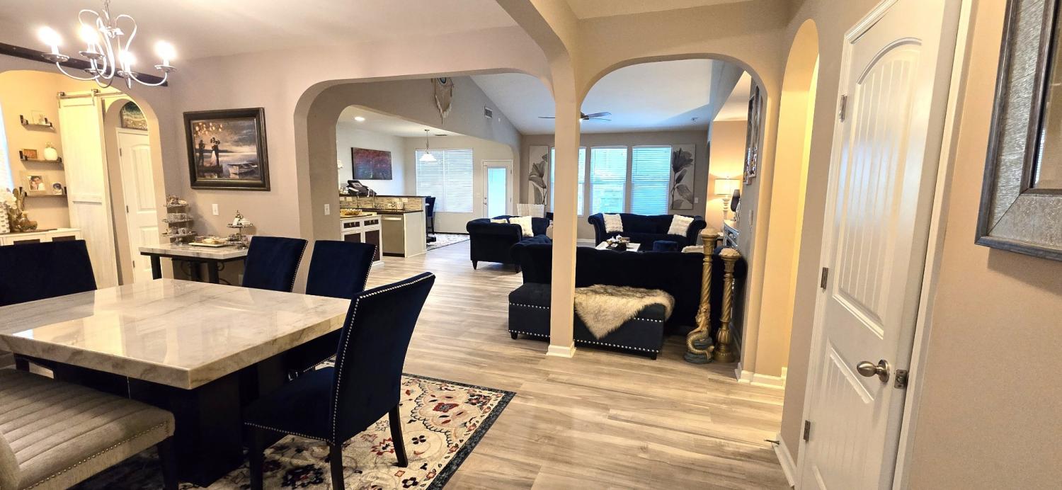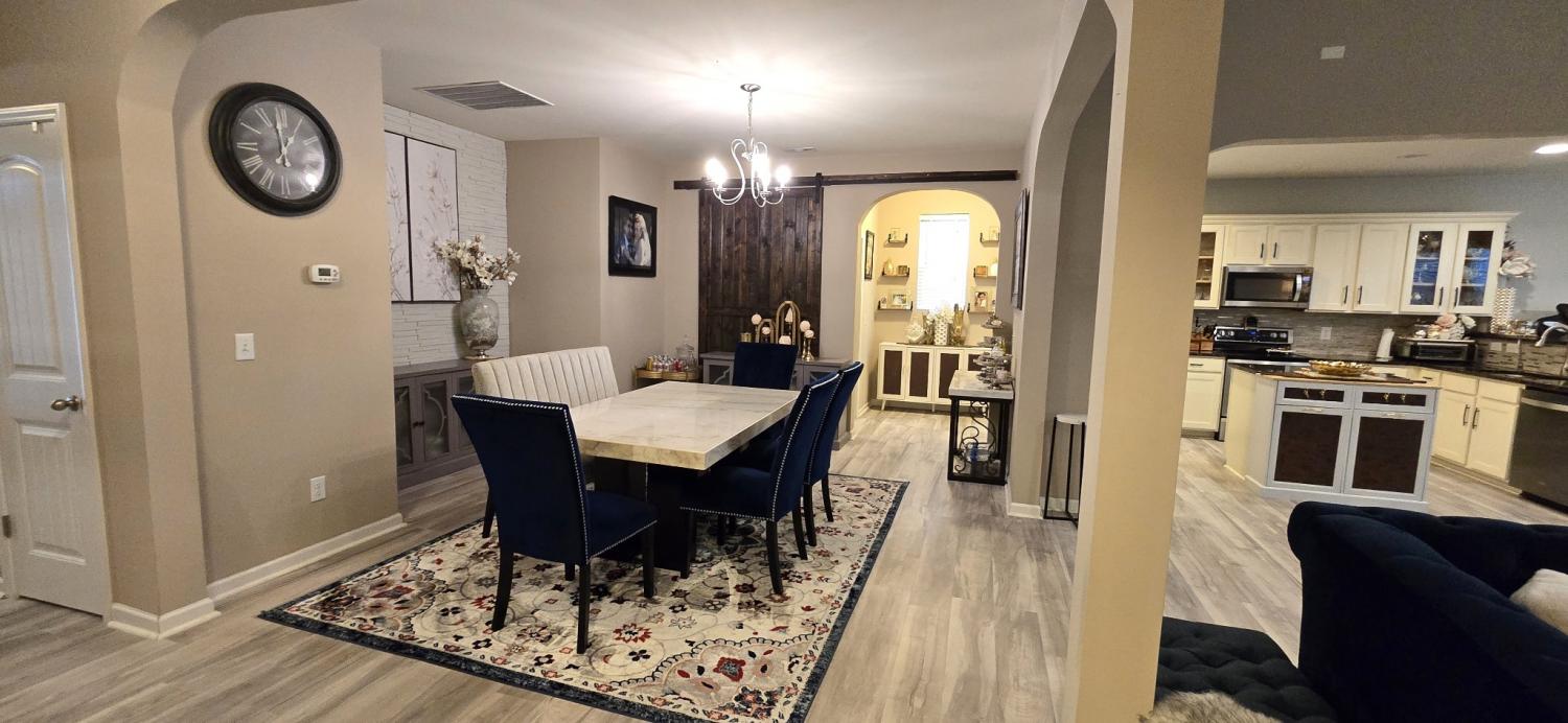 Immaculate one-level home featuring an open layout with soaring ceilings and abundant natural light. Spacious kitchen with granite countertops, stainless steel appliances, and newly installed Luxury Laminate Flooring throughout main living areas. Luxury owner’s suite with spa-like bath and walk-in closet. Four sides brick exterior with side-entry two-car garage. Move-in ready and designed for comfortable living and effortless entertaining.
