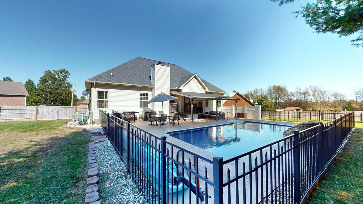 Welcome home to this beautifully updated home on a quiet cul-de-sac in Portland, TN! Step inside the open foyer and into a spacious living room featuring vaulted ceilings and a cozy gas fireplace with remote. The formal dining room impresses with its soaring ceiling and chair rail detail, while the kitchen shines with new granite countertops, tile backsplash, and a granite composite sink. A stunning breakfast nook provides the perfect casual dining spot. The split floor plan offers privacy, with the large primary suite conveniently located on the main level. It boasts a trey ceiling, new hardwood flooring (June 2025), and a luxurious private bath with garden tub, separate shower, water closet, and expansive walk-in closet—also with new hardwoods. Two additional bedrooms and a full bath complete the main floor, with one bedroom showcasing a vaulted ceiling. A half bath and large laundry room add everyday convenience. Upstairs, the versatile bonus room above the two-car garage offers endless possibilities—currently used as a music room, TV lounge, and bedroom. The garage features a WiFi-enabled opener with battery backup, and a tankless water heater was added in April 2024. Step outside to a covered patio perfect for entertaining, overlooking the in-ground pool with a stunning rock waterfall and new liner (Fall 2024). The pool area is enclosed with decorative iron fencing, while the rest of the backyard features a privacy fence, open green space, and a new storage building (10X20 bought in fall of 2024) that will remain. Enjoy small-town charm just minutes from Portland’s town square with local dining, coffee shops, and shopping, as well as nearby parks and the city lake. This home truly combines comfort, style, and modern updates—ready for you to move right in! NO HOA! Call today to set up a tour!