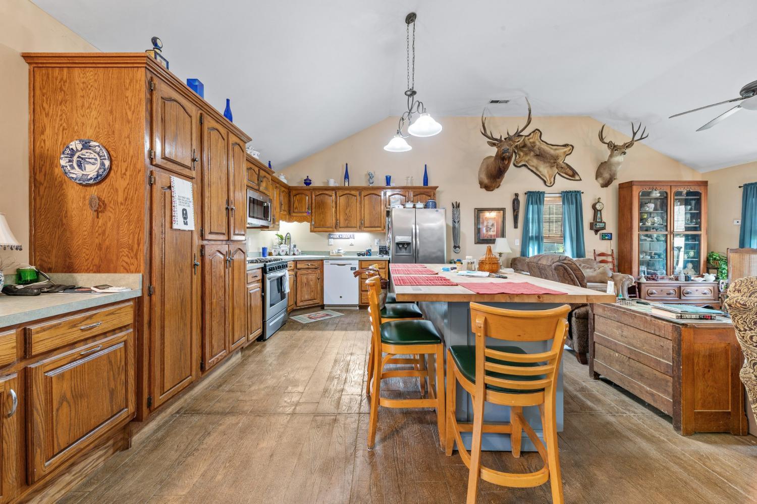 Here's a great property for a small farm, ready and equipped with a barn, a 36x40 shop, plenty of land for your animals, a pond and a creek on 15+ acres! The home offers 3BD 2BA, kitchen has an abundance of cabinets, custom stamped concrete floors throughout, tiled shower in primary bath, garden tub, covered patio, covered porch, detached carport and much more! Minutes to I-65. Island does not remain. Call for a showing today!