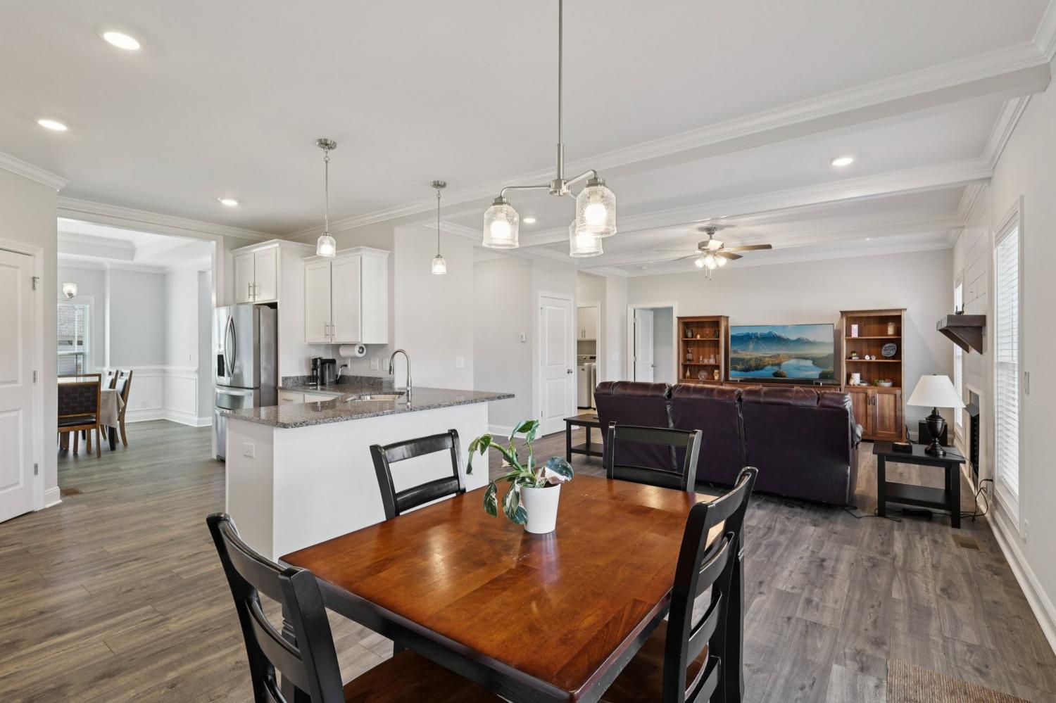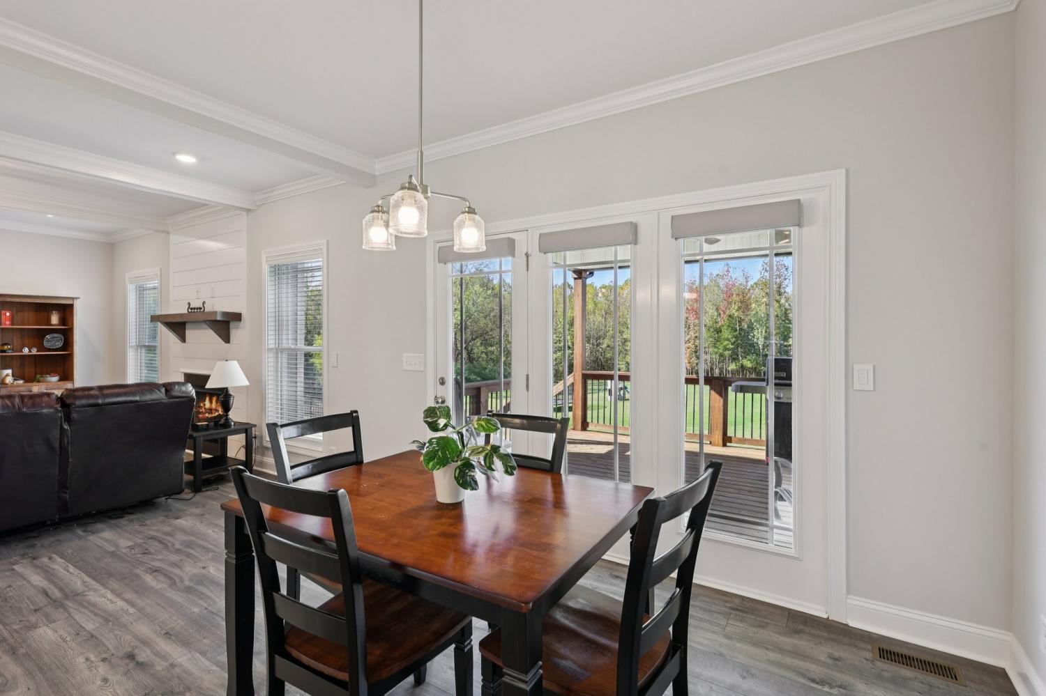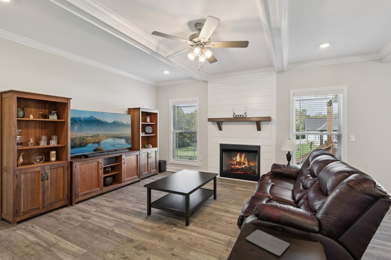 ***Offering $10,000 in buyer closing cost*** Discover this meticulously maintained 4 bedroom, 3.5 bathroom brick home in River Chase, offering ultimate privacy as the backyard backs up to a wooded area and the Cumberland River. The main floor features a bright, open floorplan with custom millwork and crown moldings, plus a formal dining room that could easily be used as an office or bonus room. The great room, complete with a cozy fireplace, flows into the kitchen boasting granite counters, white soft-close cabinetry, SS appliances, counter seating and walk-in pantry. Enjoy wide open views from your covered rear deck. The main-level Primary Bedroom offers an ensuite with a double granite vanity, soaking tub, and tiled shower. Upstairs are three large bedrooms with walk-in closets, two full baths with quartz countertops, a huge bonus room, and tons of walk-in attic storage. This prime Clarksville location provides easy access to Fort Campbell and major highways for a quick commute. Schedule a showing to see this one in person today!