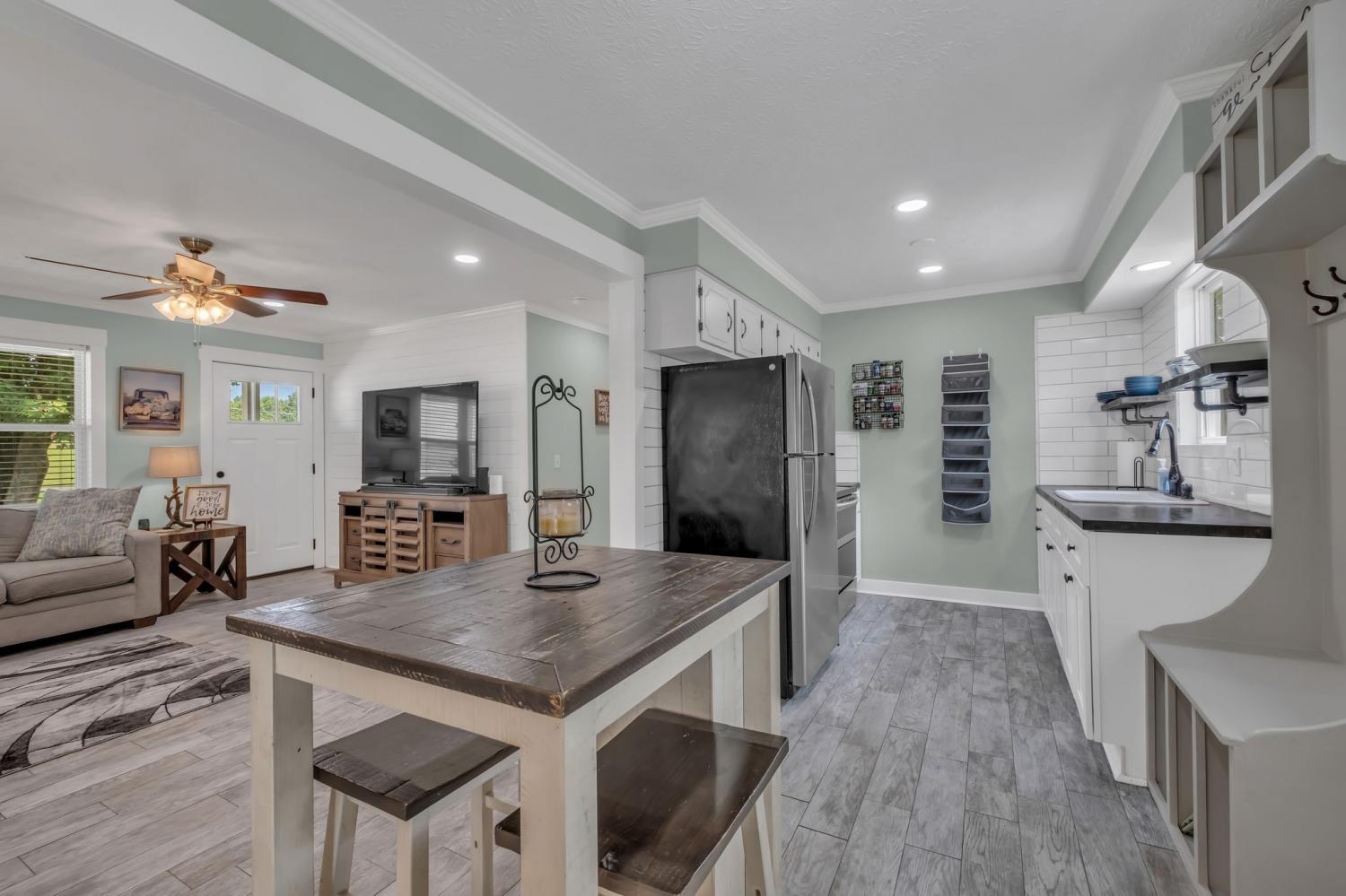 Step inside this beautifully remodeled 3-bedroom home and fall in love with its modern updates and thoughtful finishes! The detached 14x26 garage is a dream space - featuring 60-amp electrical service and covered porch, perfect for hobbies, projects or extra storage. Interior updates completed in 2021 include new porcelain tile flooring throughout, interior doors, kitchen cabinets with butcher block countertops, updated bathroom vanities and fixtures, gas tankless water heater, new ductwork, and plumbing. In 2022, the home received a new roof, windows, vinyl siding, exterior doors, and a back deck. This home combines modern comfort with worry-free living, offering peace of mind with major updates already complete. Move right in and enjoy the fresh, stylish finishes inside and out!