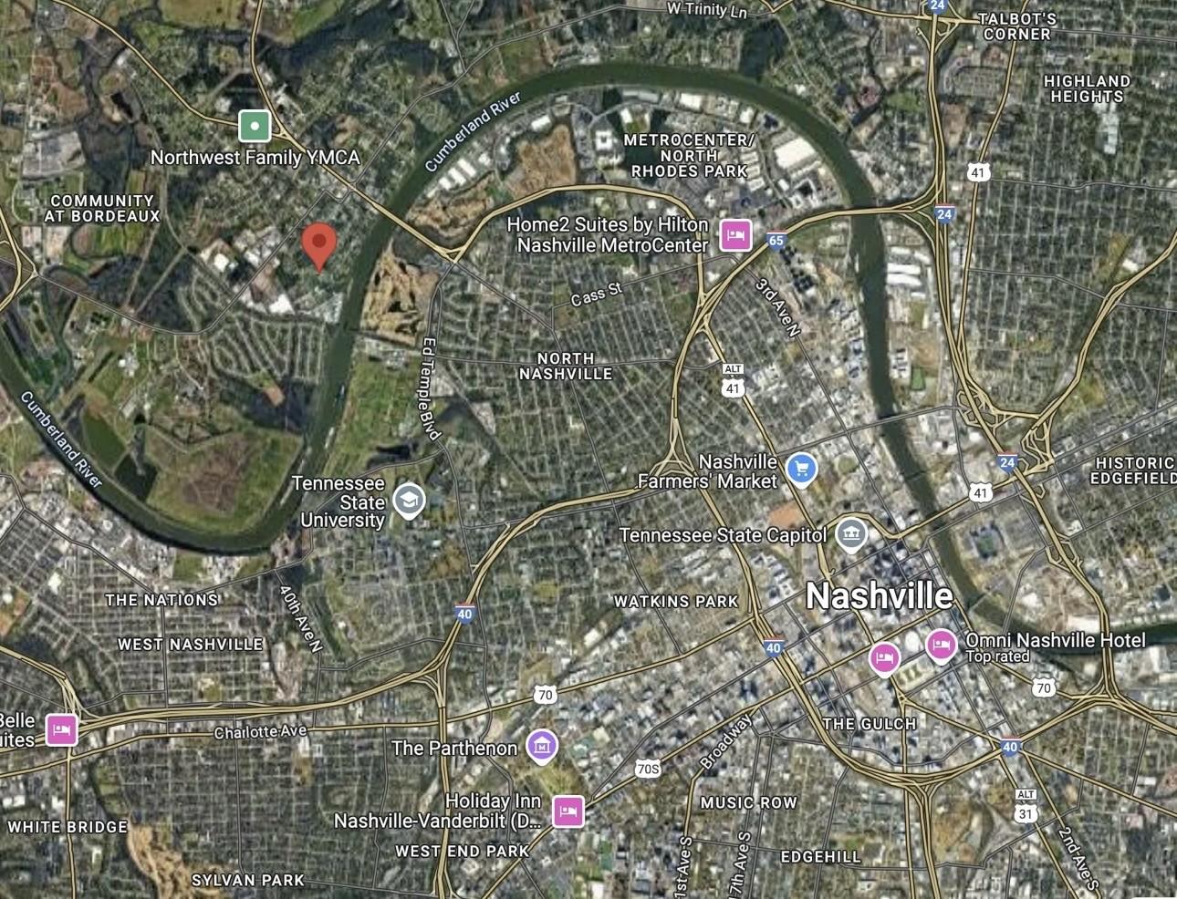 From Nashville, take Rosa Parks Blvd north, turn right on Clarksville Pike, turn left onto S. Hamilton Road, and turn left onto River Drive, and the home will be on the right.