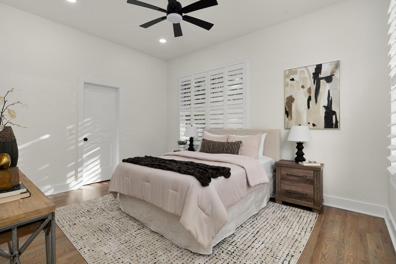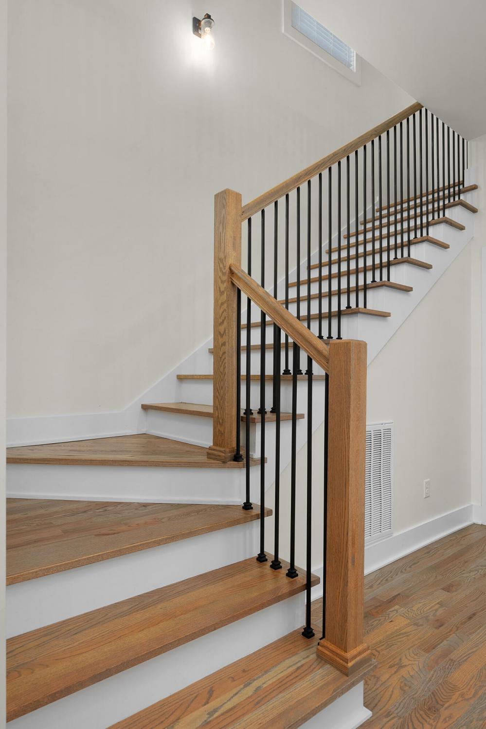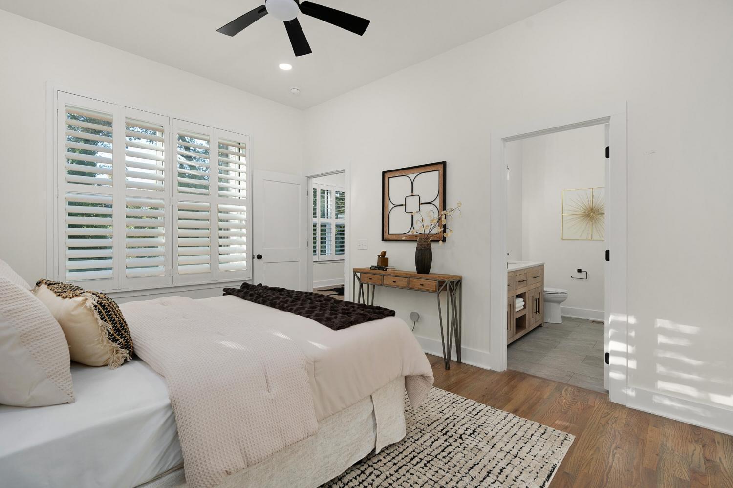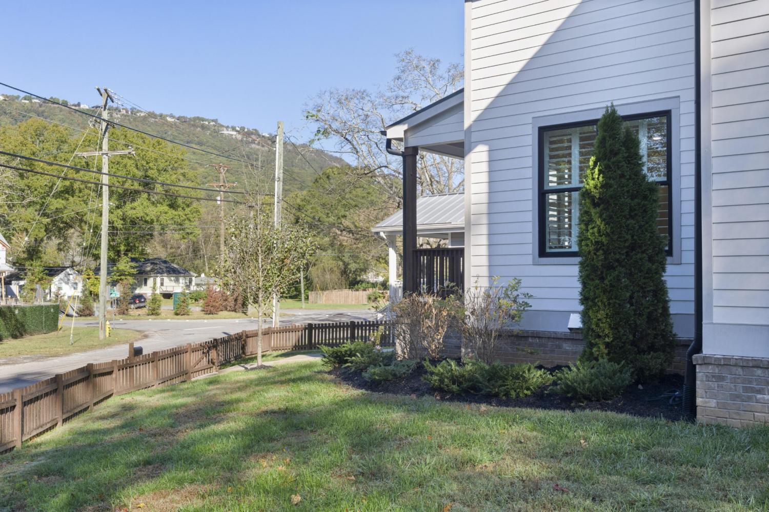 Curb appeal galore at this 3 bedroom 2.5 bath home on a double lot with a picket fence and covered front porch in the heart of St Elmo! Built in 2022, this well-designed home boasts an open floor plan, the primary on the main, lofty ceilings, plantation shutters and blinds, decorative and recessed lighting, hardwood floors throughout much of the house, and coveted off-street parking in the wide, gated driveway. Your tour begins with entry to the living area that is open to the kitchen. The kitchen has a large center island with a level dining bar and pendant lighting, soft-close cabinetry, marble tile backsplash and stainless appliances. The dining room is spacious and has a pocket door to the powder room and access to the primary suite. The primary bedroom has a walk-in closet and private bath with a dual vanity, linen closet, and a shower with tile and glass surround. The laundry room is off the kitchen and has a rear door from the driveway area which is perfect for everyday ingress and egress. Head upstairs where you will find a central bonus room with a vaulted ceiling, a full hall bath and guest bedrooms on either side. Both bedrooms have vaulted ceilings, ceiling fans and spacious closets. All of this, and you are close to the community playground and just minutes from downtown Chattanooga, so please call for more information and to schedule your private showing today. Information is deemed reliable but not guaranteed. Buyer to verify any and all information they deem important.