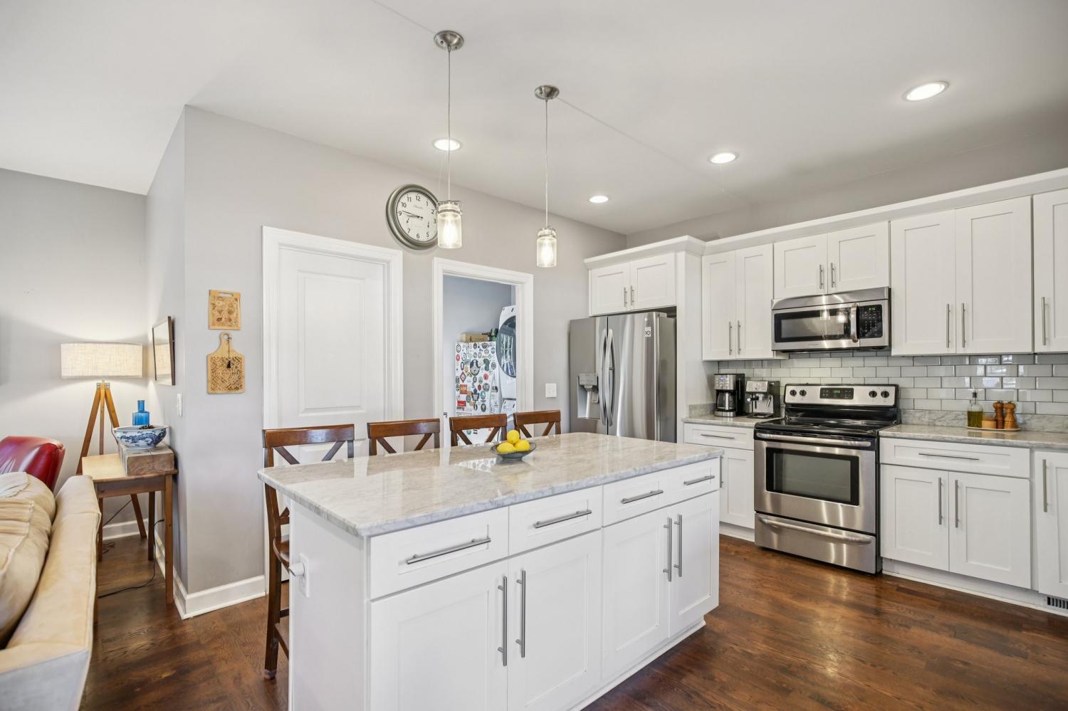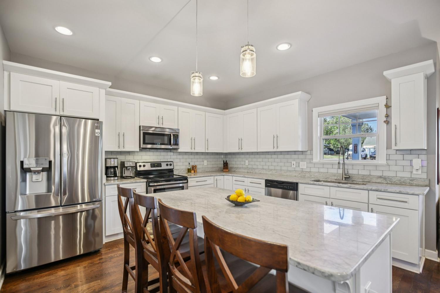 East Nashville perfection! This 4-bed, 3.5-bath home in Riverside Village is the one you've been waiting for. Fully remodeled in 2016 and at 2,098 sq ft, the bright, open floorplan is an entertainer's dream, effortlessly blending living and dining. The kitchen boasts bright white cabinetry, granite countertops, subway tile backsplash, SS appliances, and an island with casual seating. Enjoy true main-level living with the Primary Suite, featuring an updated ensuite with a dual vanity and a walk-in tile shower, plus a dedicated walk-in closet and first-floor laundry. Upstairs, a roomy loft provides ultimate flexibility for a home office or bonus space. The upper level hosts three additional spacious bedrooms: one with a private ensuite and walk-in closet, and two that share a well-appointed full bath. Situated on a generous 0.27-acre lot, outside from the deck you overlook a level, fenced yard, and an additional patio space (shed conveys, plus detached carport!). Get the best of both worlds: a quiet street setting with unbeatable proximity to the best of East Nashville. Schedule a showing to see this home in person today!