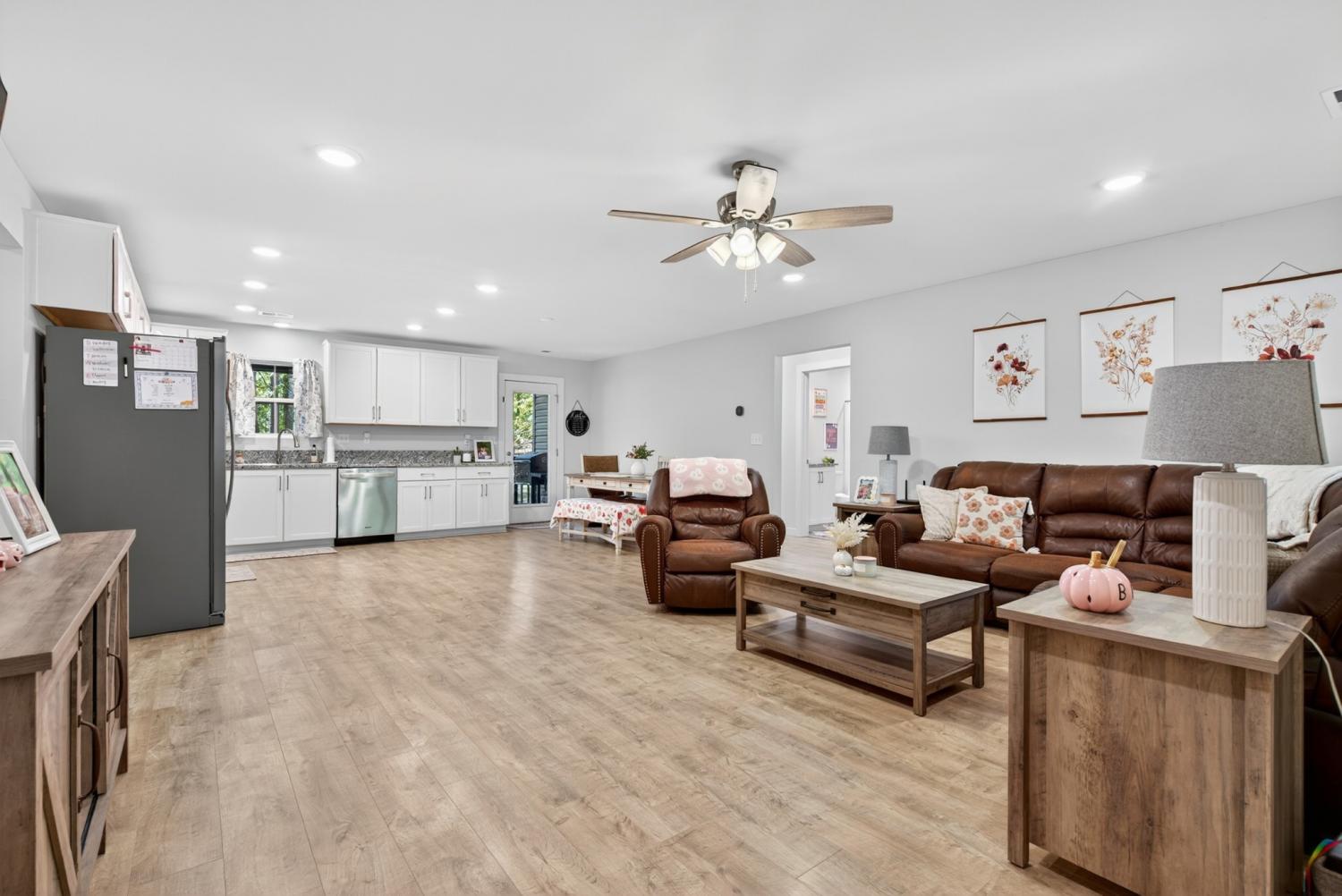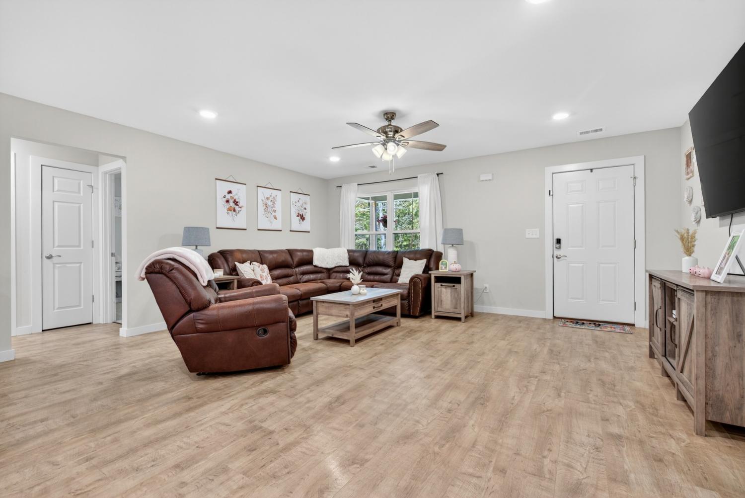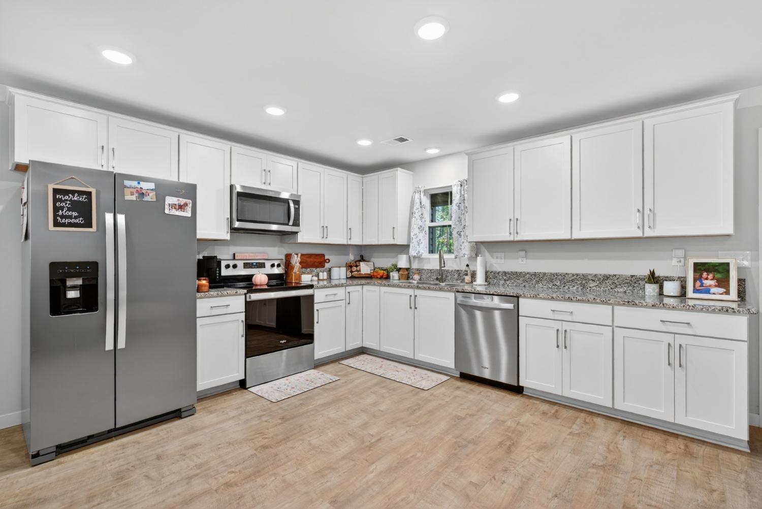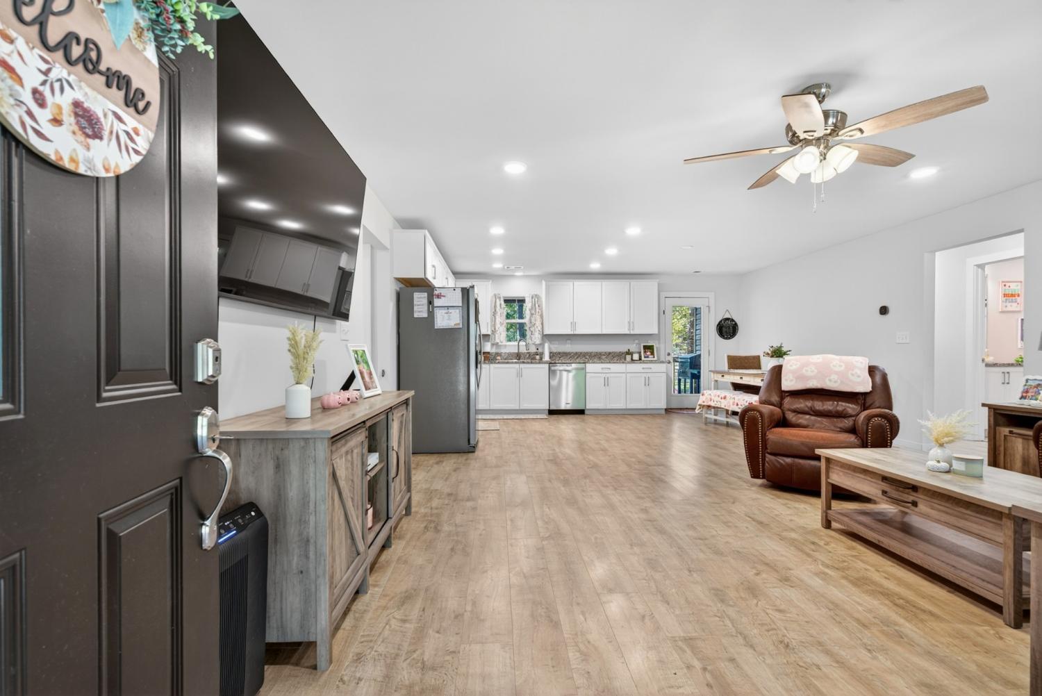 Like-new construction home just an hour from downtown Nashville. This beautiful home sits on over an acre of level, wooded land and features an open-concept floor plan with custom white cabinetry, granite countertops, and waterproof laminate flooring in the main living areas and primary suite. Enjoy spacious walk-in closets, a large laundry room with extra storage, and a handy entry nook off the garage. The exterior offers low-maintenance vinyl siding, covered front and back porches, convenient two-car side-entry garage, and a partially-fenced backyard with plenty of additional room for a shop, garden, etc—perfect for outdoor living! No HOA. New gravel on driveway 6/25. Fiber Internet available as well. Conveniently located less than 30 minutes to Dickson, Fairview, and Centerville! *Seller Concessions Offered*