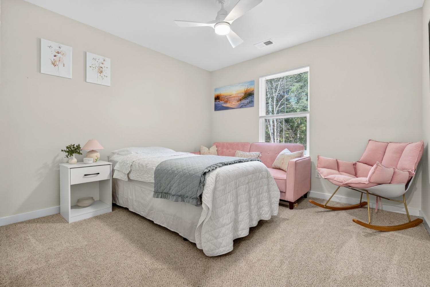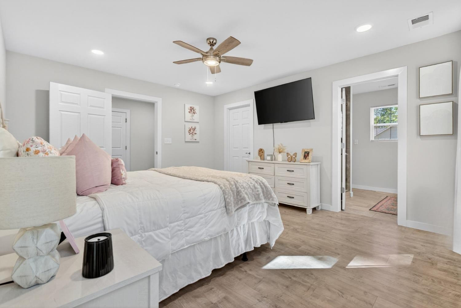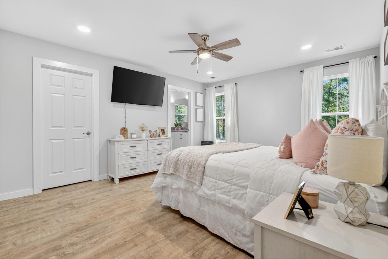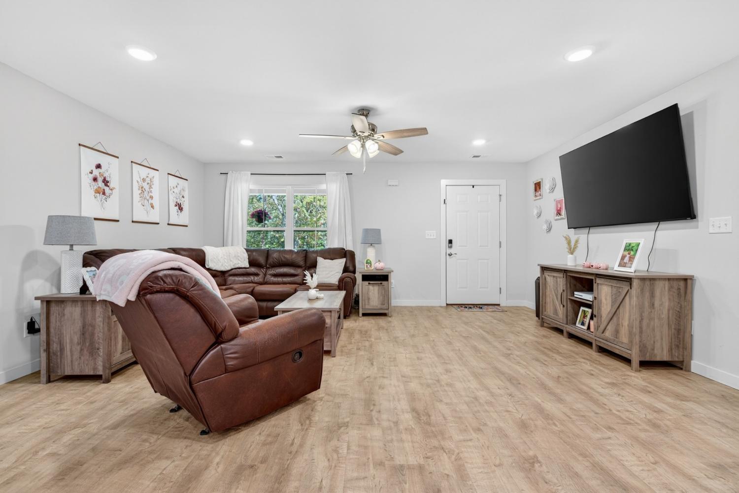 Like-new construction home just an hour from downtown Nashville. This beautiful home sits on over an acre of level, wooded land and features an open-concept floor plan with custom white cabinetry, granite countertops, and waterproof laminate flooring in the main living areas and primary suite. Enjoy spacious walk-in closets, a large laundry room with extra storage, and a handy entry nook off the garage. The exterior offers low-maintenance vinyl siding, covered front and back porches, convenient two-car side-entry garage, and a partially-fenced backyard with plenty of additional room for a shop, garden, etc—perfect for outdoor living! No HOA. New gravel on driveway 6/25. Fiber Internet available as well. Conveniently located less than 30 minutes to Dickson, Fairview, and Centerville! *Seller Concessions Offered*