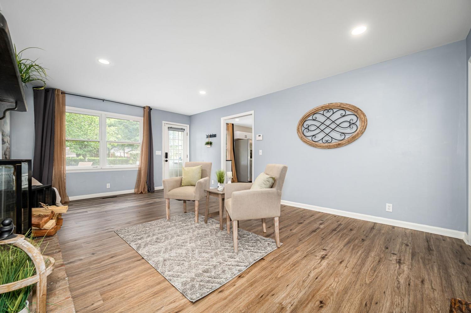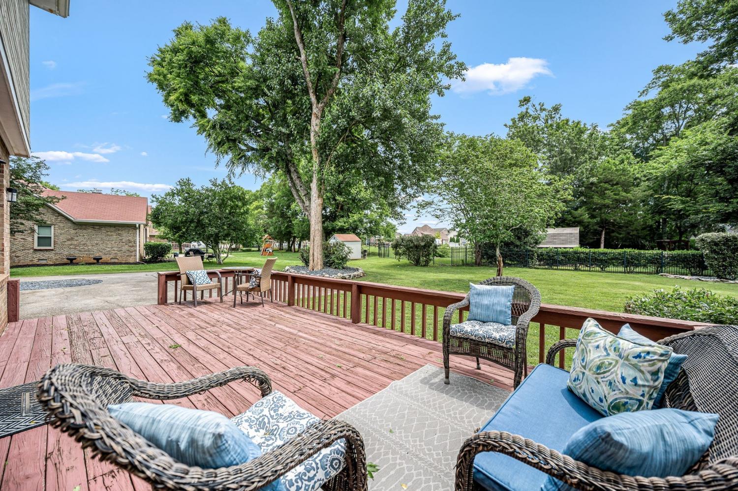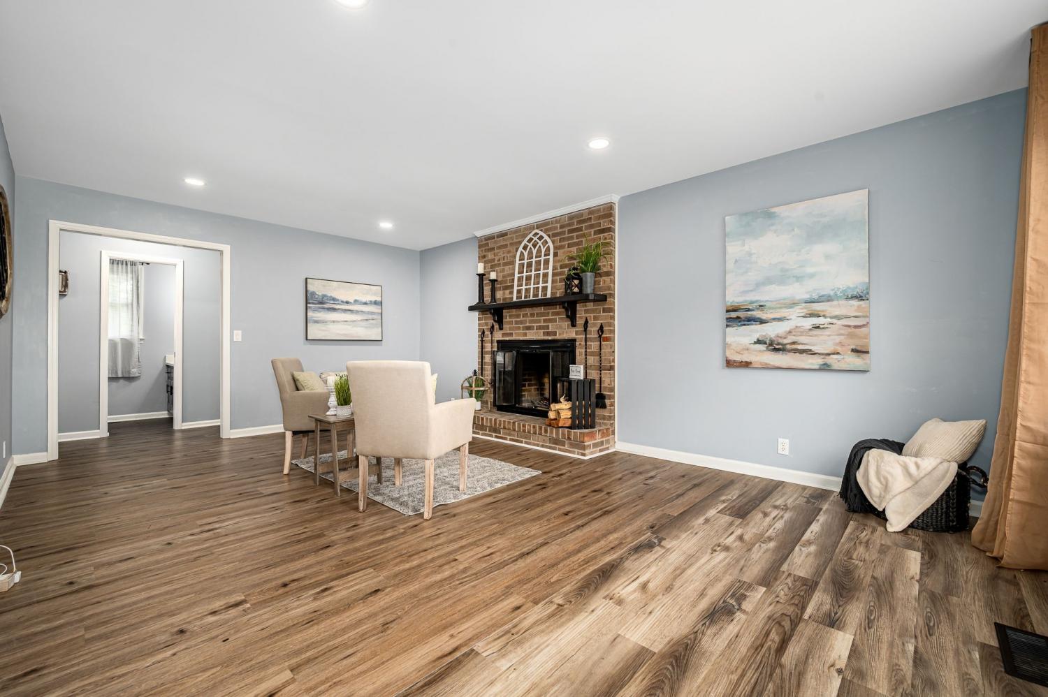 Beautifully renovated 4-bed, 2.5-bath home on nearly half an acre blends style, comfort, and convenience—with no HOA. Priced to accommodate needed foundation repairs, and being sold AS-IS, the open-concept layout highlights the upgraded kitchen with granite counters, gas range, tile backsplash, large island, and custom coffee bar. Fresh paint, new flooring, and updated lighting enhance every space. Bathrooms feature quartz counters and modern finishes, and the laundry includes new appliances with added storage. Smart additions include wireless TV sockets and new thermostats. Major updates: new garage door and downstairs HVAC. Outside, enjoy landscaped beds, a fire pit, new mailbox, and custom fence around HVAC. Convenient Murfreesboro location close to shopping, dining, parks, and schools.