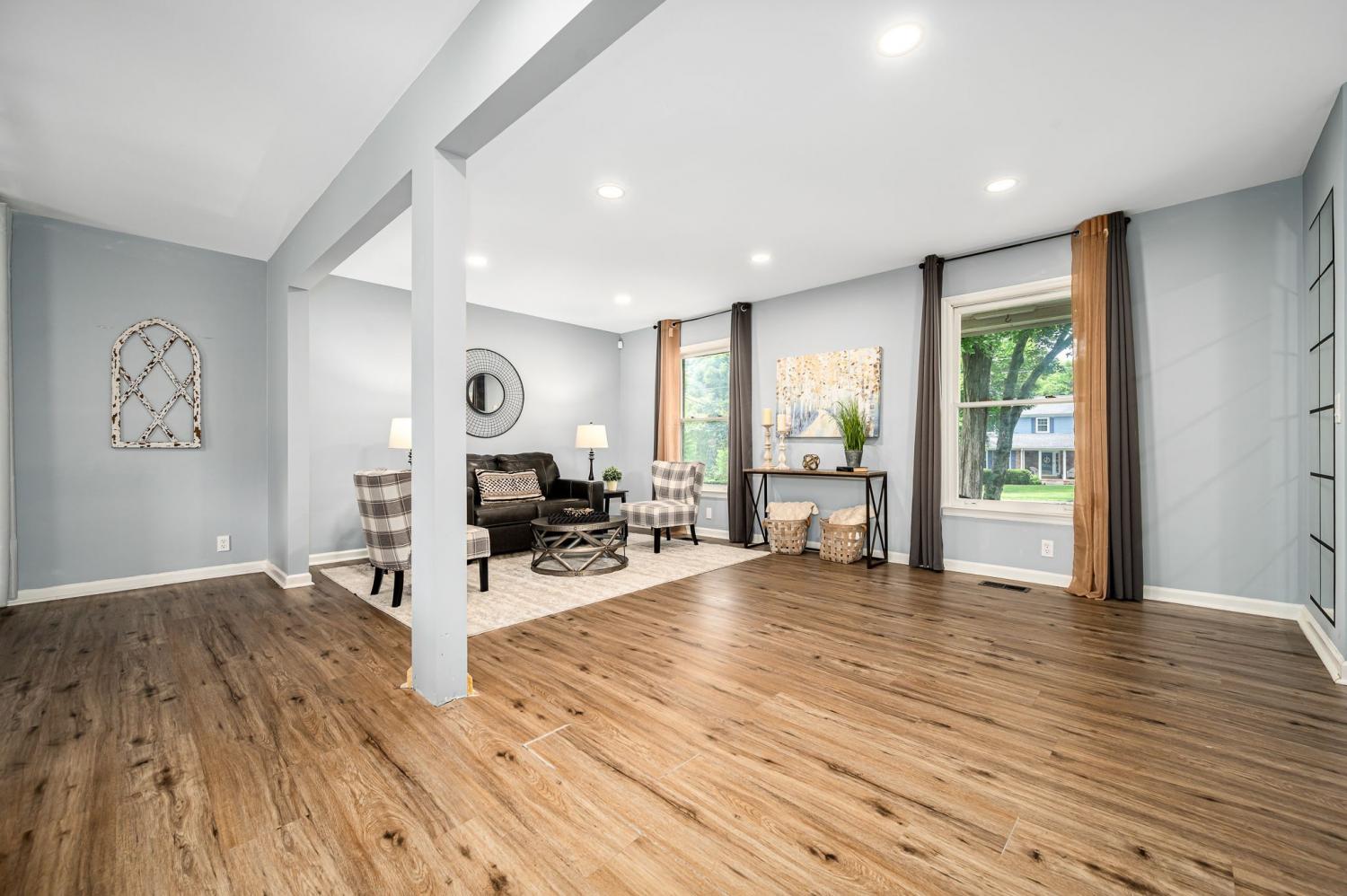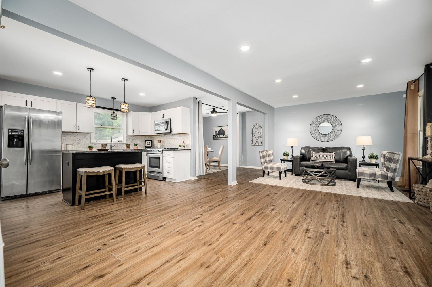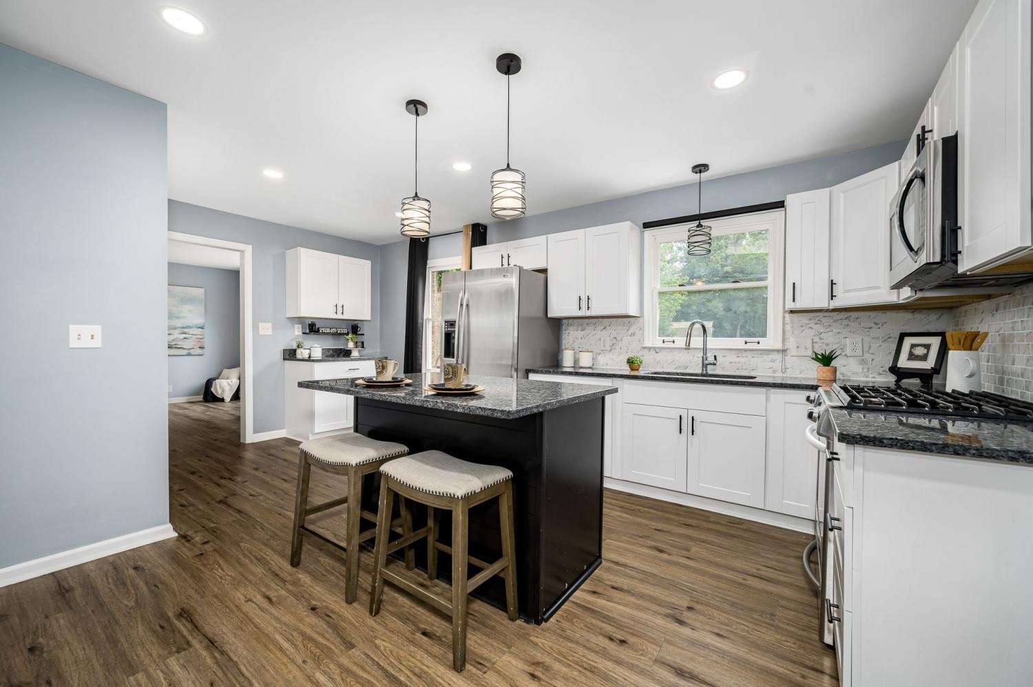 Beautifully renovated 4-bed, 2.5-bath home on nearly half an acre blends style, comfort, and convenience—with no HOA. Priced to accommodate needed foundation repairs, and being sold AS-IS, the open-concept layout highlights the upgraded kitchen with granite counters, gas range, tile backsplash, large island, and custom coffee bar. Fresh paint, new flooring, and updated lighting enhance every space. Bathrooms feature quartz counters and modern finishes, and the laundry includes new appliances with added storage. Smart additions include wireless TV sockets and new thermostats. Major updates: new garage door and downstairs HVAC. Outside, enjoy landscaped beds, a fire pit, new mailbox, and custom fence around HVAC. Convenient Murfreesboro location close to shopping, dining, parks, and schools.
