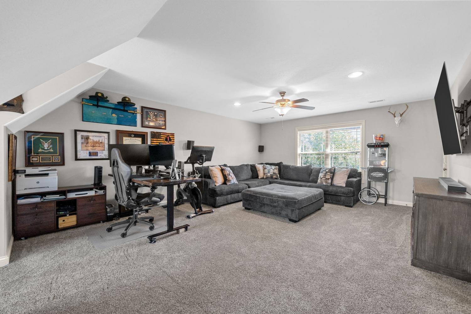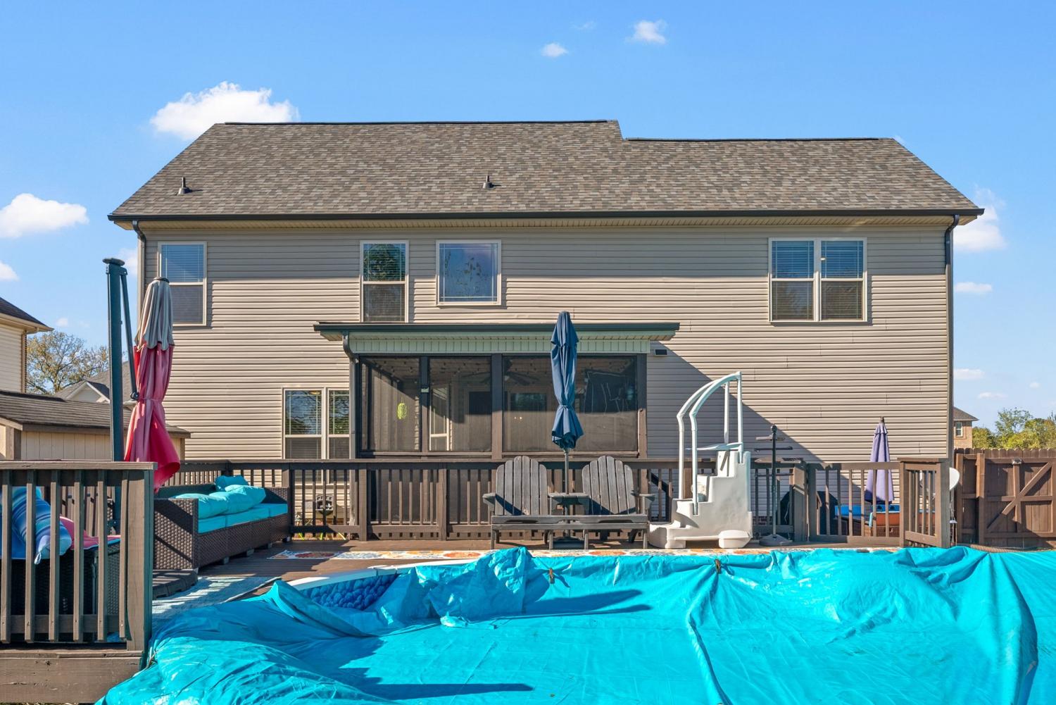 Get ready to fall in love with this show-stopping home just 5 miles to Fort Campbell — packed with custom upgrades, stylish finishes, and an outdoor oasis that’s made for entertaining! From the moment you arrive, the rocking chair front porch and quiet cul-de-sac lot create an inviting first impression. Step inside to discover a beautifully designed interior featuring updated lighting, accent feature walls, and thoughtful details throughout. The spacious kitchen is a true centerpiece — complete with granite countertops, a custom backsplash, gas cooktop, and a peninsula that opens to the living area. The formal dining room can easily double as a home office or flex space. The cozy living room boasts a natural gas fireplace, creating the perfect gathering spot for family and friends. Downstairs offers a convenient bedroom and full bath — ideal for guests or a mother-in-law suite. Upstairs, the oversized bonus room with a closet can serve as a 5th bedroom, recreation space, or media room. The primary suite is a retreat in itself, featuring a jetted soaking tub and a custom closet. Your backyard entertainment dream awaits! Enjoy a covered and screened back deck—perfect for morning coffee or evening gatherings—leading to an extended paver patio that’s ideal for grilling and outdoor dining. Take a dip in the 36x18 semi-inground pool (48” deep) with a new pump and sand filter, surrounded by a privacy-fenced, tree-lined yard for total relaxation. There’s even a storage shed for all your pool and yard essentials. Additional highlights include a tankless water heater and a brand-new roof for peace of mind. This home truly has it all — location, luxury, and an outdoor space built for making memories! ** seller credit for landscaping so the new owners can freshen things up in spring!**